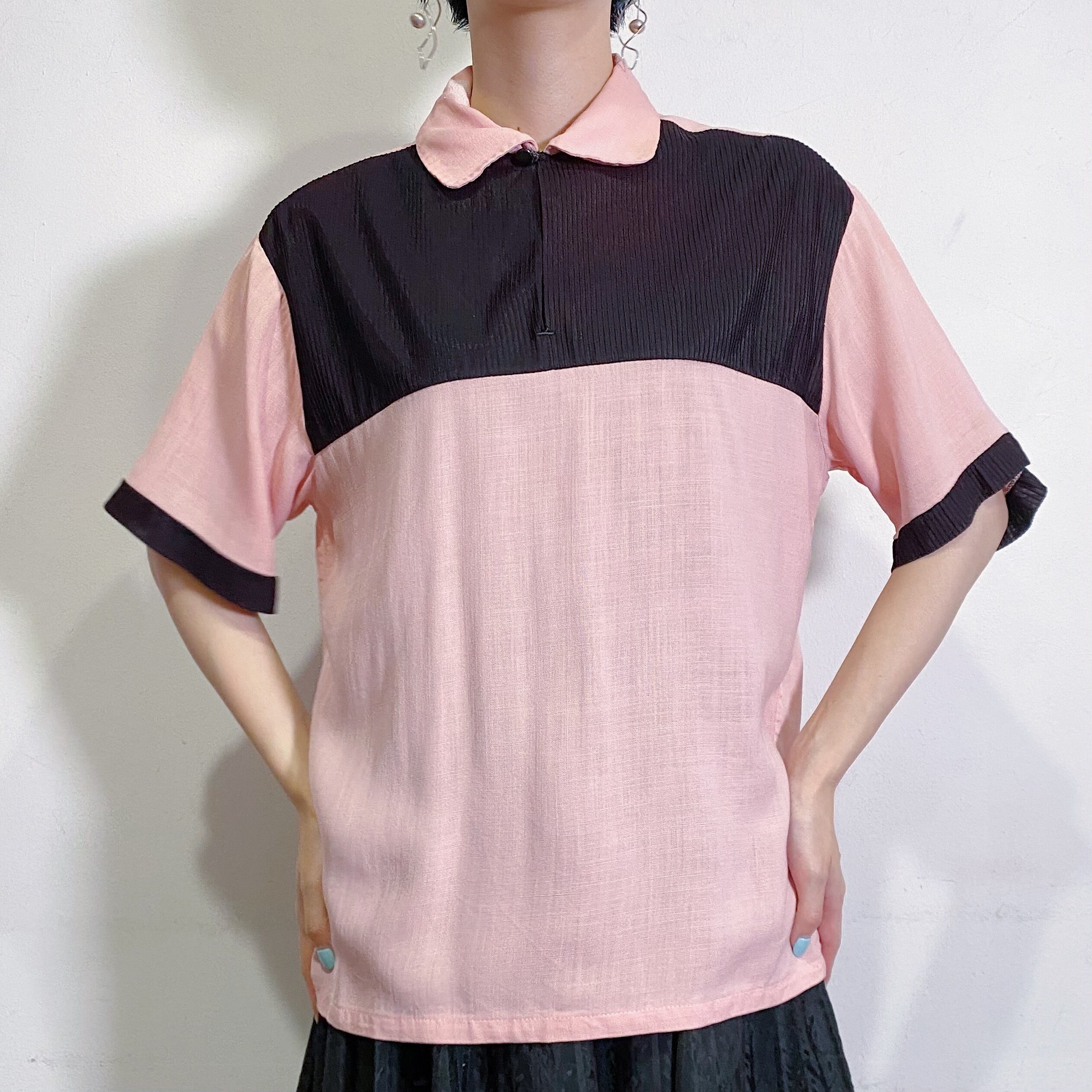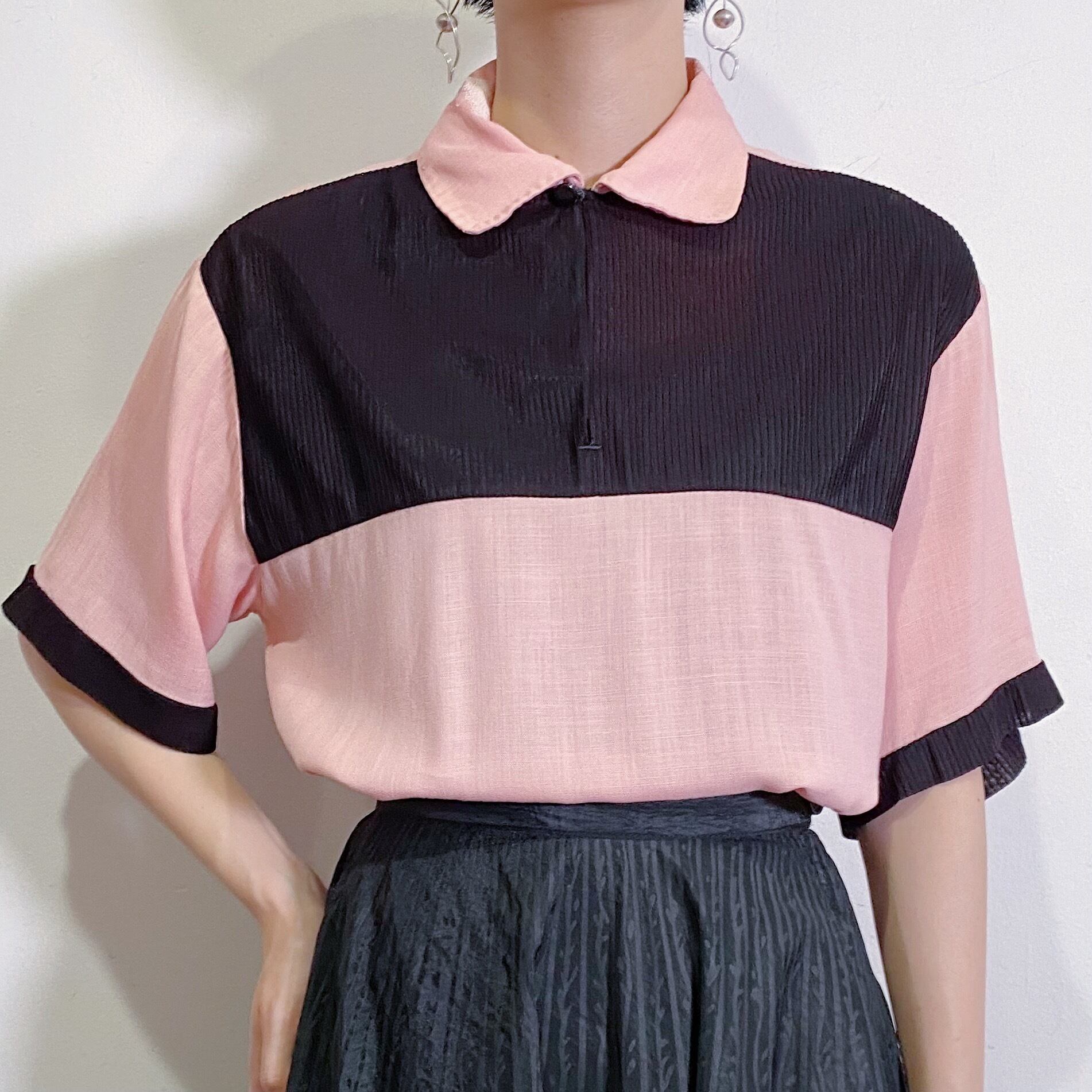 ピンクとブラックのバイカラーが可愛い、50年代のトップスです。