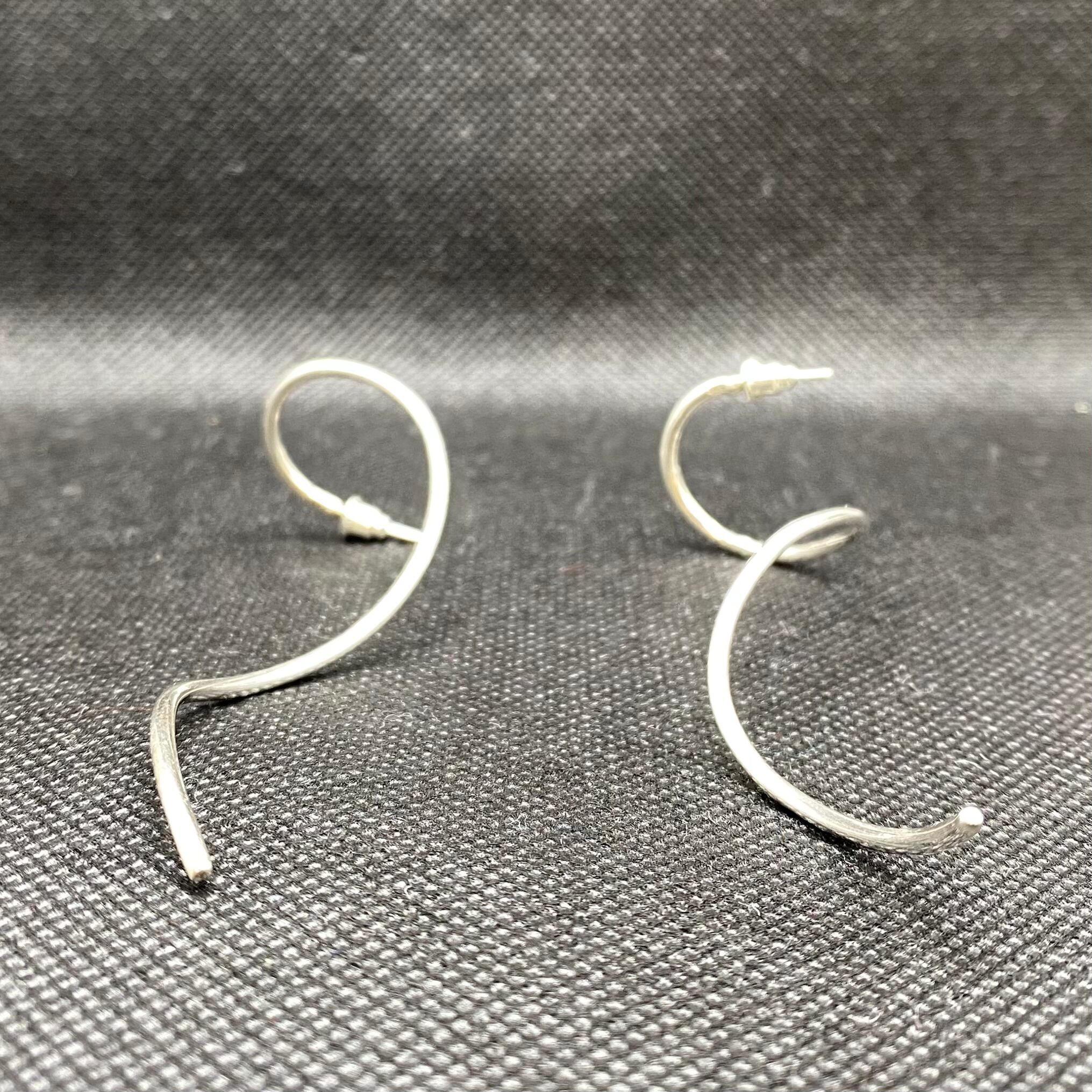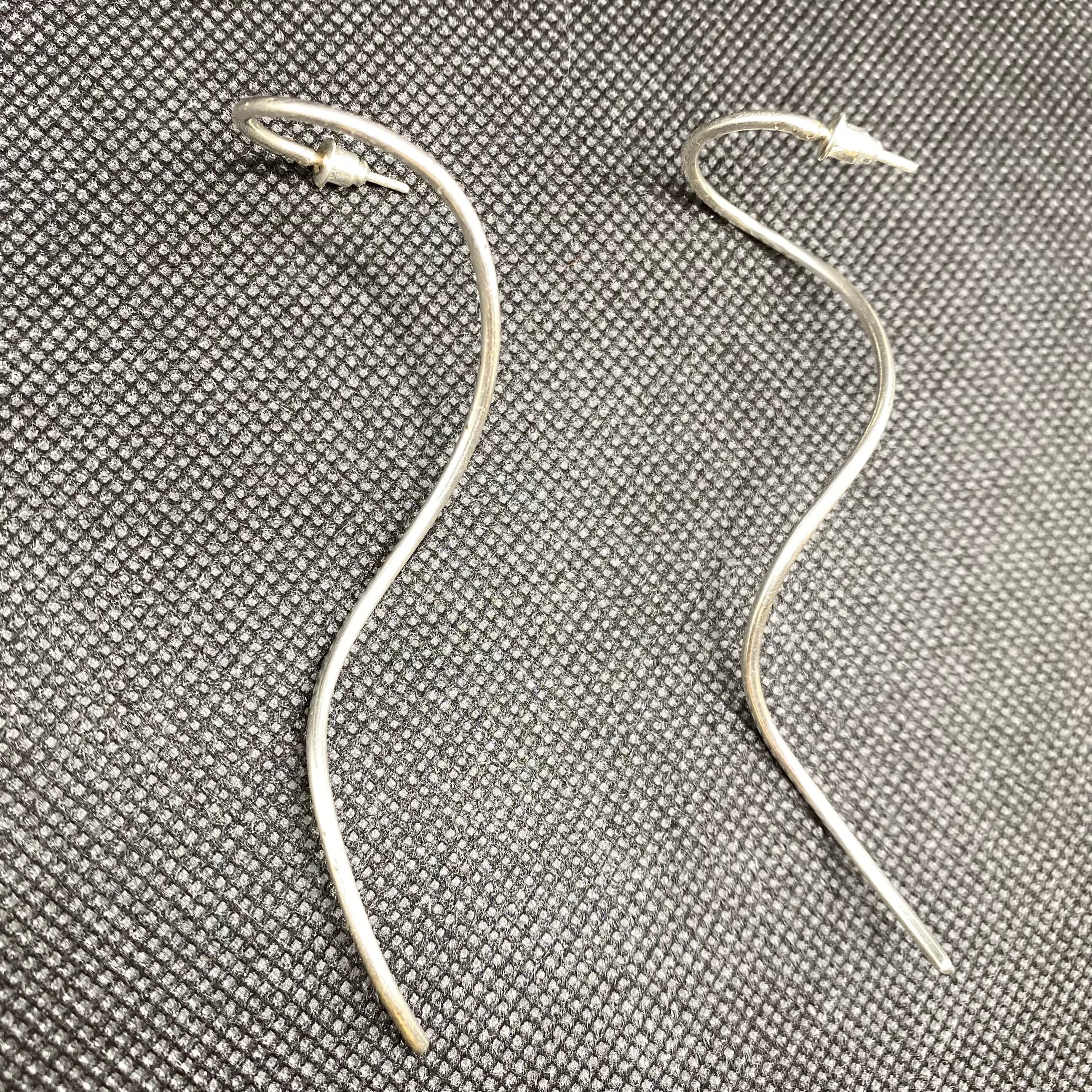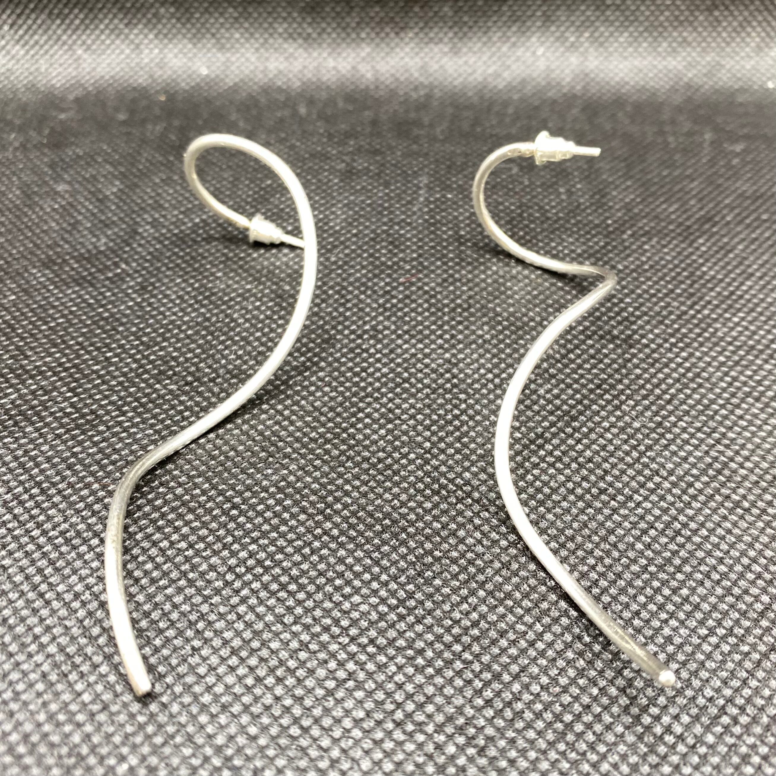 うねうねとした長めのバーデザインがモードで可愛い、925シルバーのピアスです。