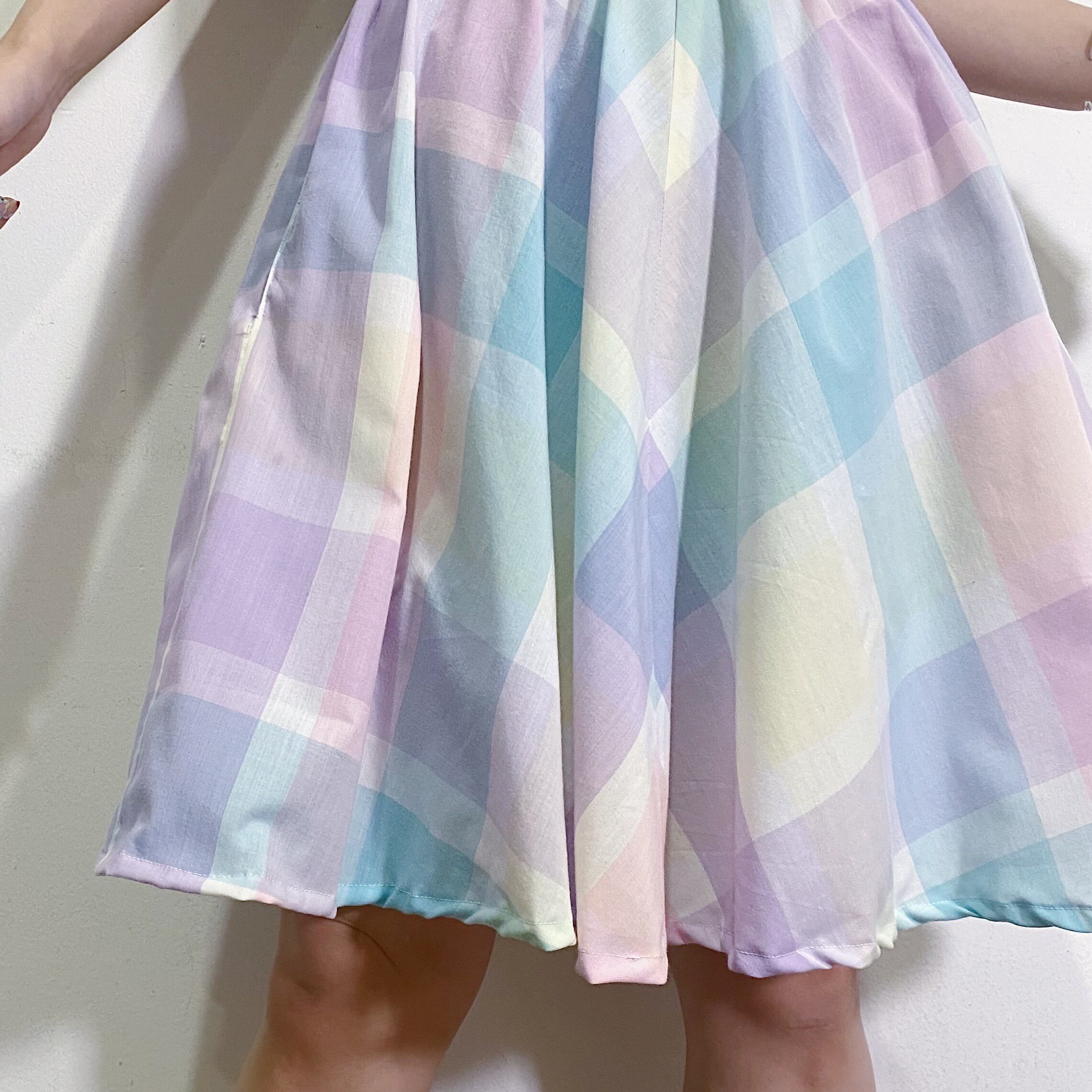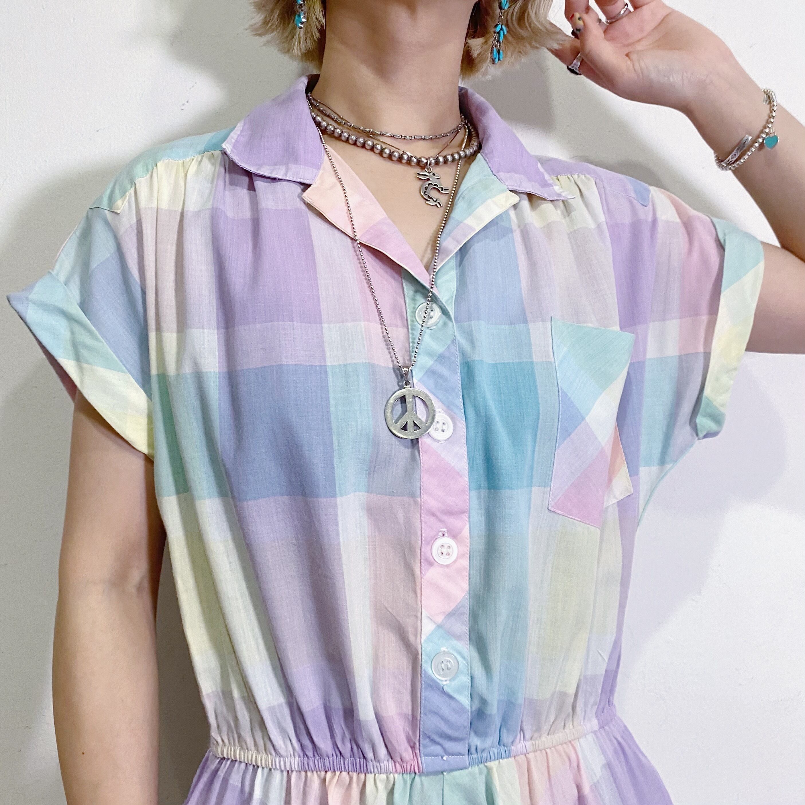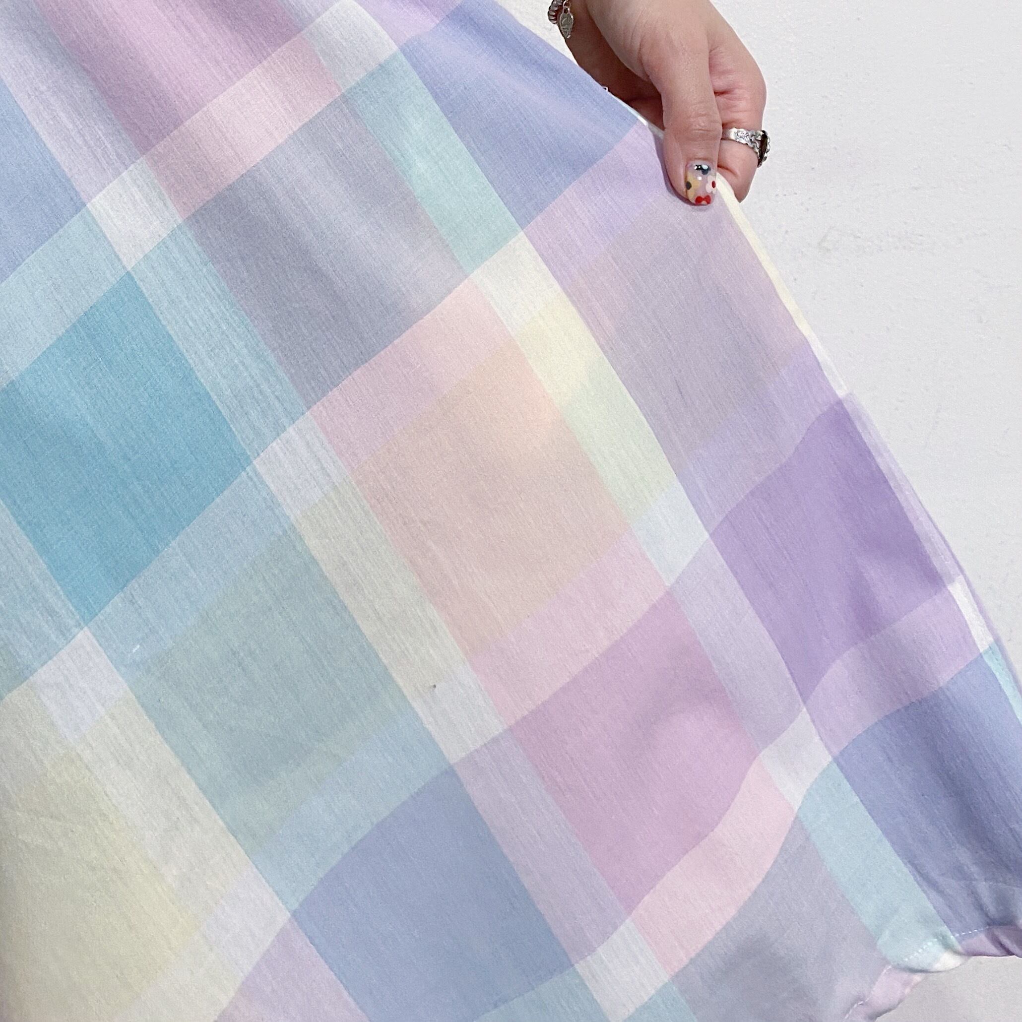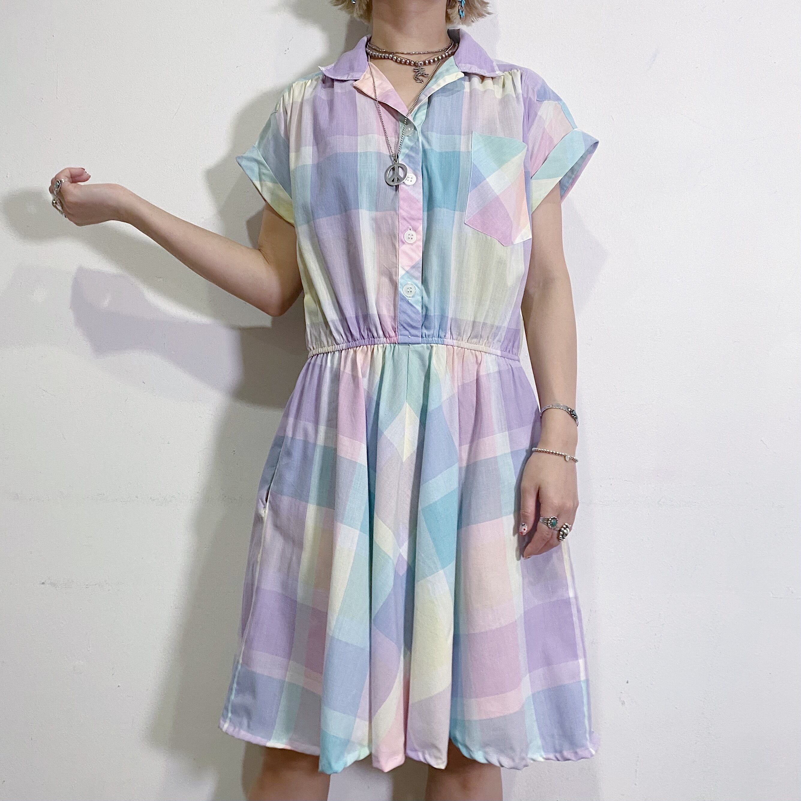 カラフルなパステルカラーのチェック柄が可愛い、80年代のミニワンピースです。