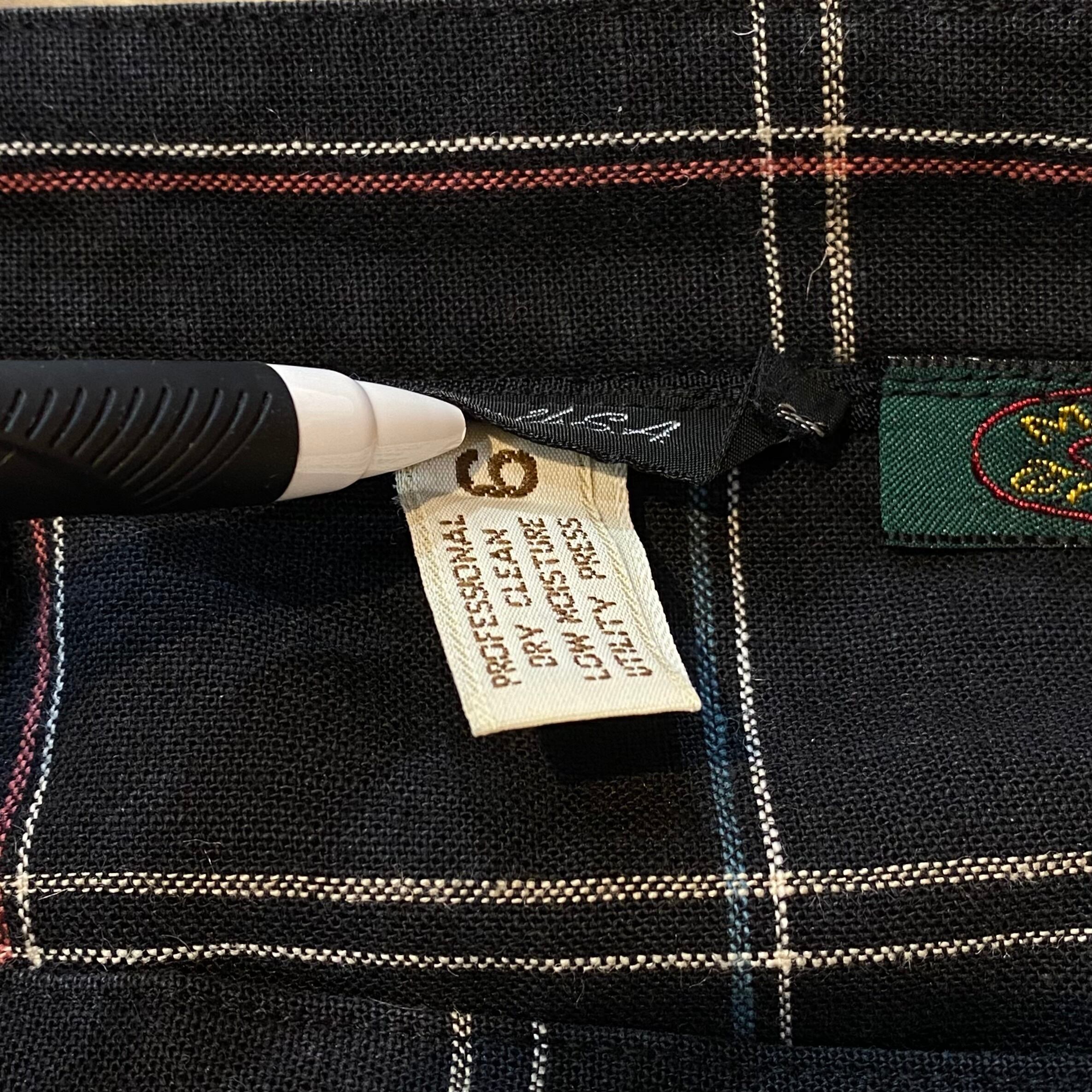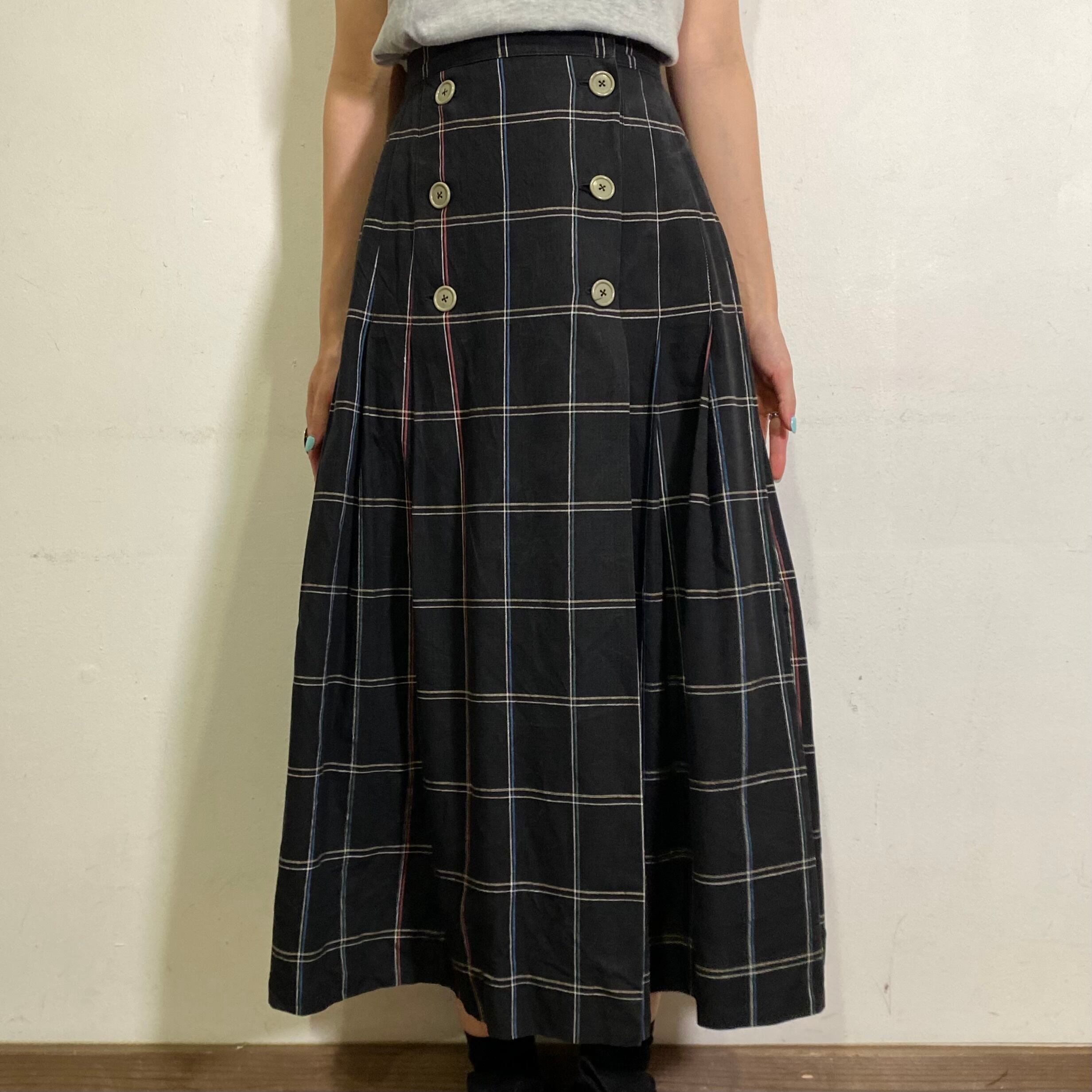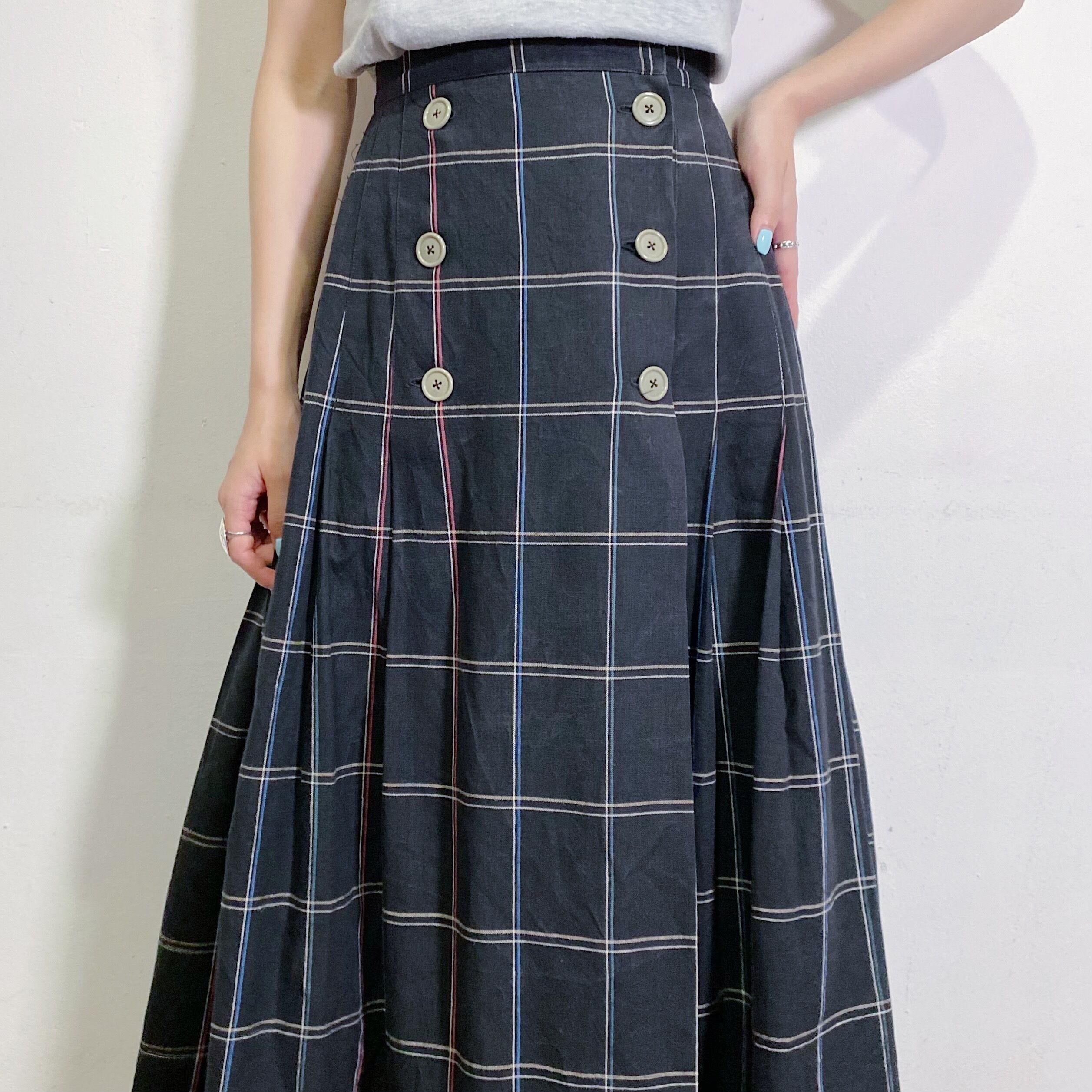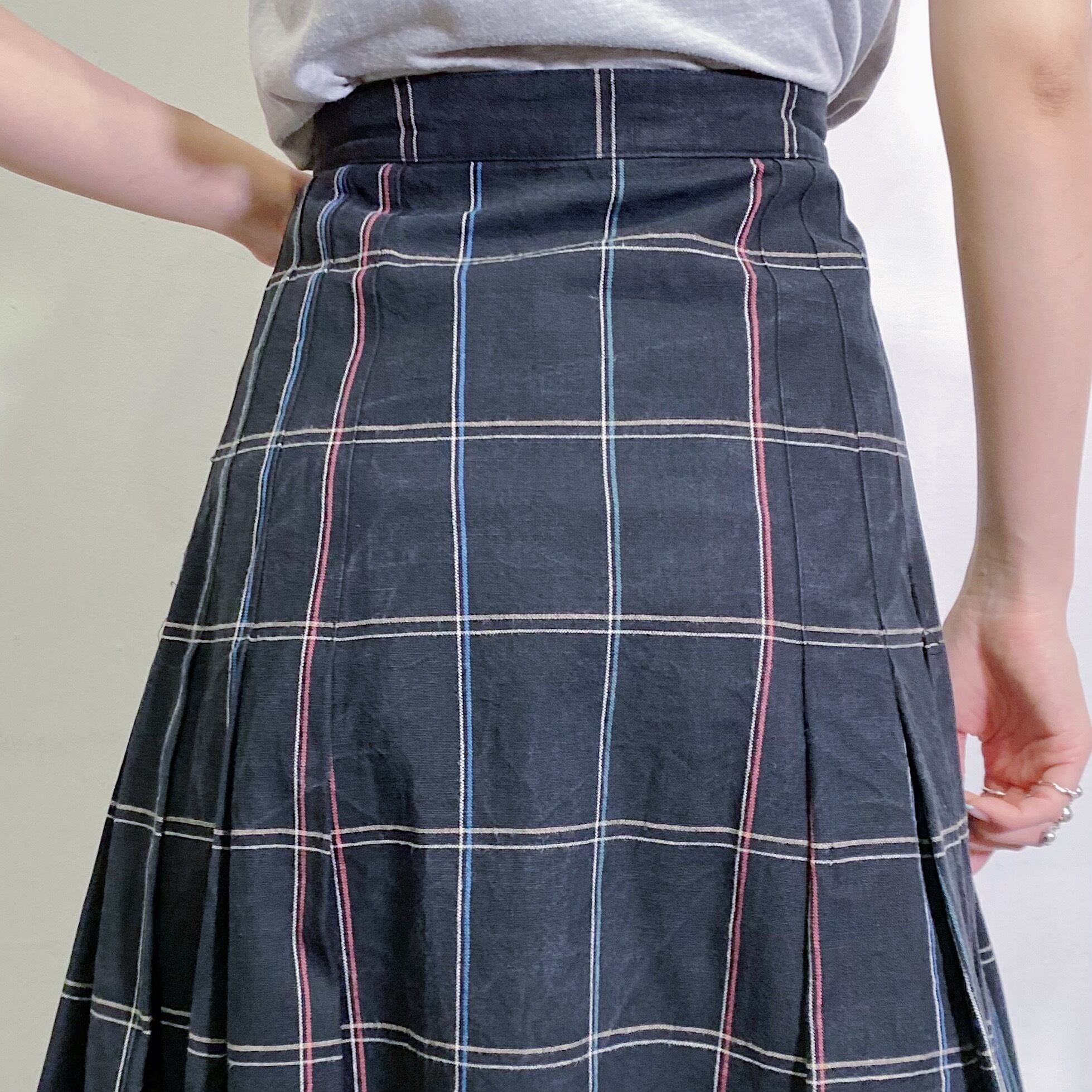 ブラックベースにピンクやブルーのラインが可愛い、チェックスカートです。