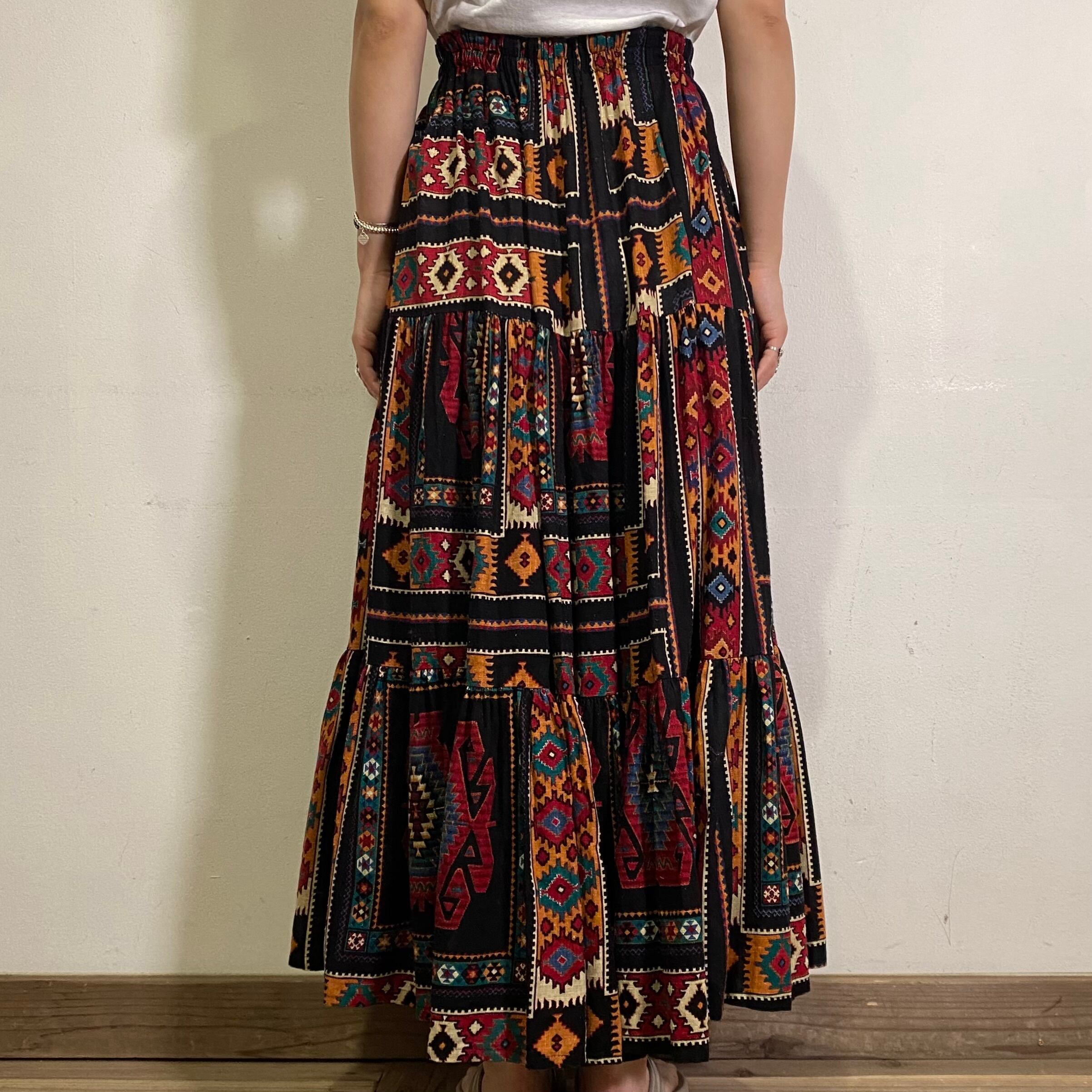 ブラックベースにネイティブ柄が映える、ロングスカートです。