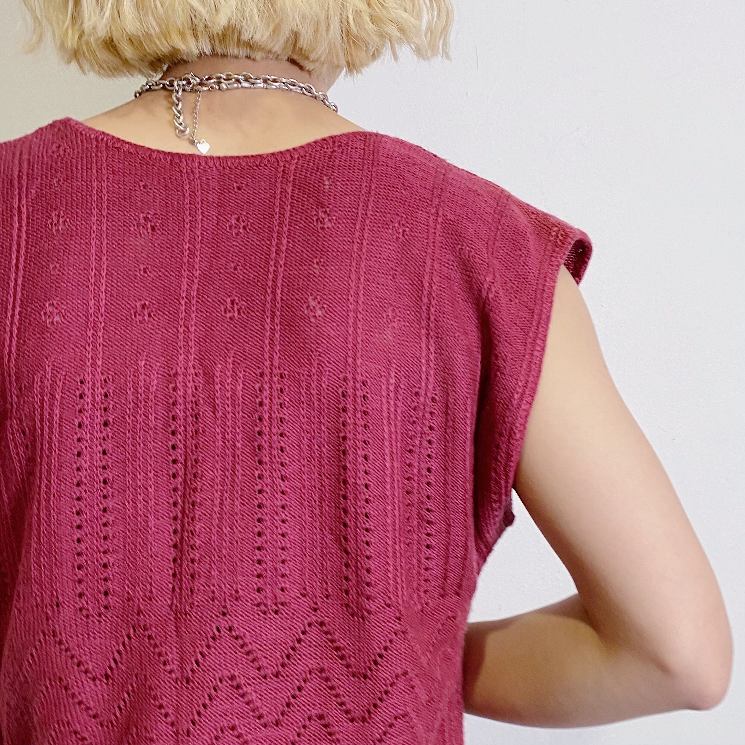 編み模様の可愛いサマーニットで、幅広いシーズン着ていただけますよ。