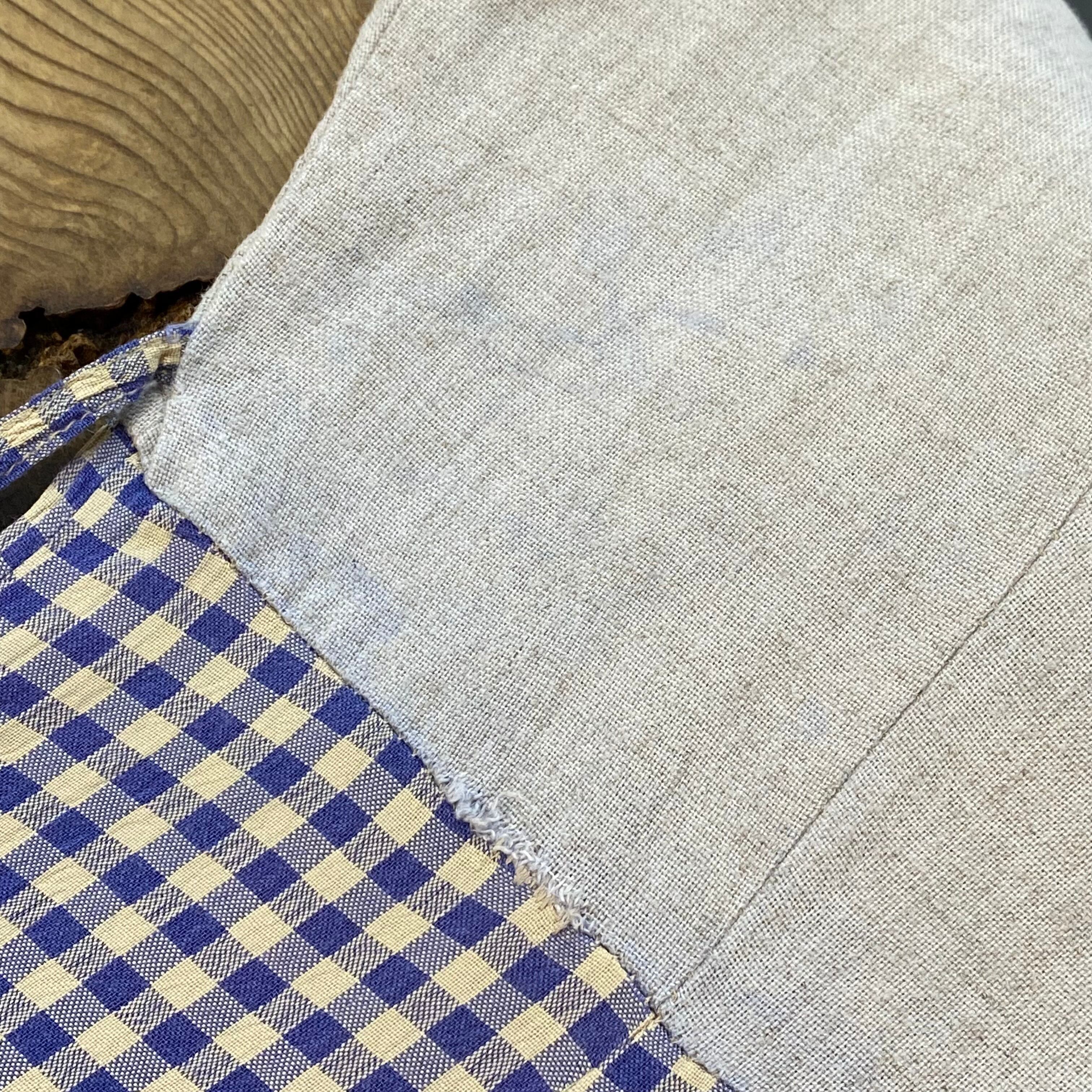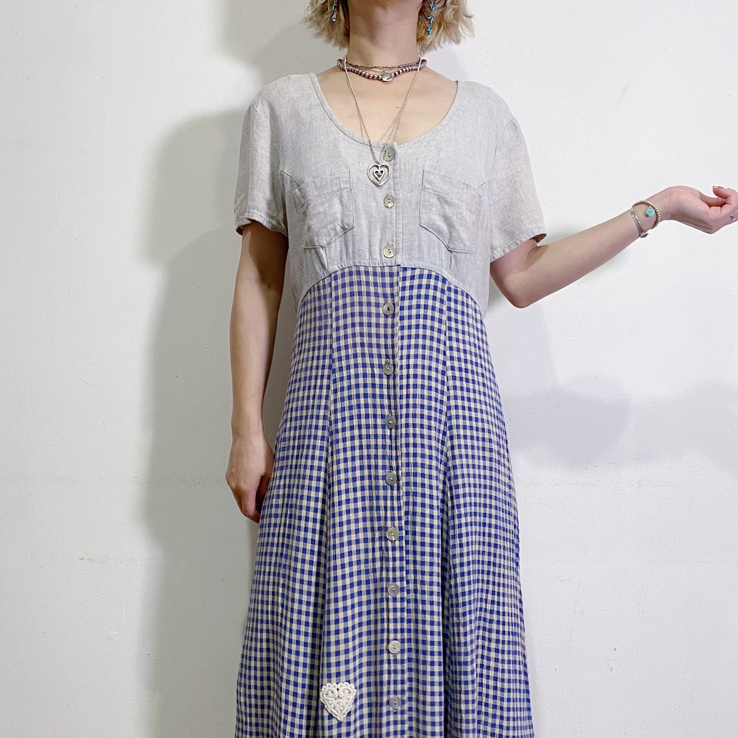 リネンとレーヨンの切り替えが可愛い、半袖ワンピースです。