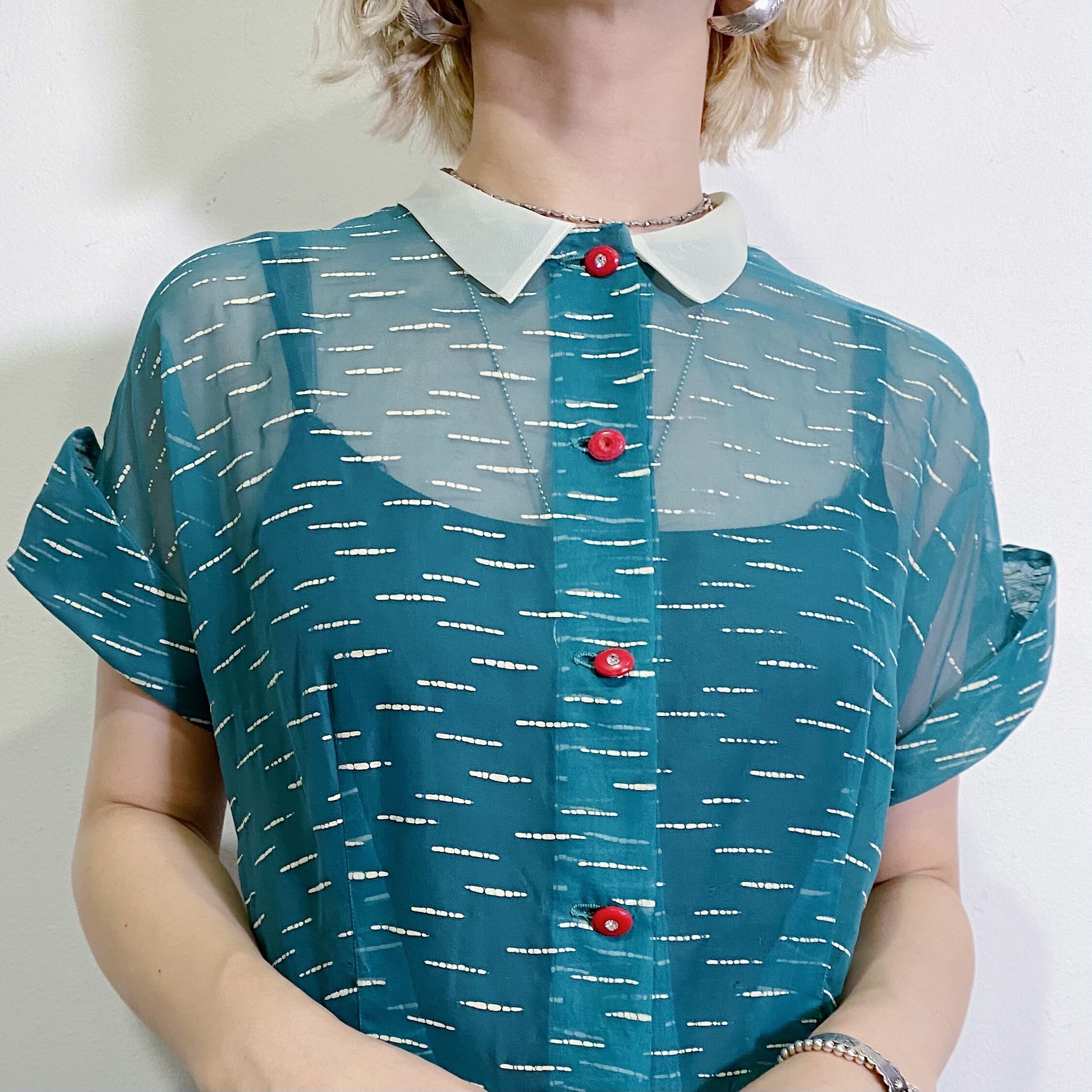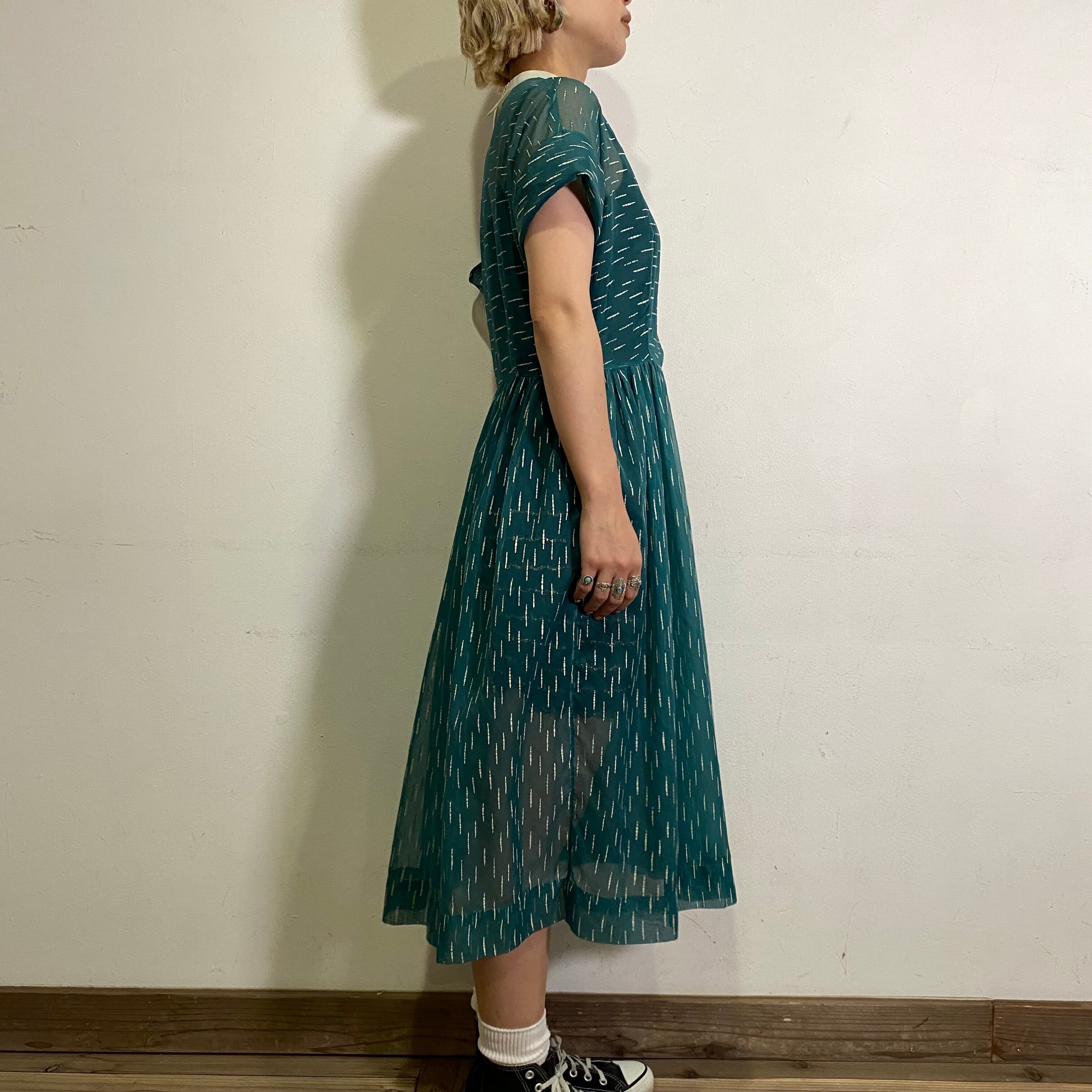 グリーンカラーのシアー素材の透け感がとっても素敵な、50年代のワンピースです。