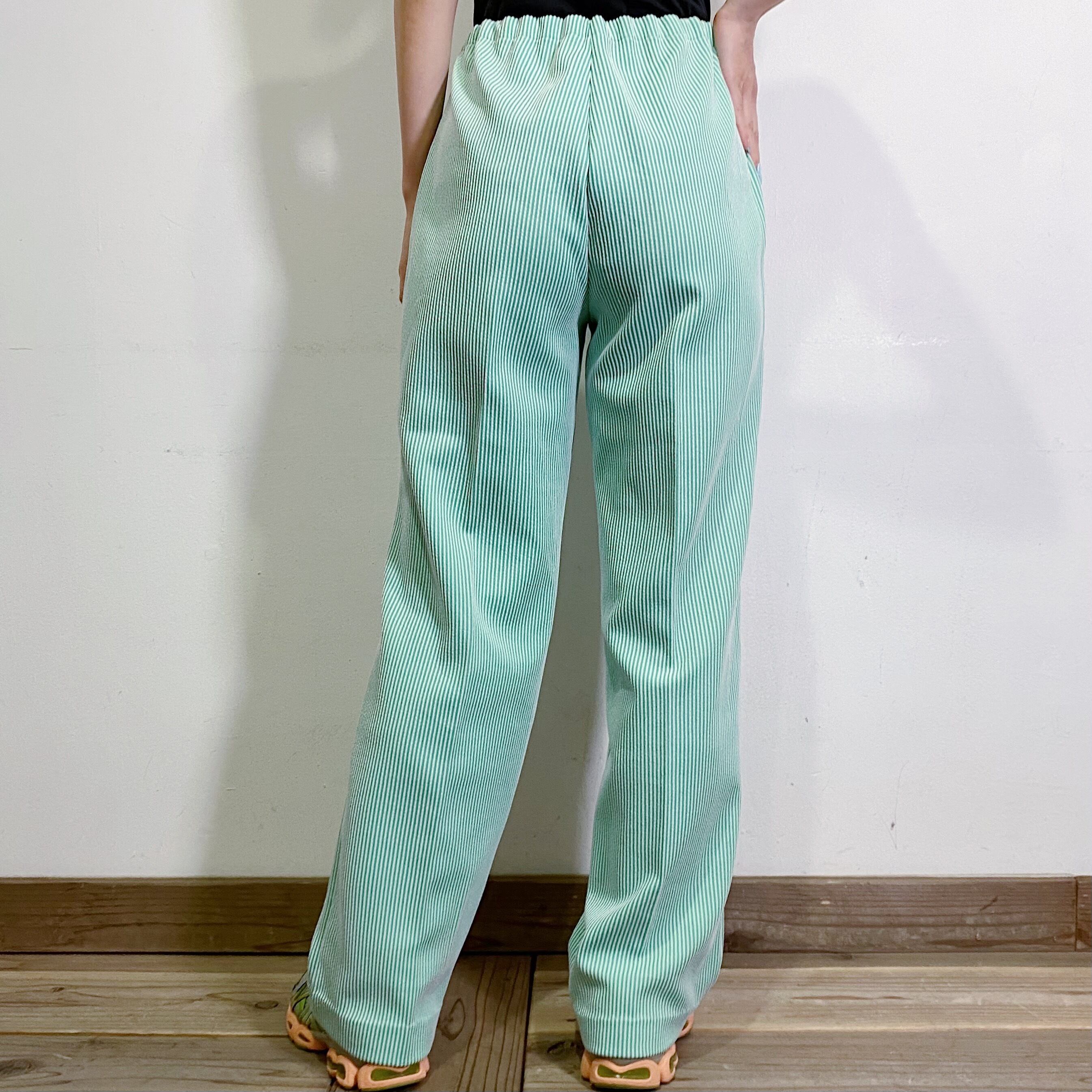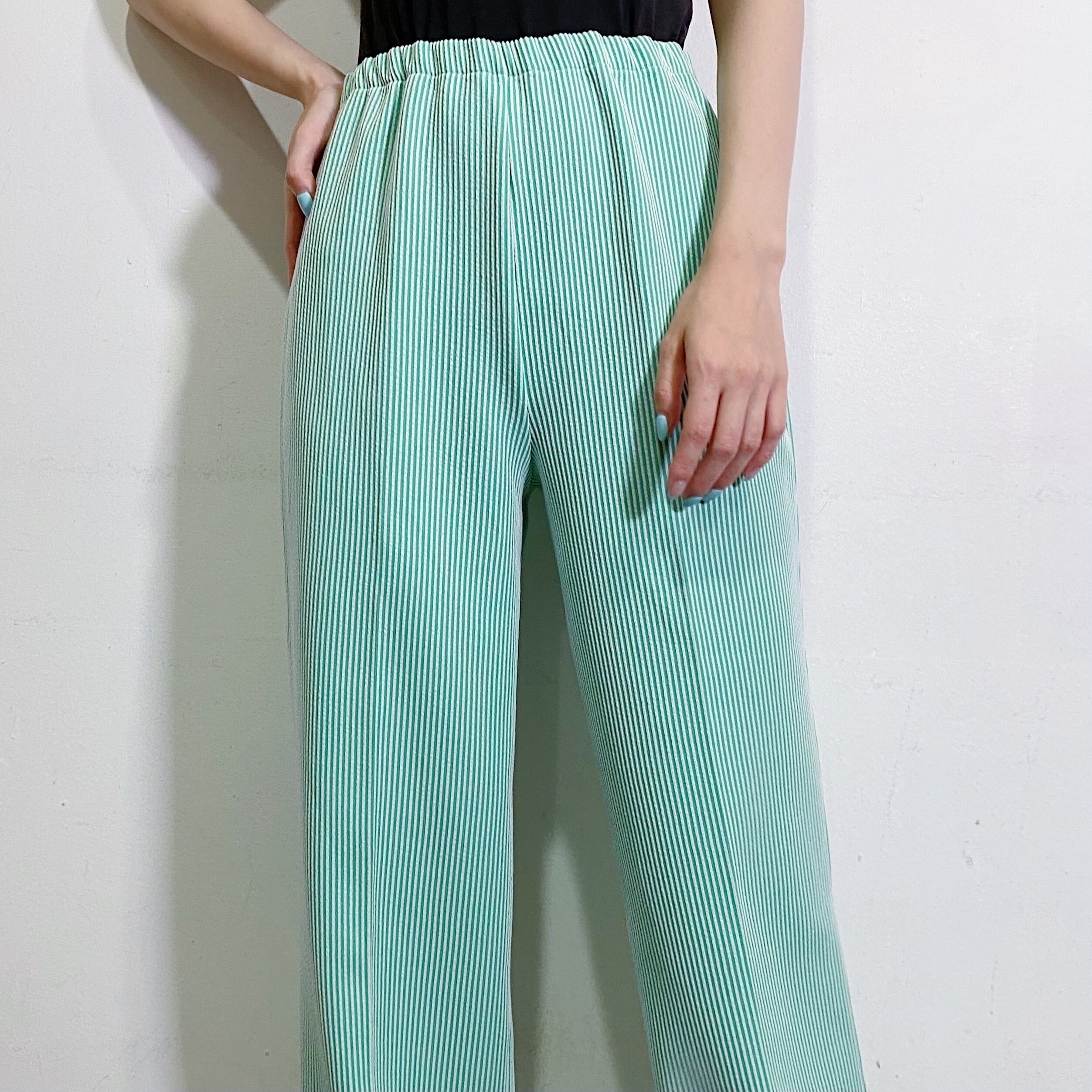 Green and white stripe easy wide pants