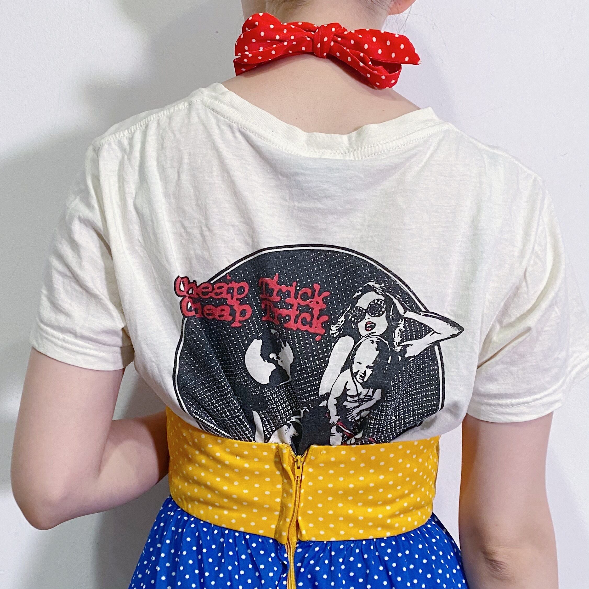 背中が開いているのを活かして、プリントTなどを見せた着こなしもおススメです。