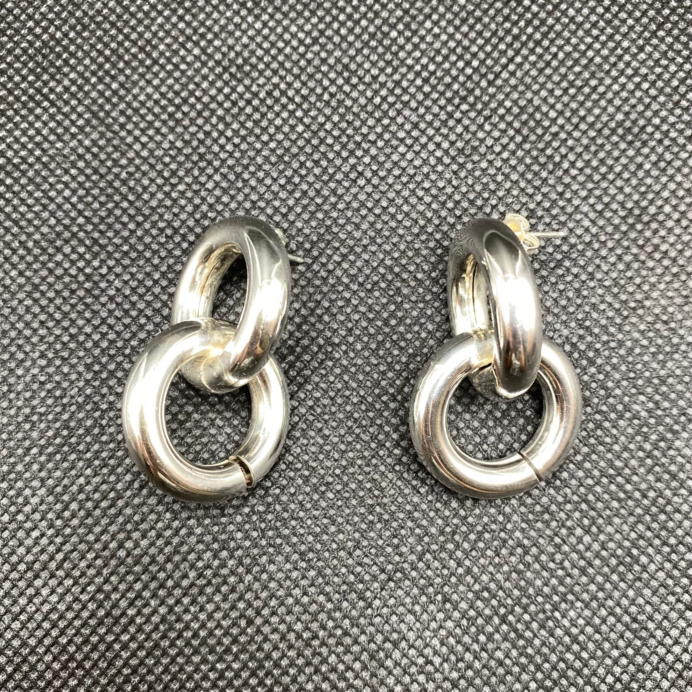 太めのフープが重なったデザインが可愛い、925シルバーのピアスです。