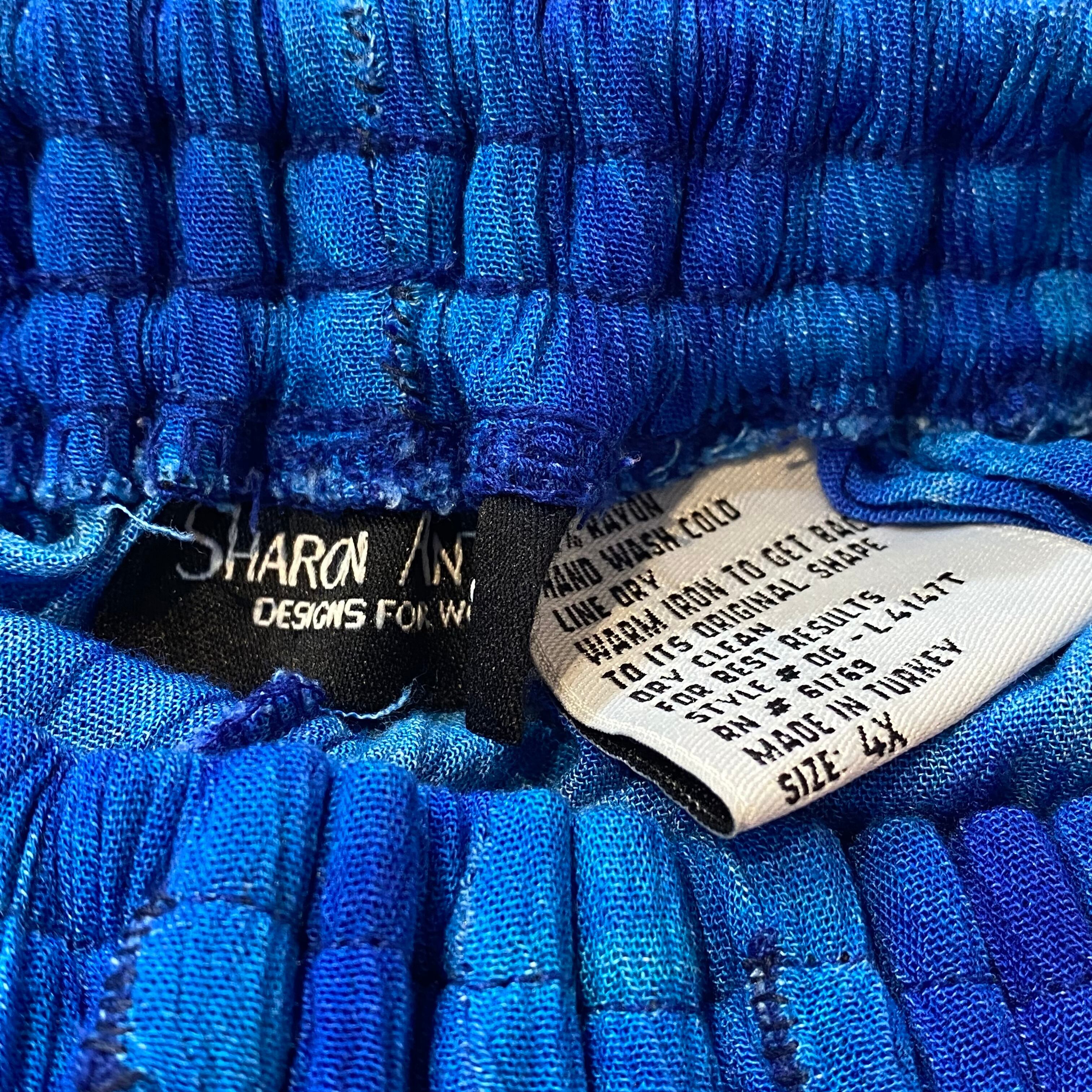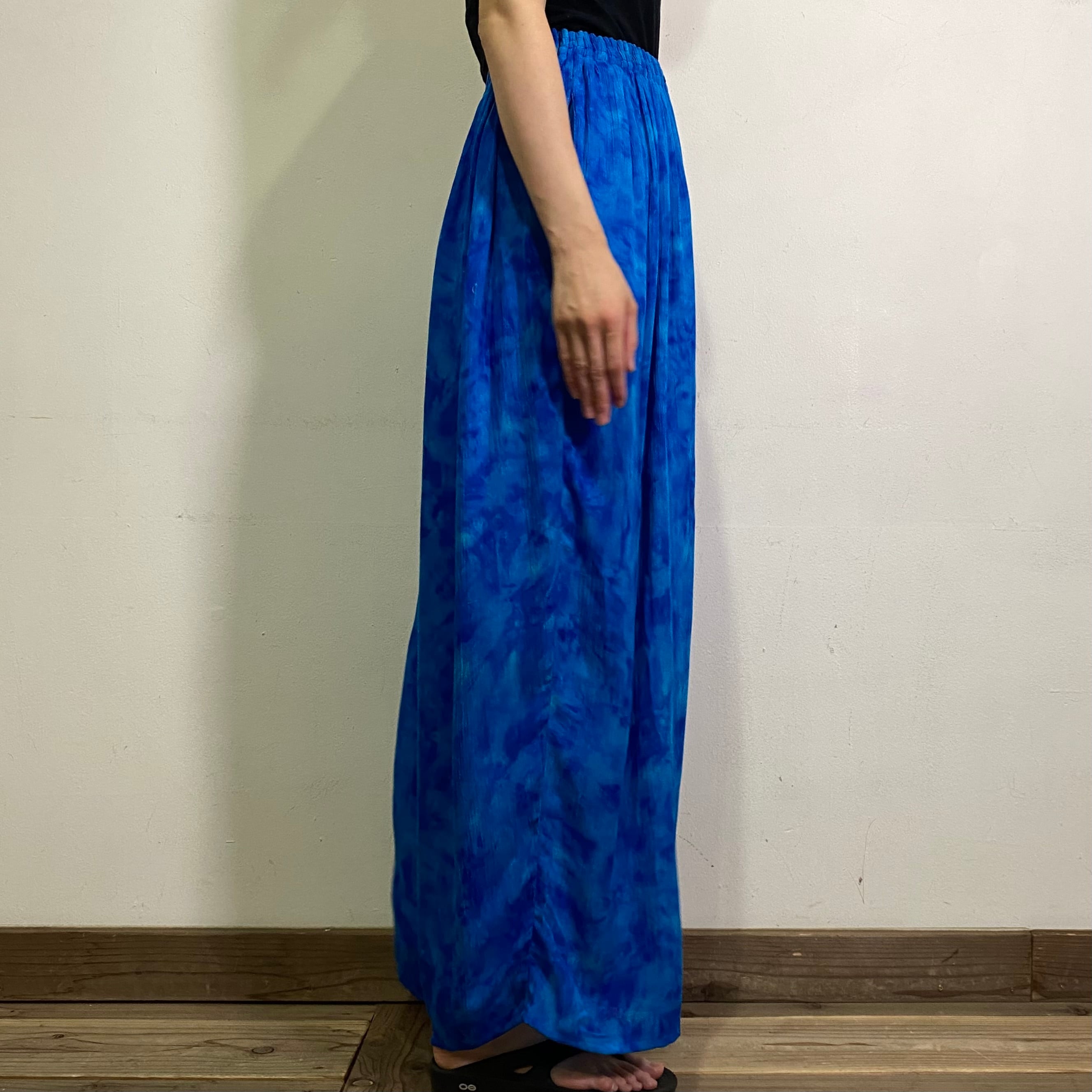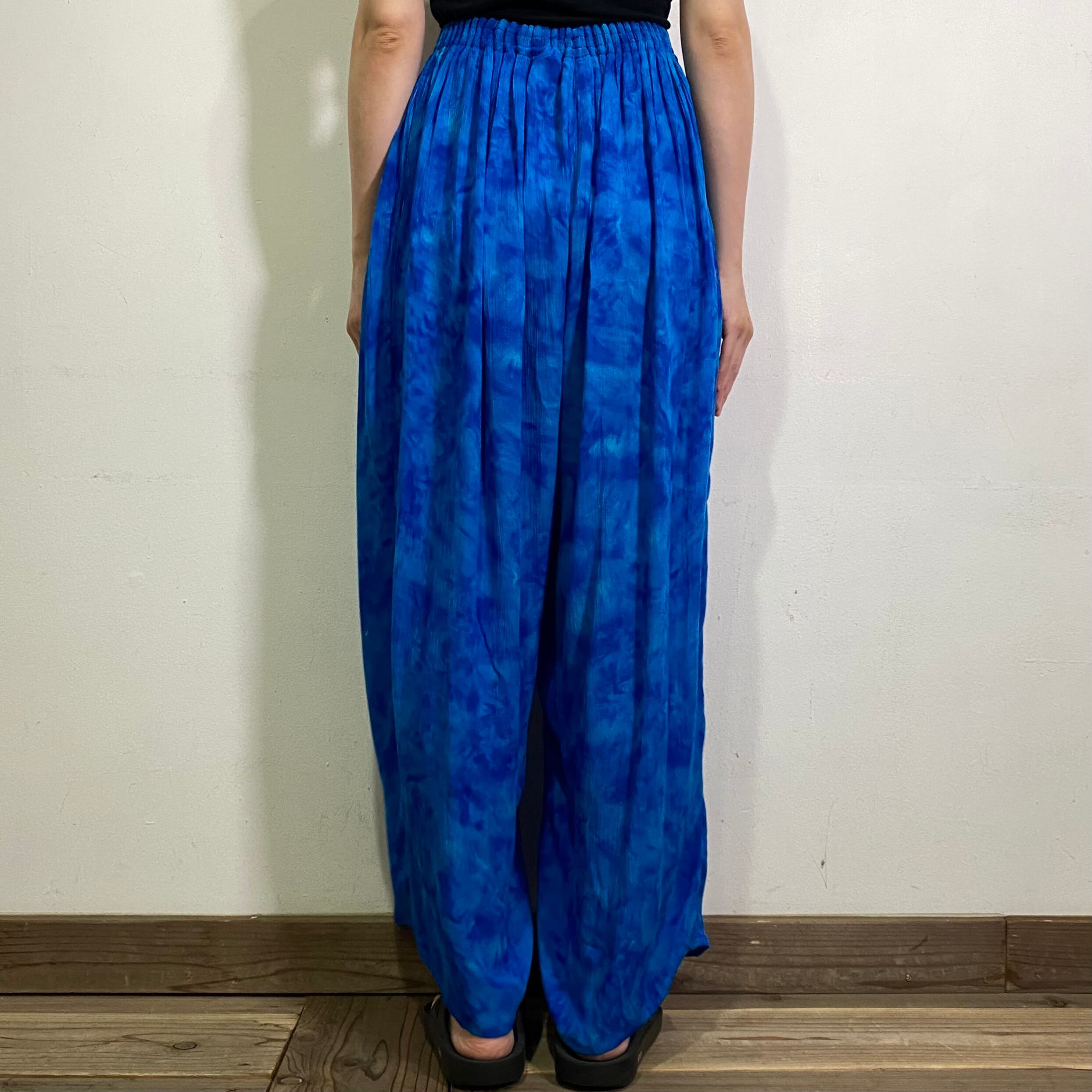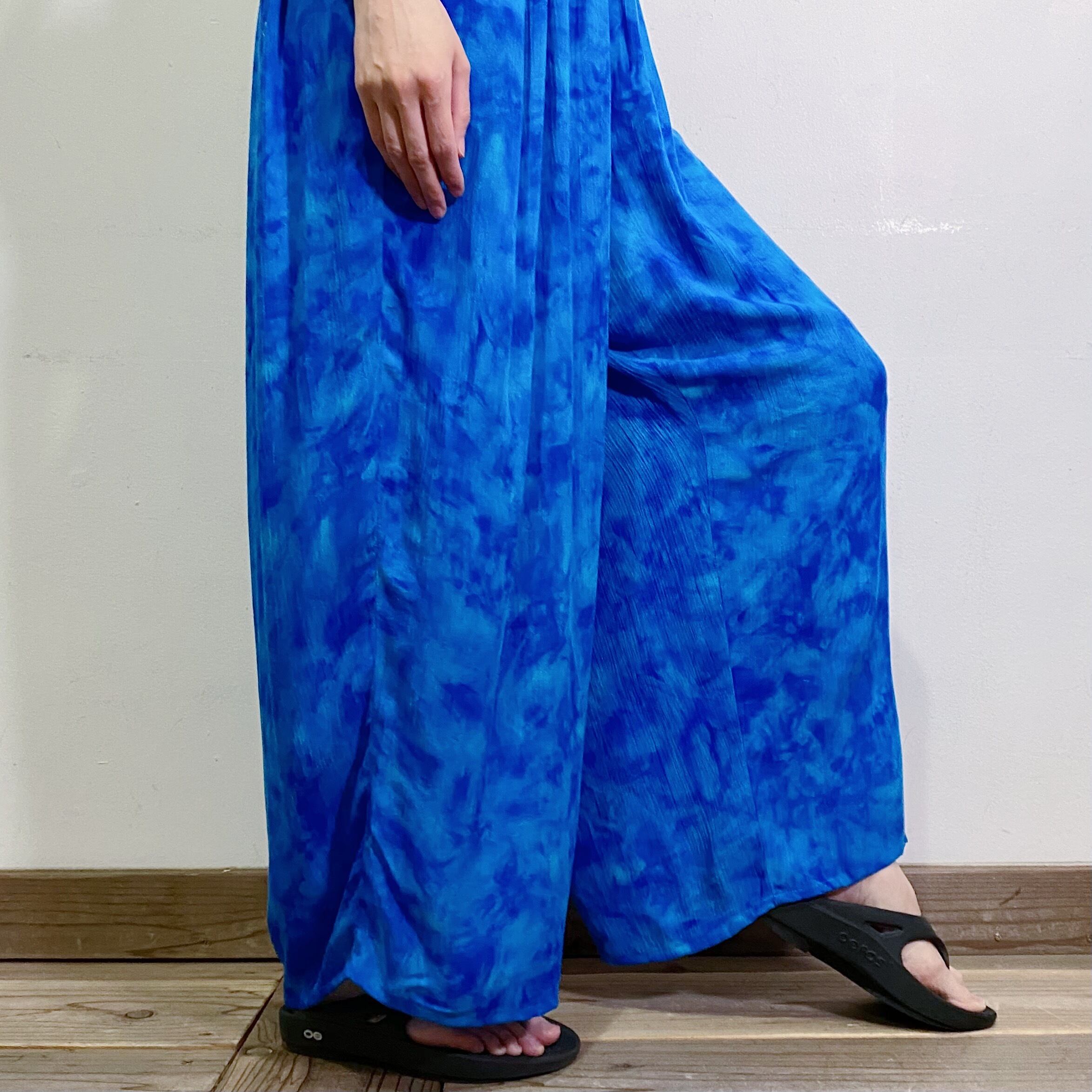 ブルーのタイダイに太めのワイドシルエットが可愛い、パンツです。