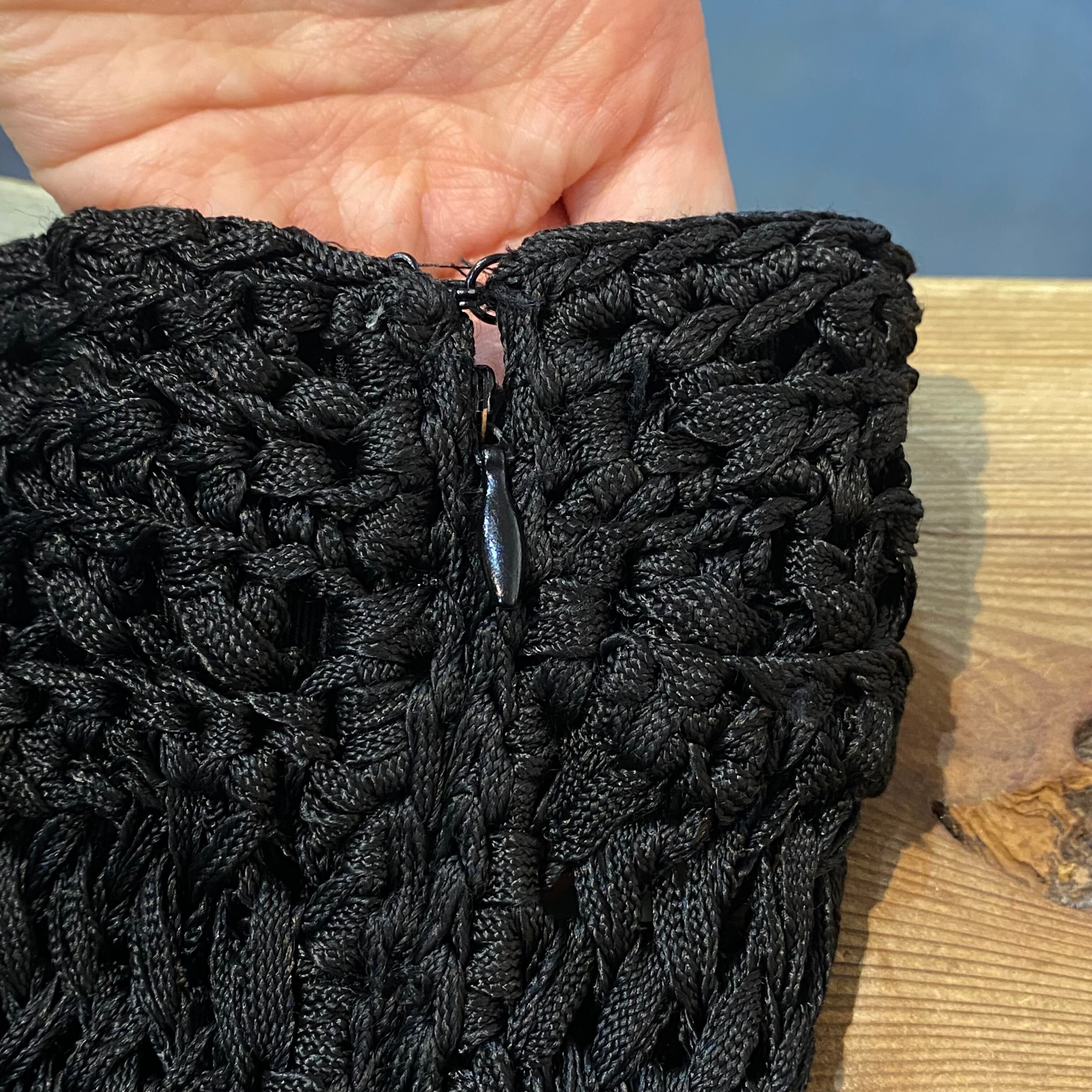 膝辺りから編み模様が変わっていたり、ユニークな一枚。