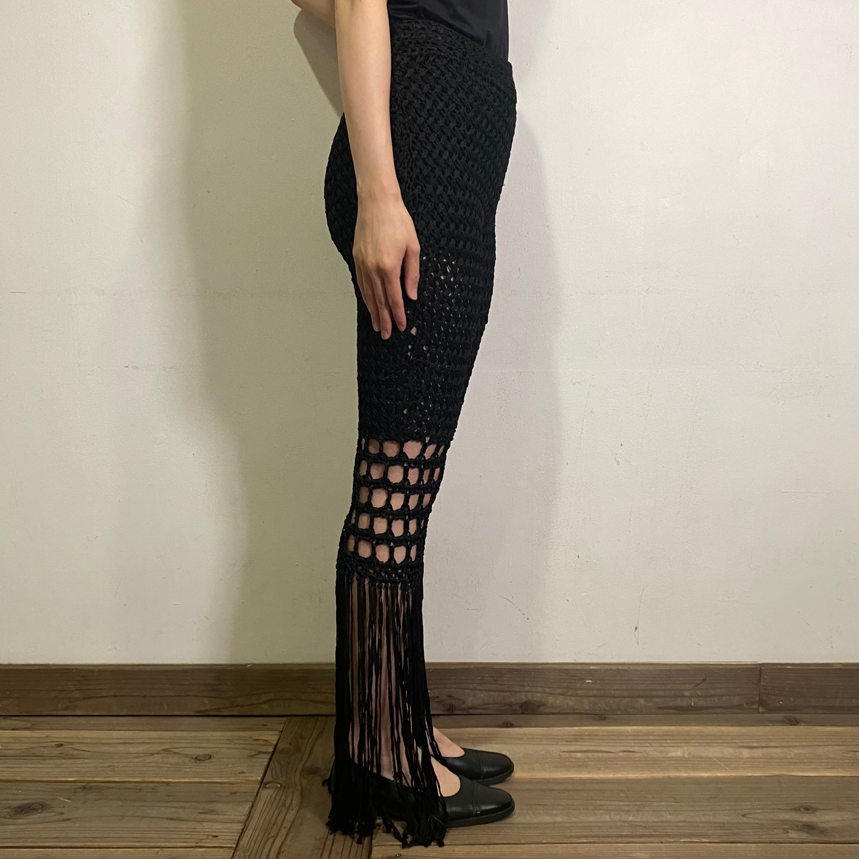 裾の長めフリンジが可愛い、クロシェパンツです。