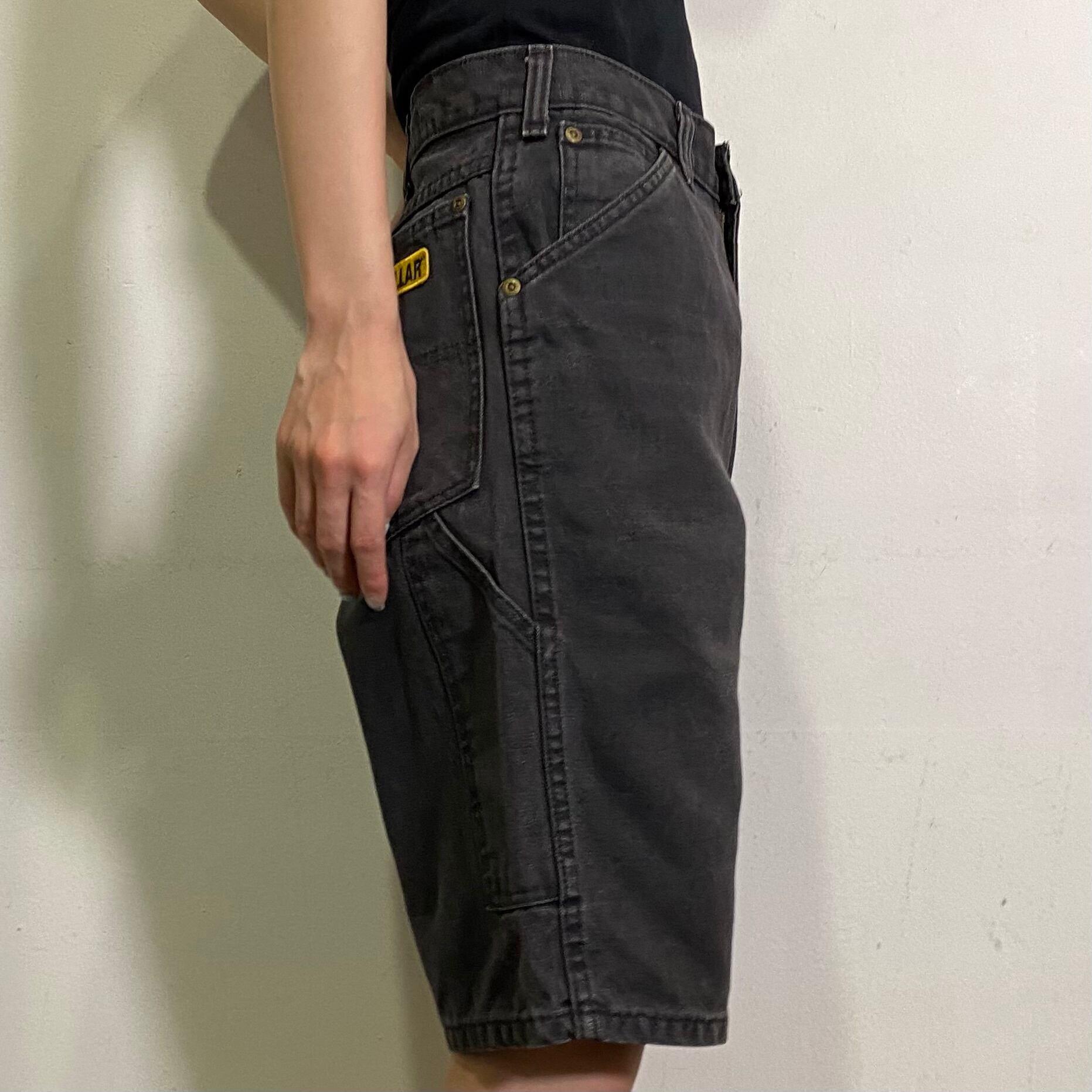 太めのシルエットが可愛い、ブラックデニムのハーフパンツです。