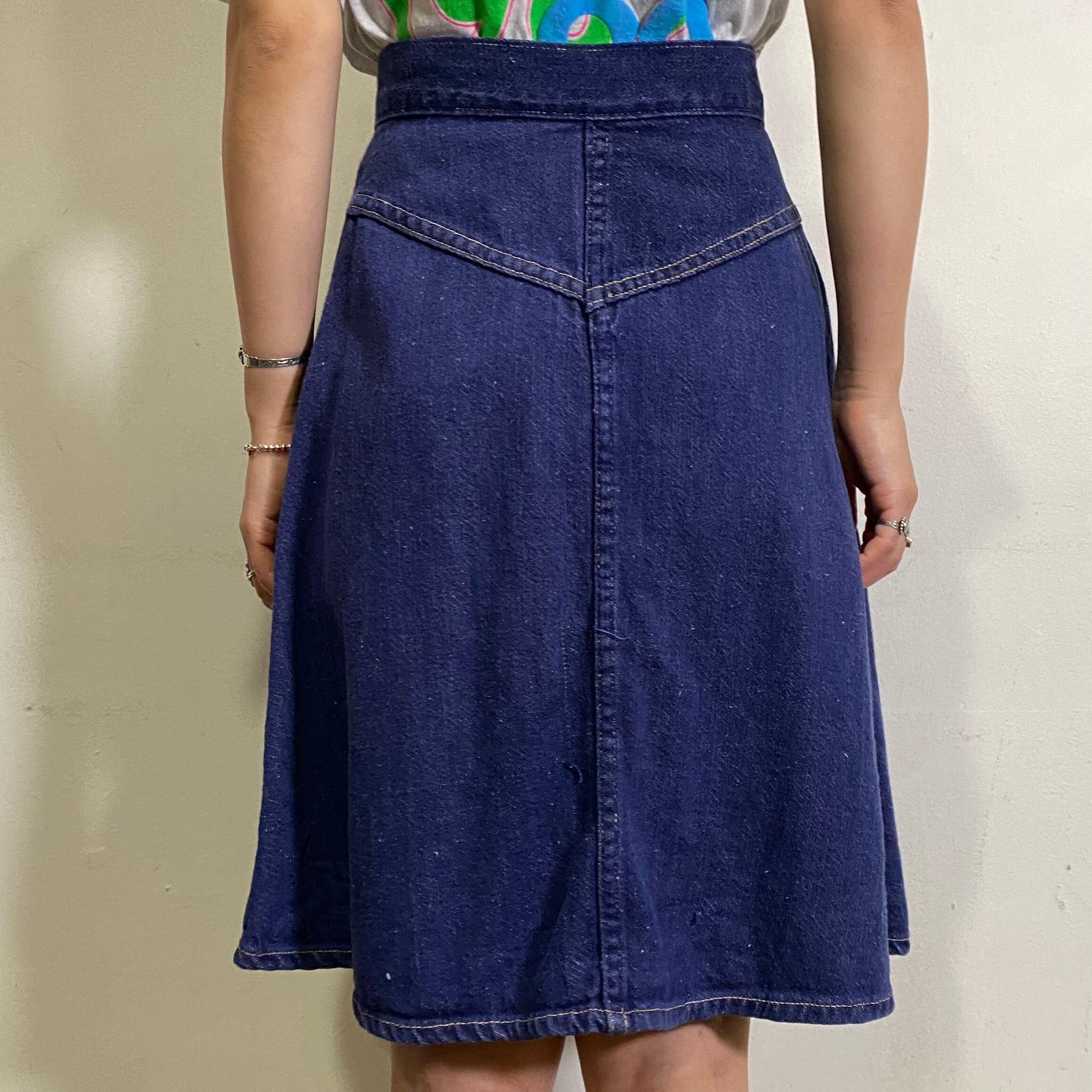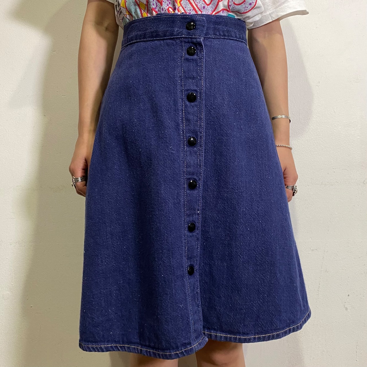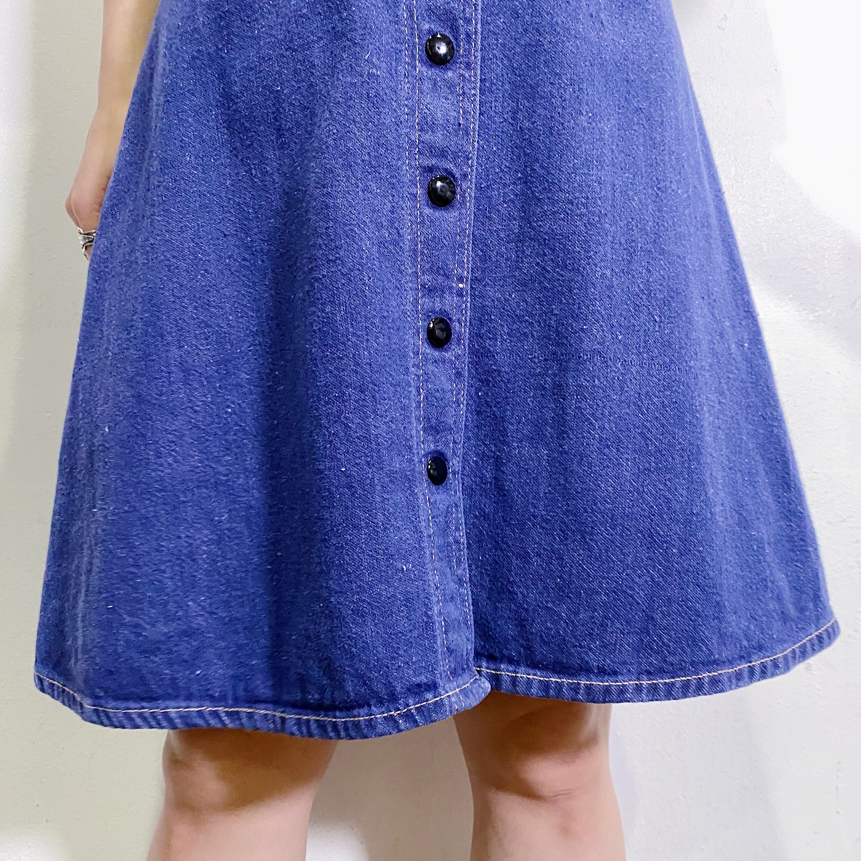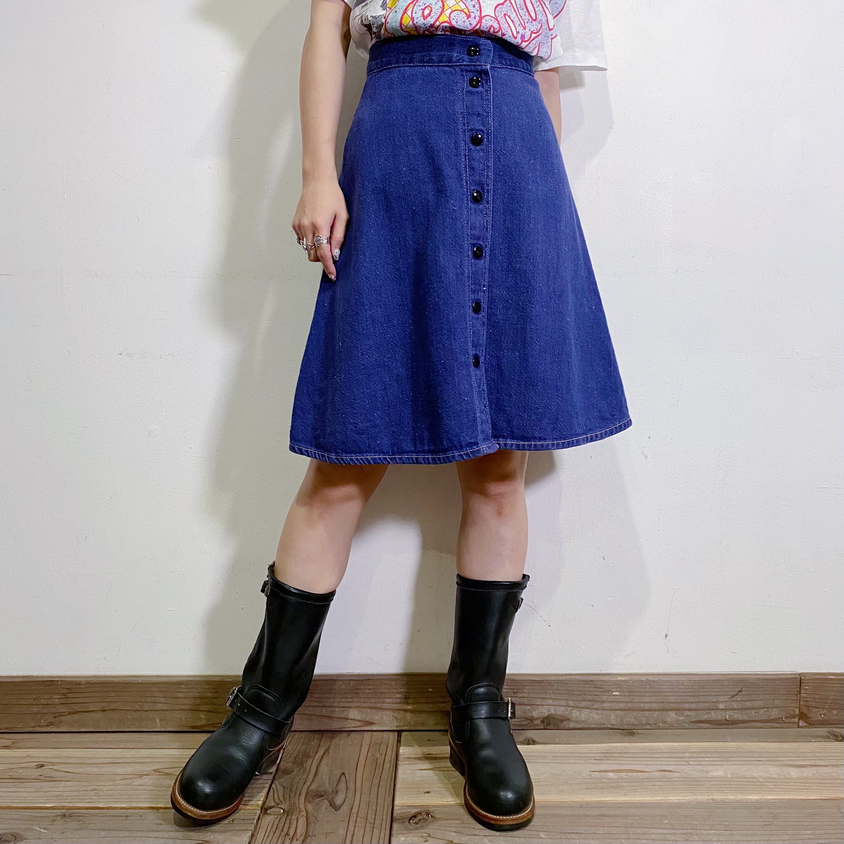 濃いめのブルーカラーで使い勝手のいい、デニムのミニスカートです。