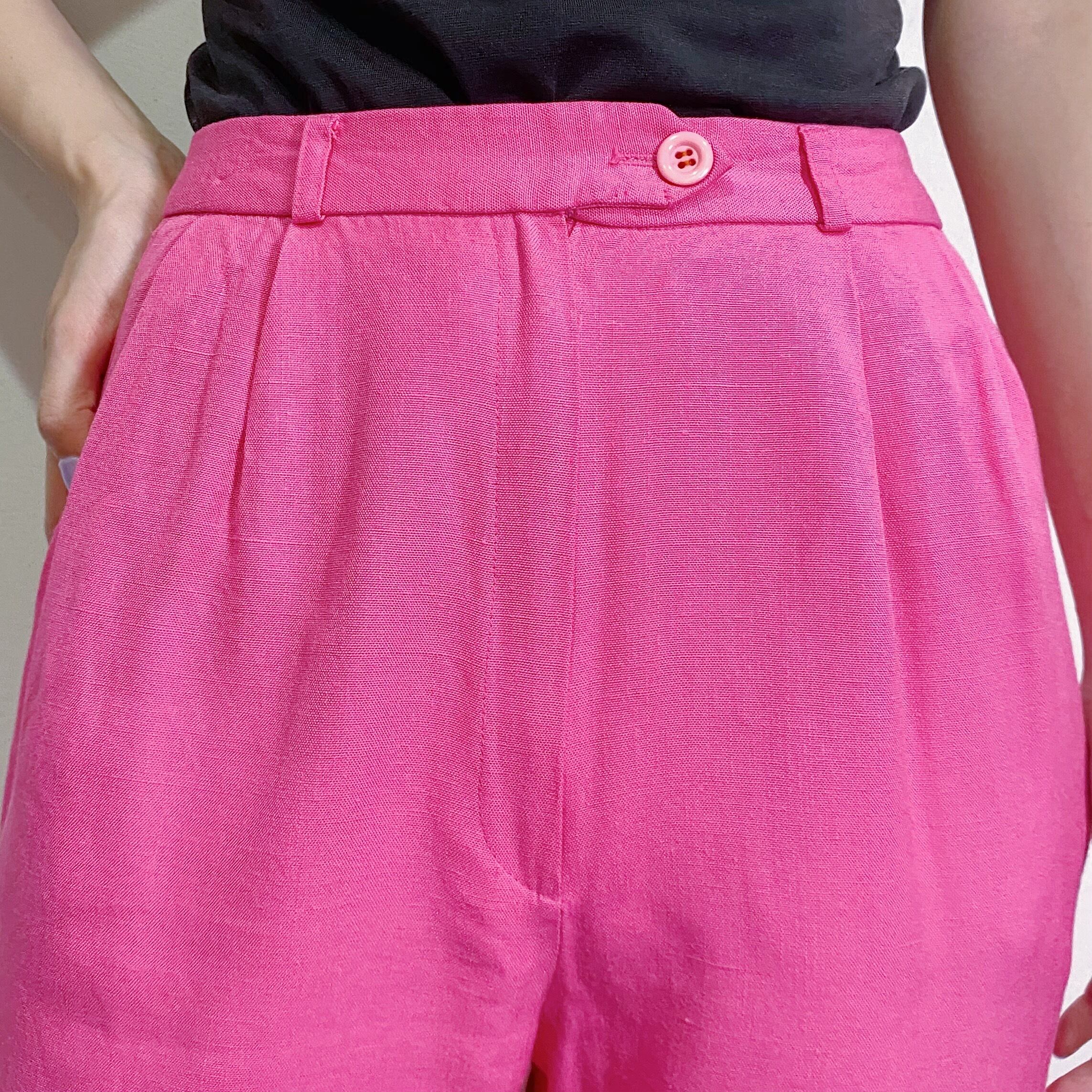 色鮮やかなピンクカラーが可愛い、テーパードパンツです。