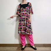 70s pink and black flower printed dress