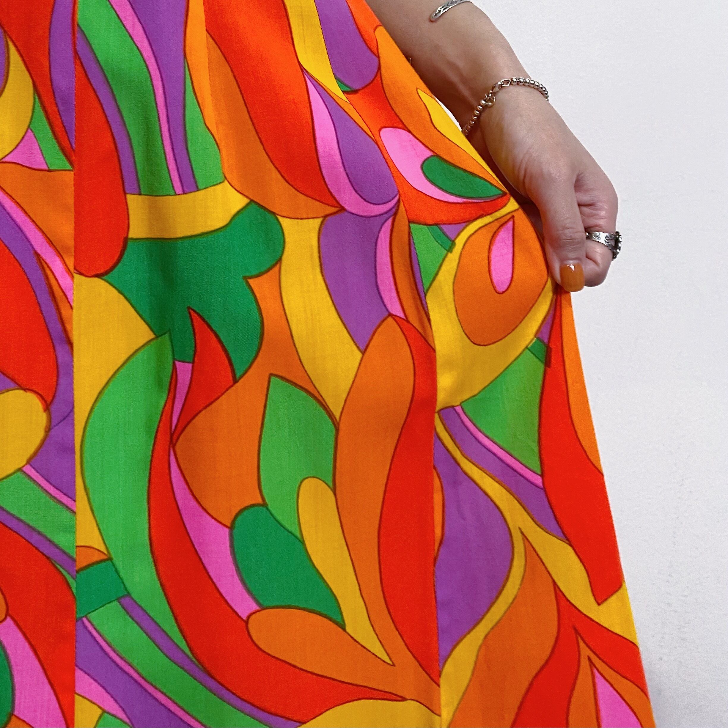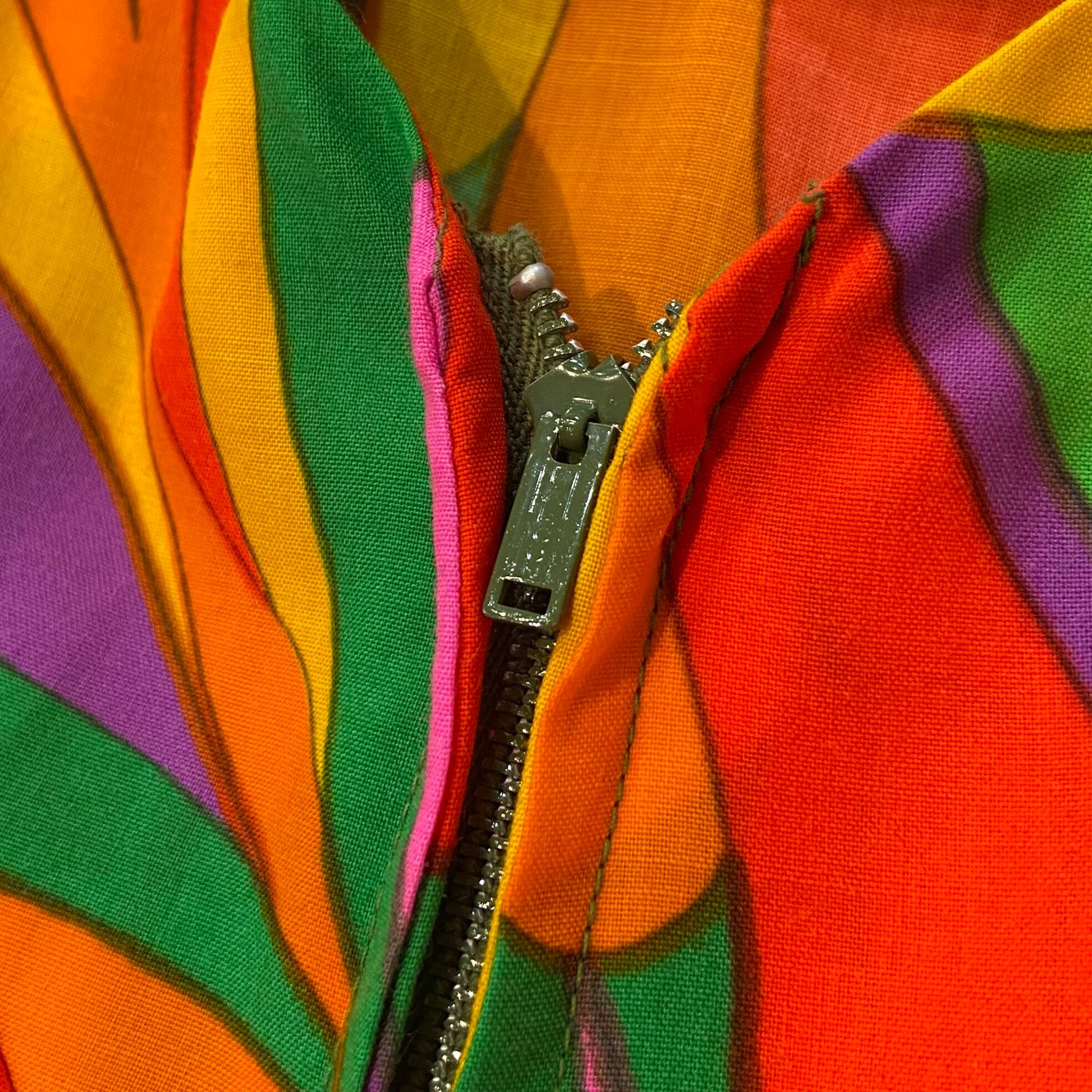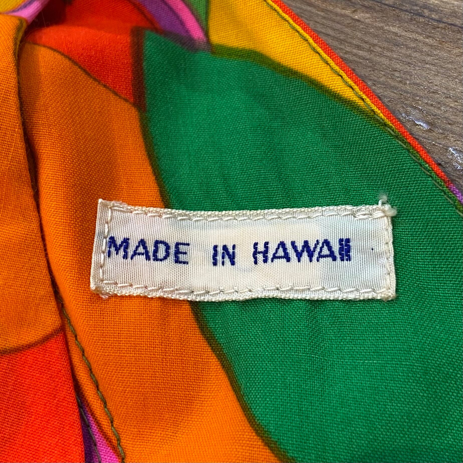 カラフルでアートなテキスタイルが可愛い、60年代のハワイアンワンピースです。