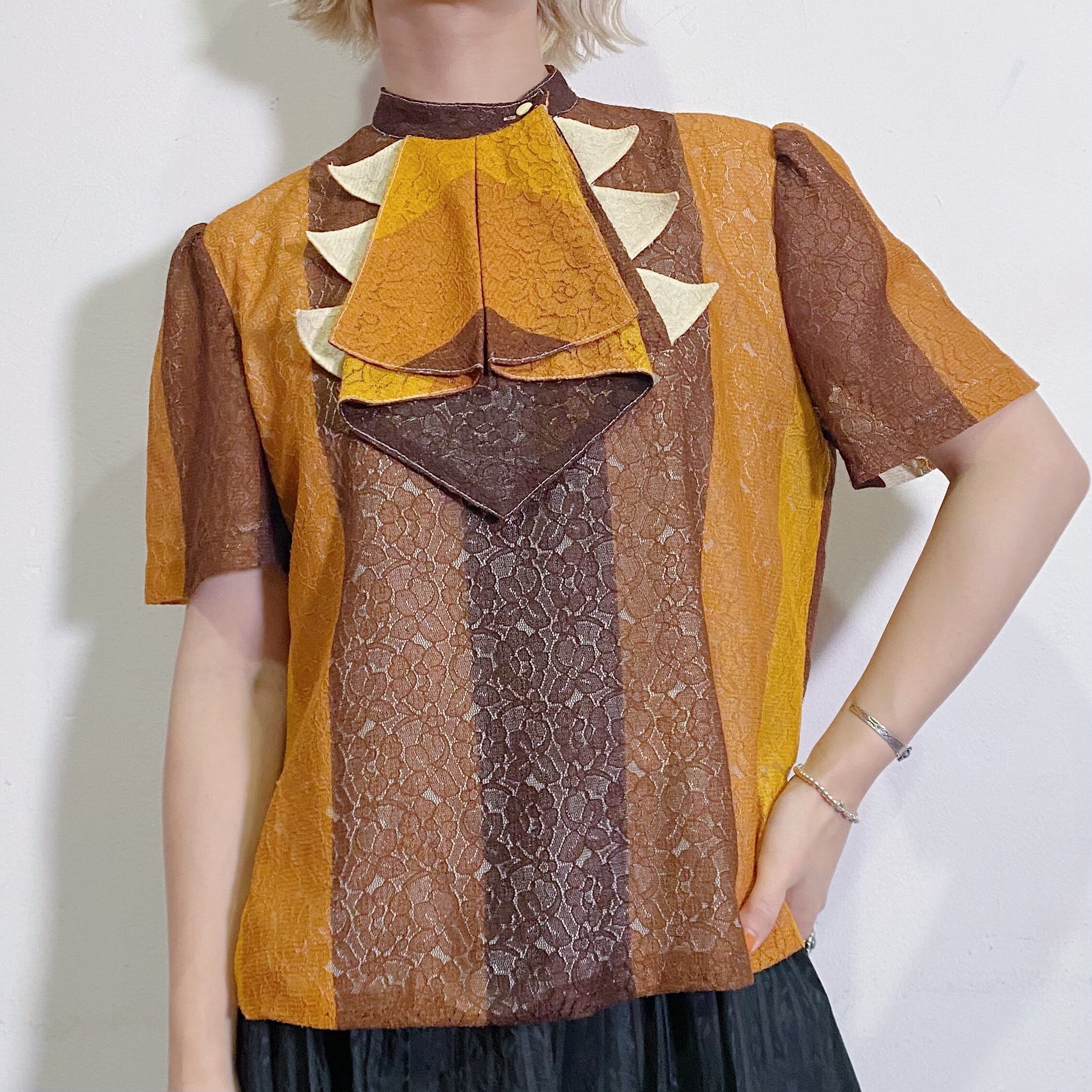 首元の凝ったデザインが可愛い、半袖トップスです。