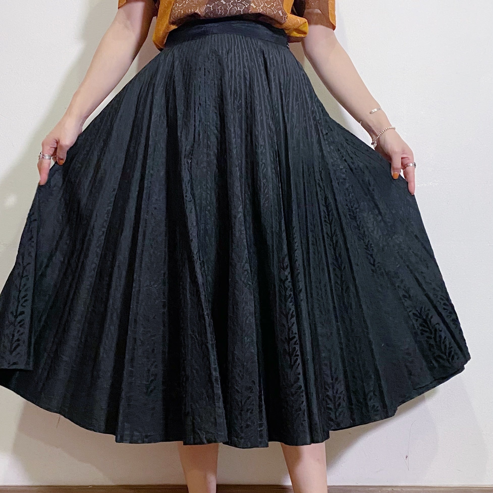 オールブラックカラーのシックなデザインが魅力的な、50年代のサークルスカートです。