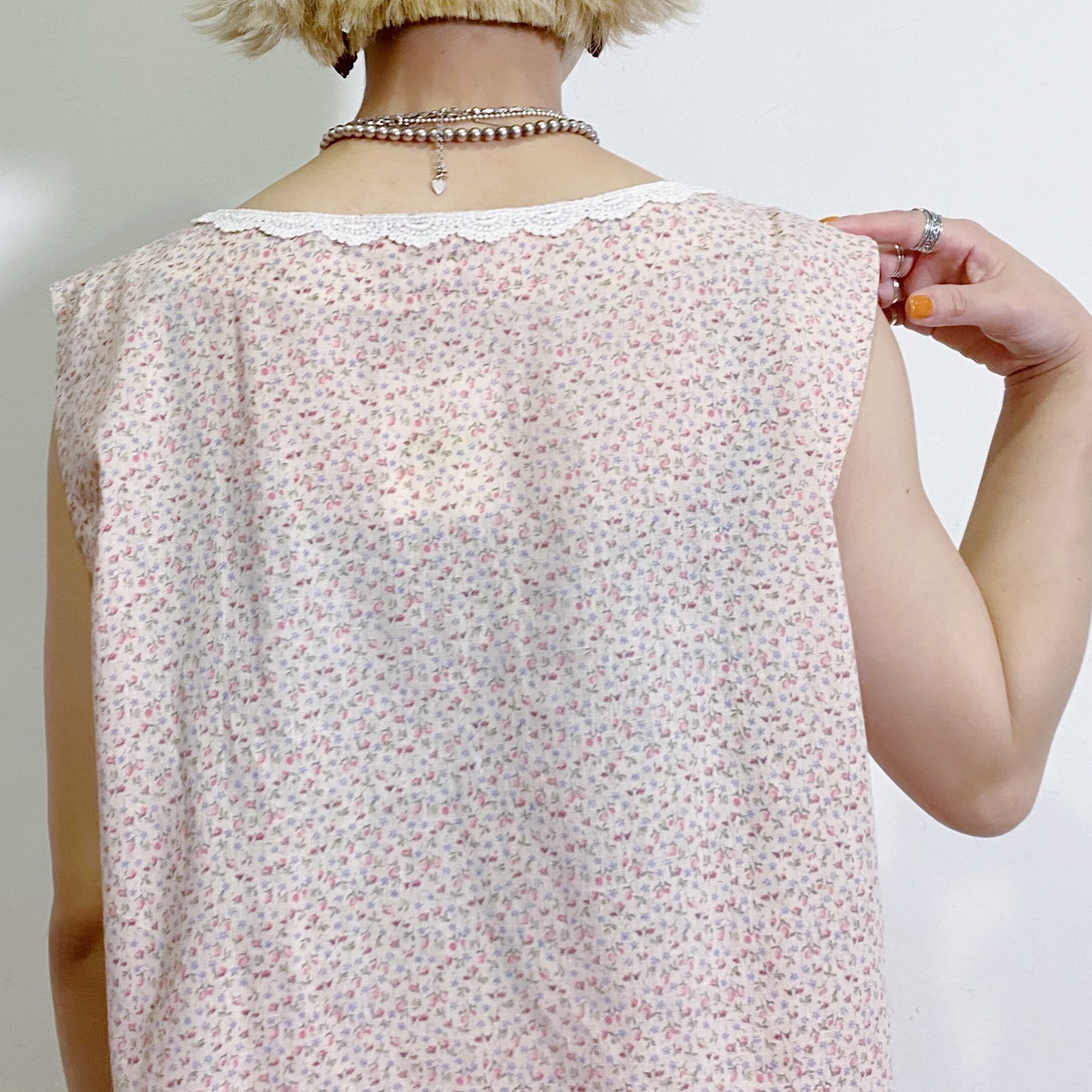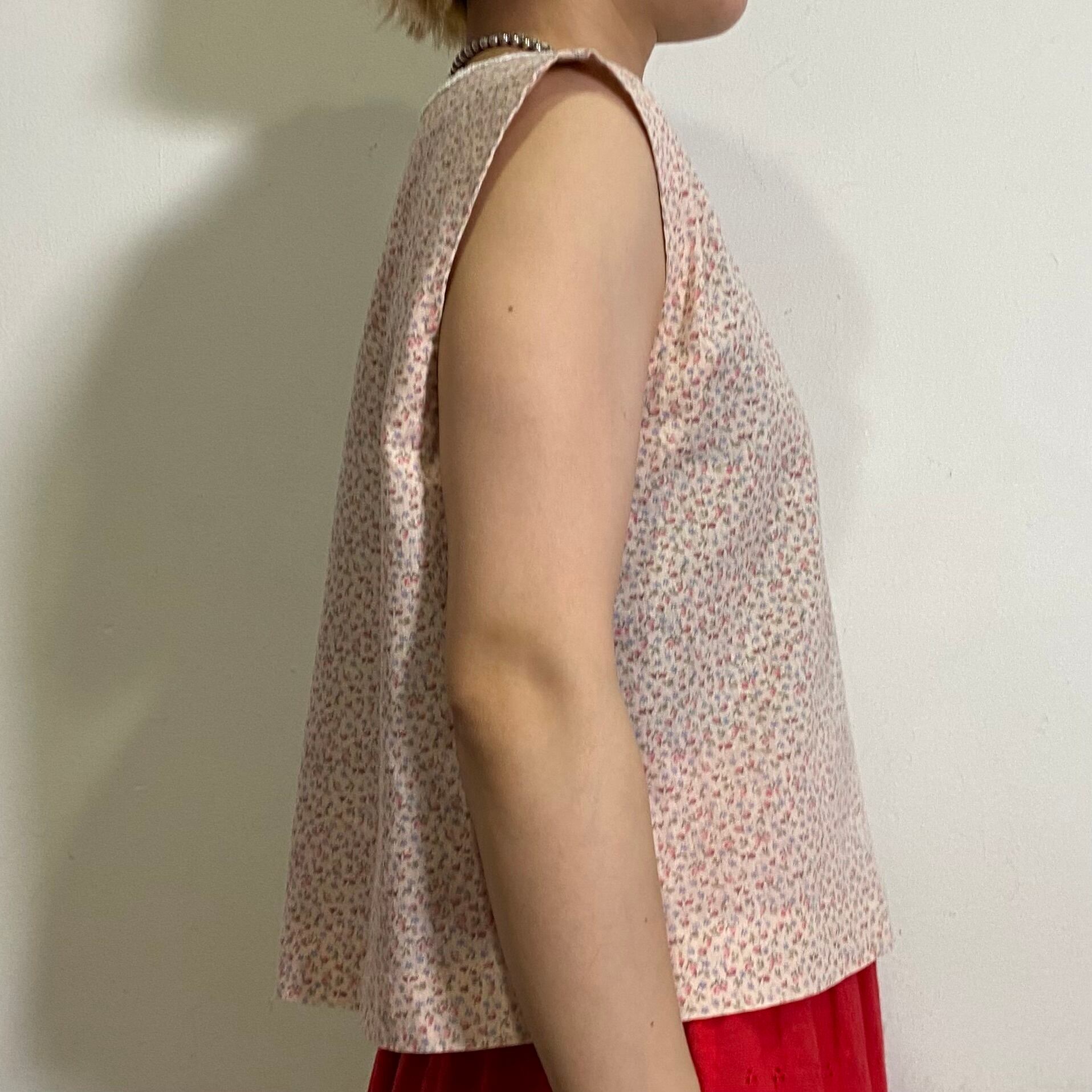 淡いピンクの小花柄が可愛い、70年代のノースリーブトップスです。