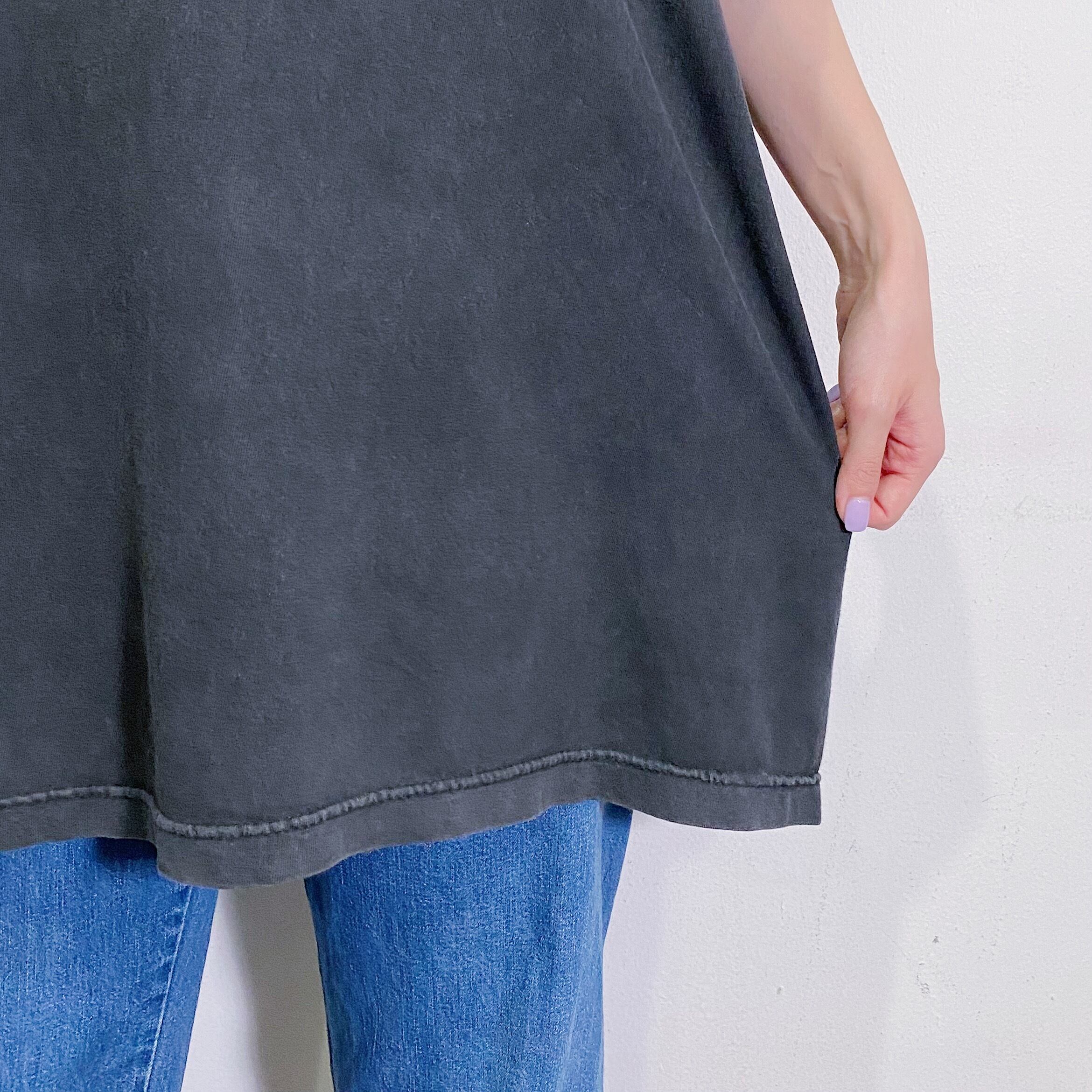 ブラックベースで着こなしやすく、程よいくたっと感が古着らしい一枚。