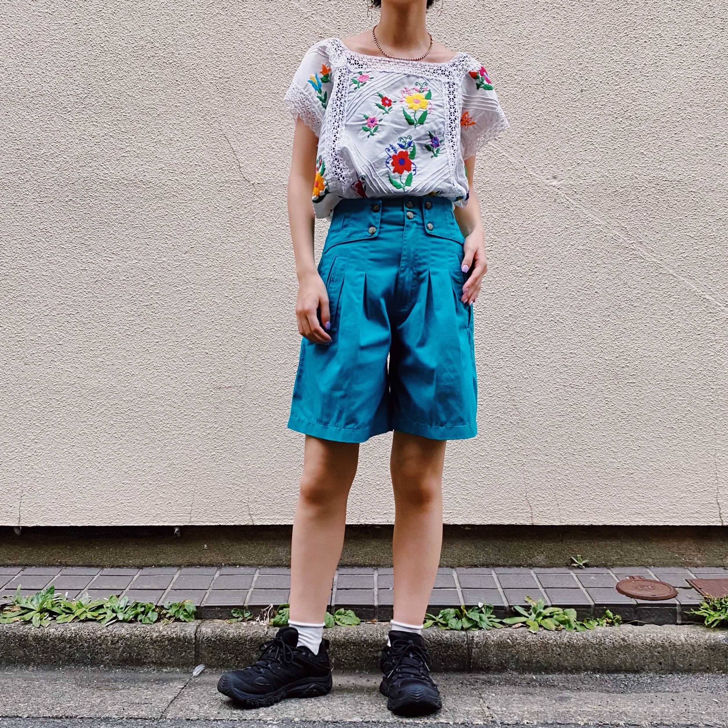 絶妙な青緑の色合いが可愛い、80年代のハーフパンツです。