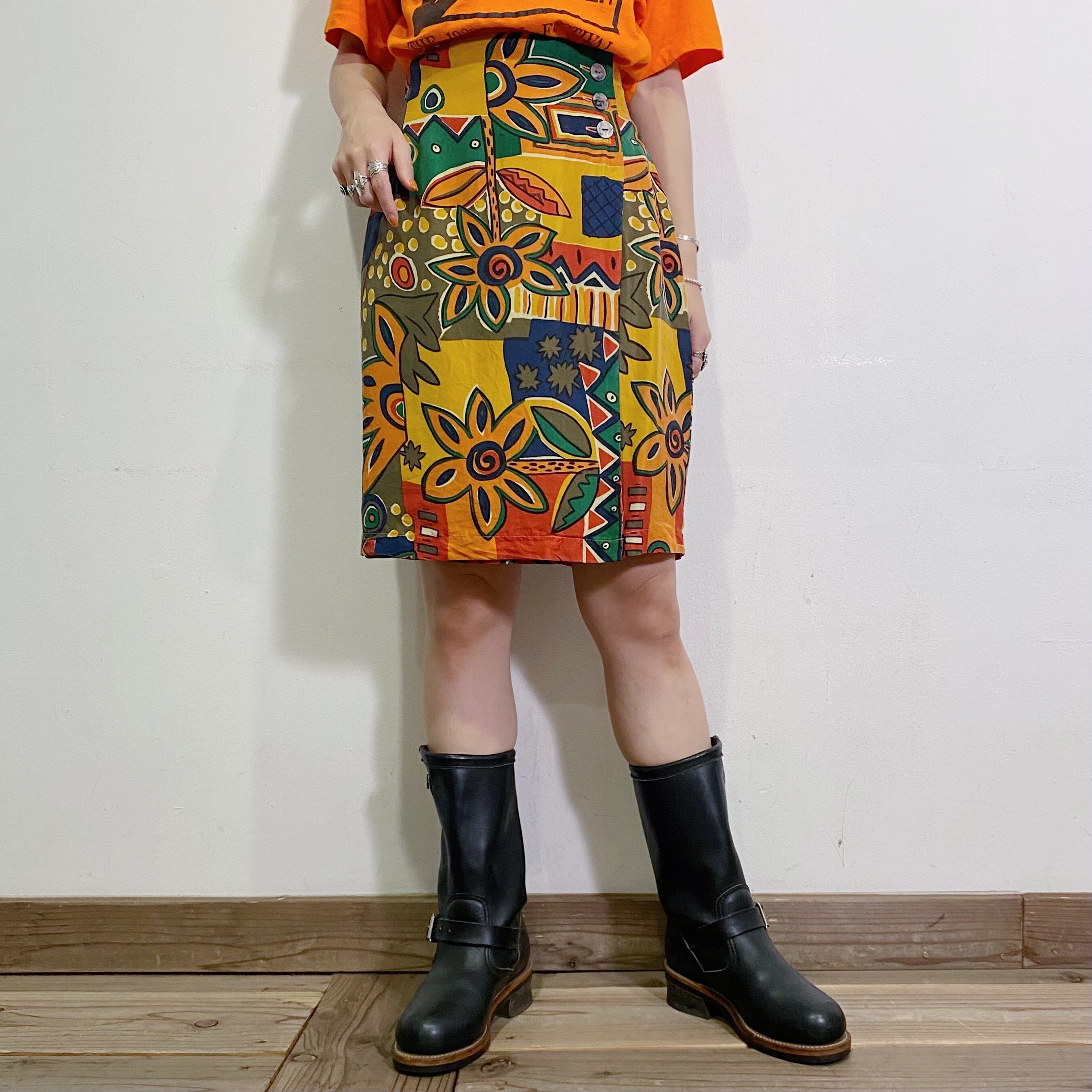 アーティスティックなイラストタッチ柄が可愛い、90年代のスカートです。