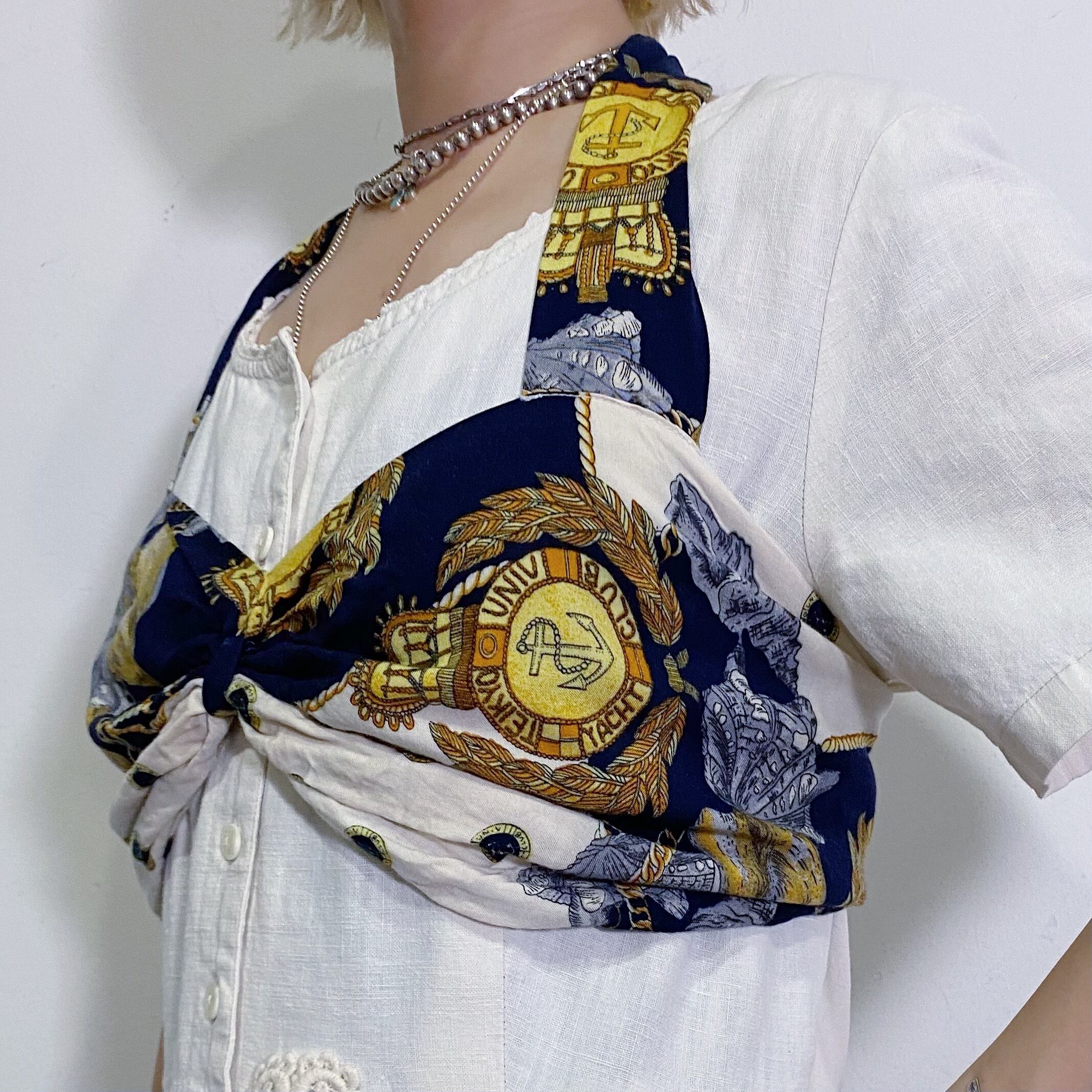 イカリマークや貝殻などのマリンチックなプリントが可愛い、80年代のブラトップです。