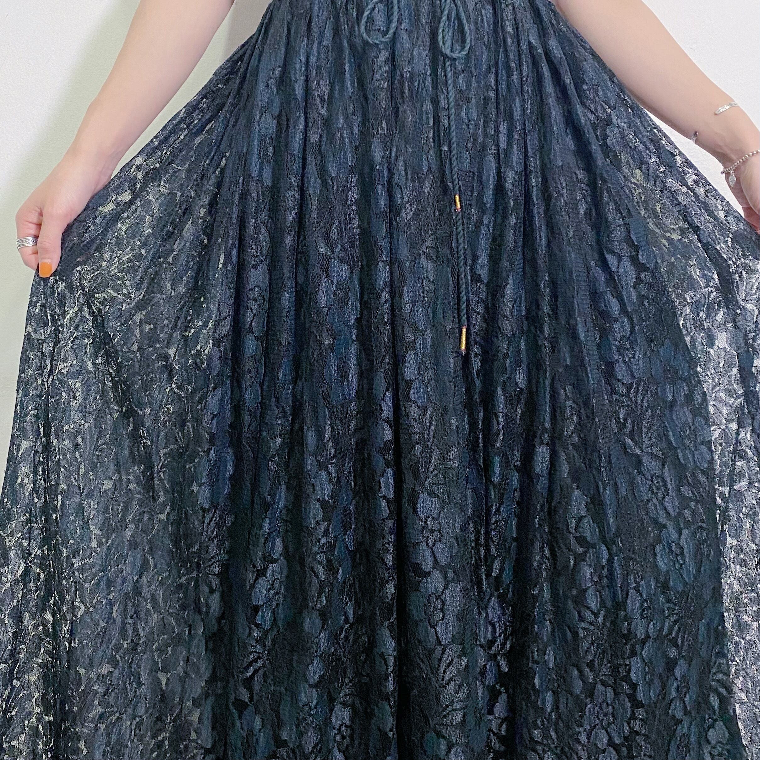 80s black lace long skirt