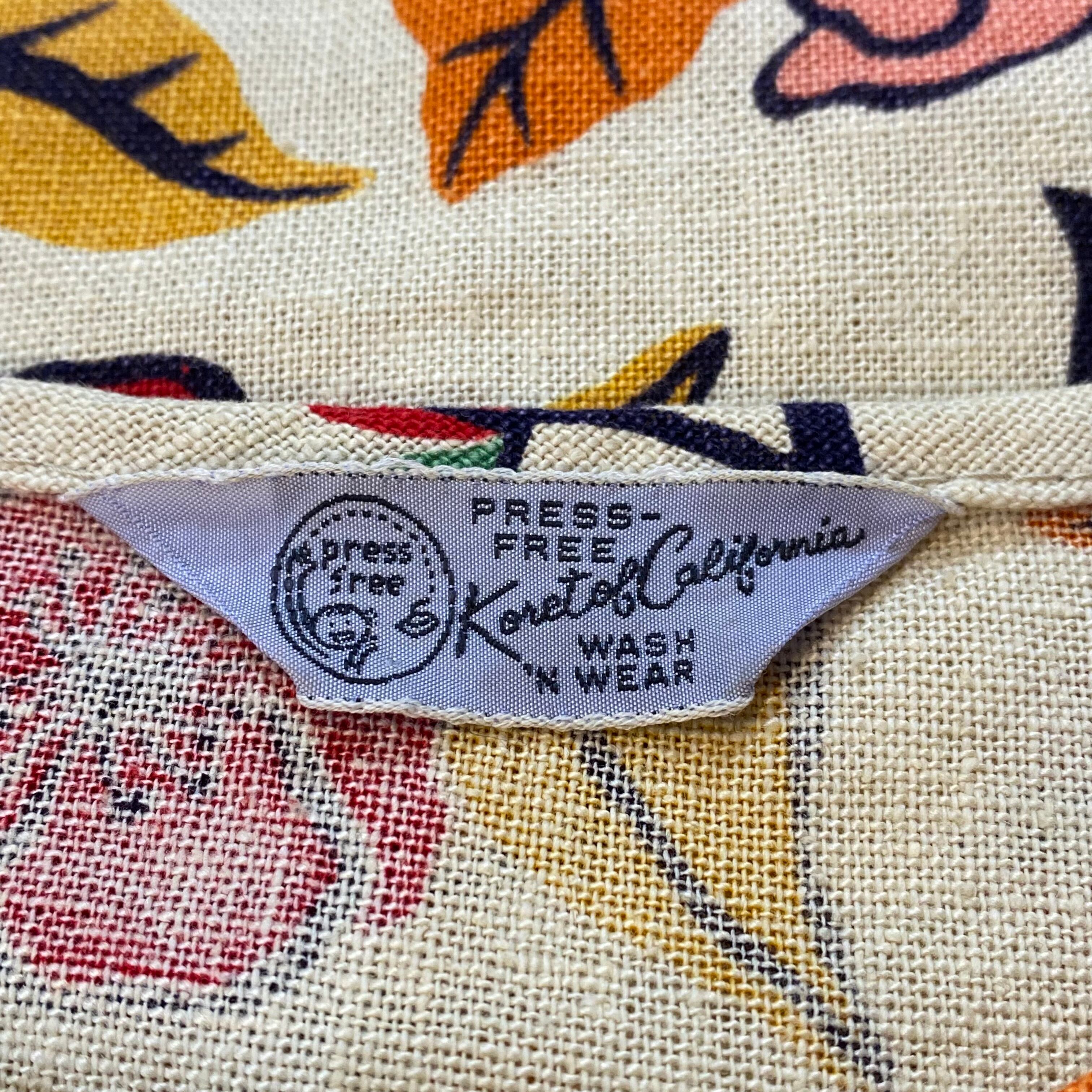 総柄ではありますが、質の良いリネン地にウッドボタンで大人っぽく着ていただけますよ。
