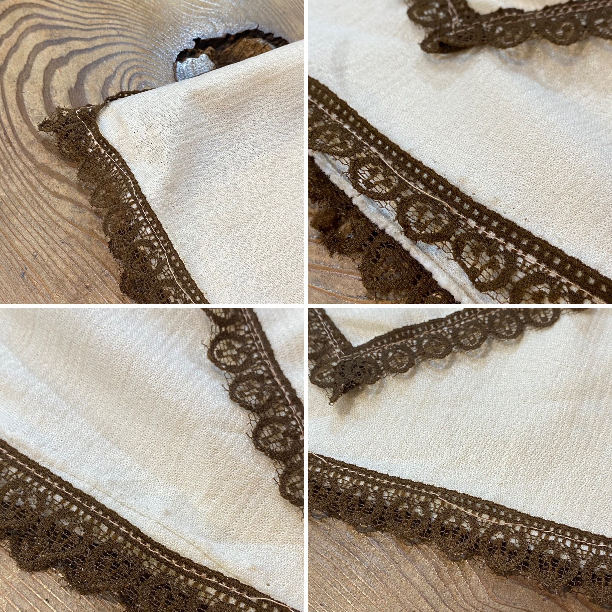 レースがたくさんあしらわれておりますが、ブラウンカラーで甘くなりすぎないですよ。