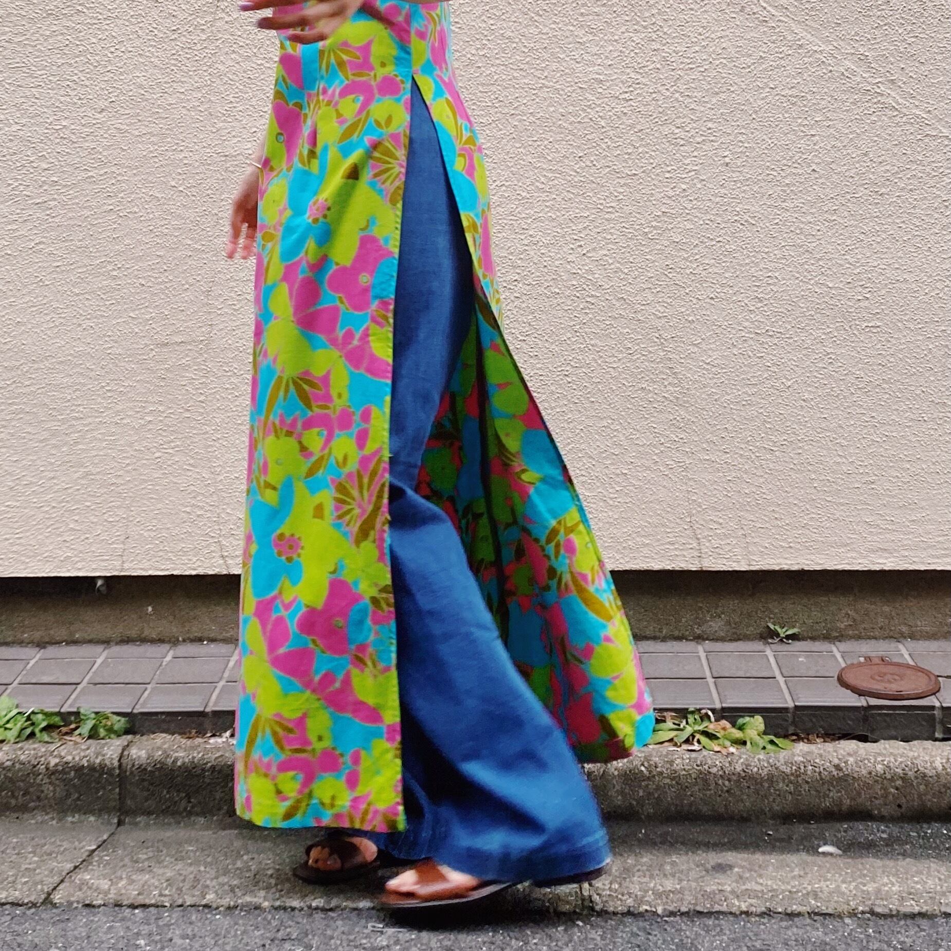 グリーンやピンク、ブルーの色合わせが可愛い、60年代の花柄ワンピースです。