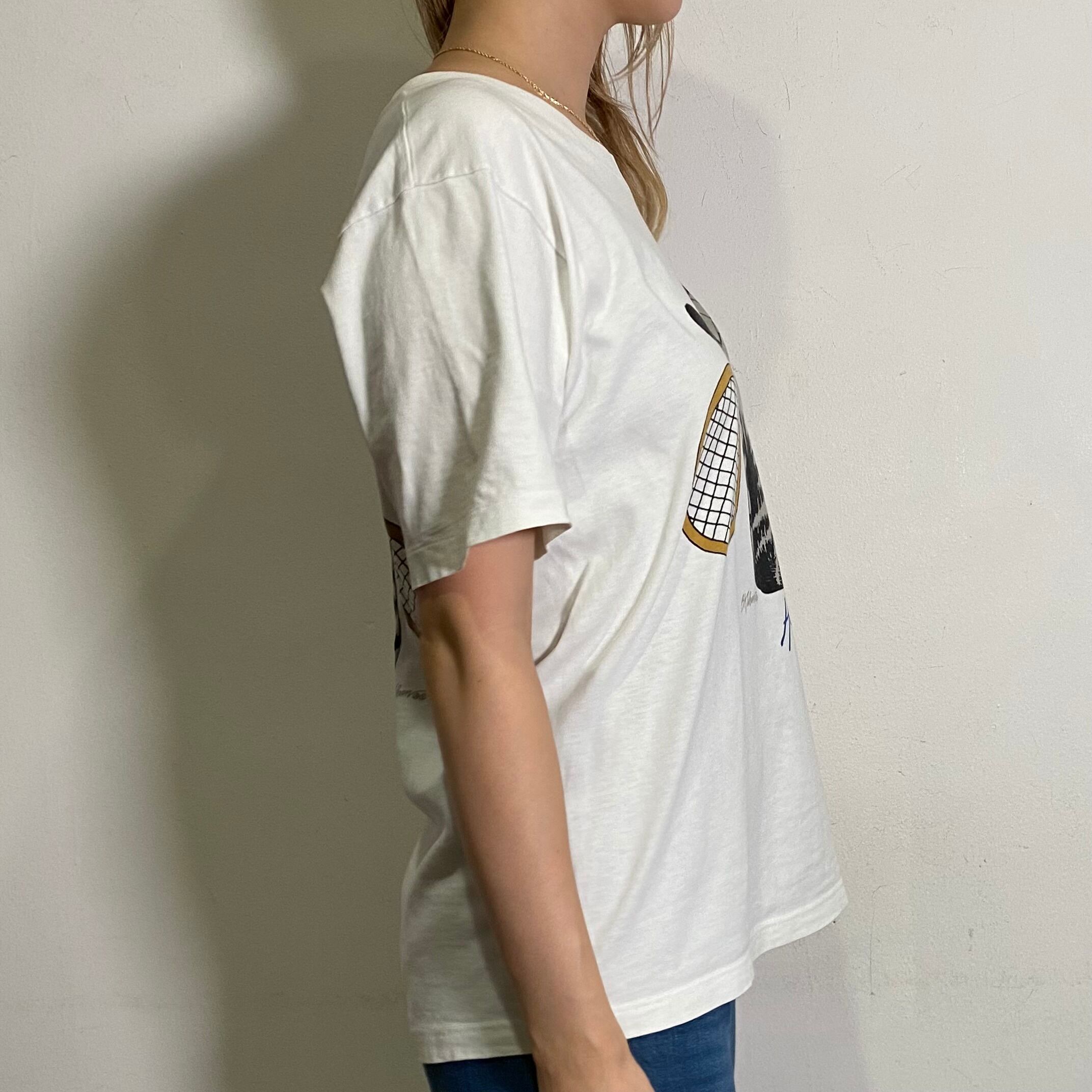 コットン100%のホワイトボディで、大変使い勝手の良い一枚ですよ。