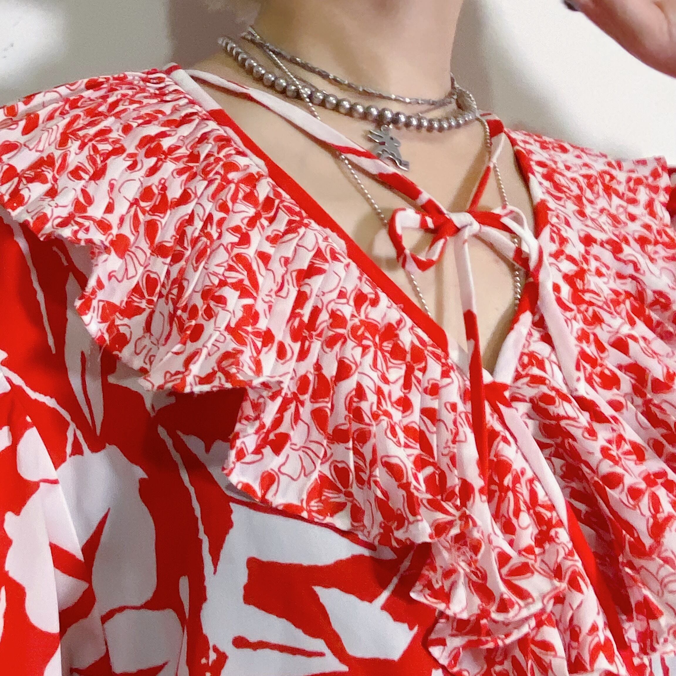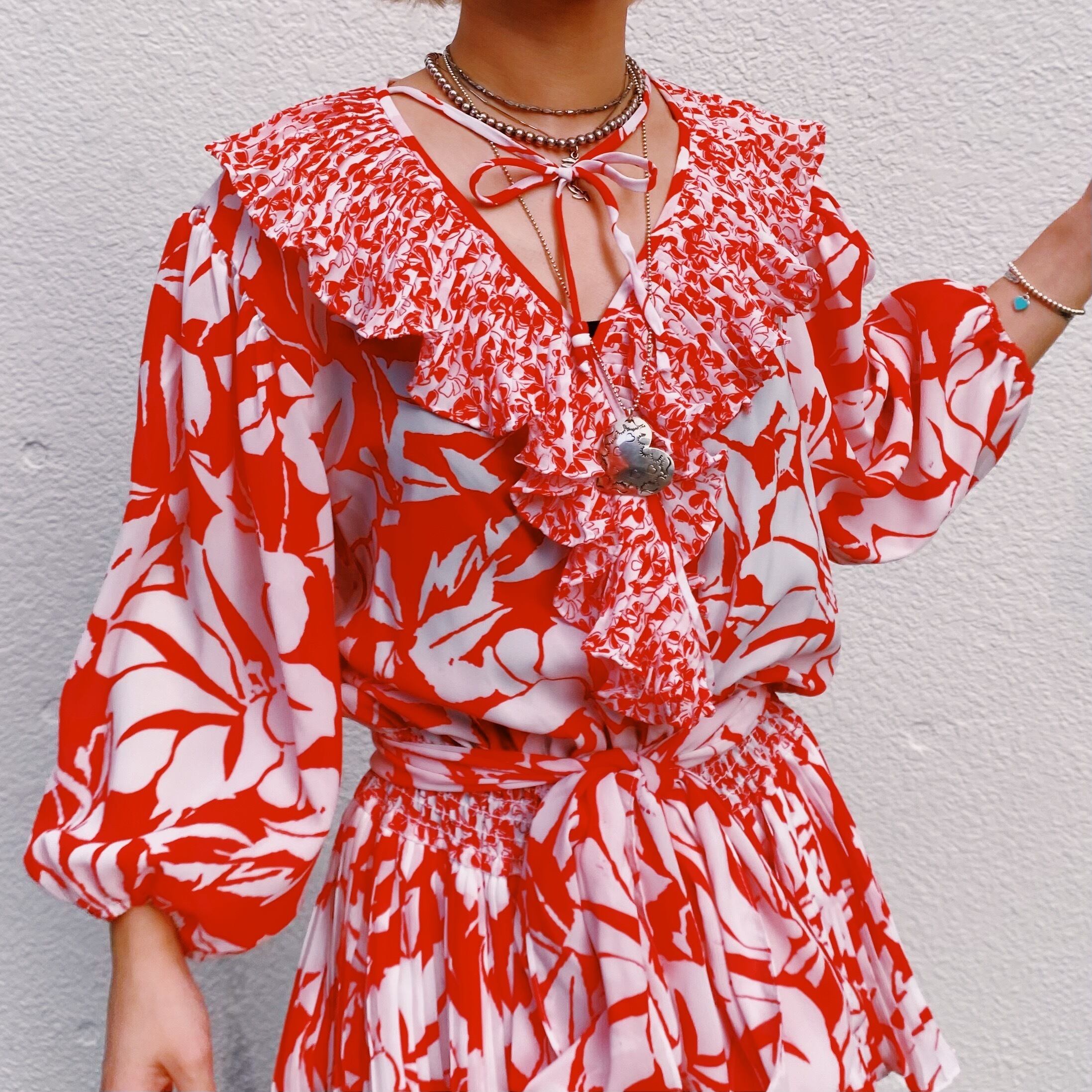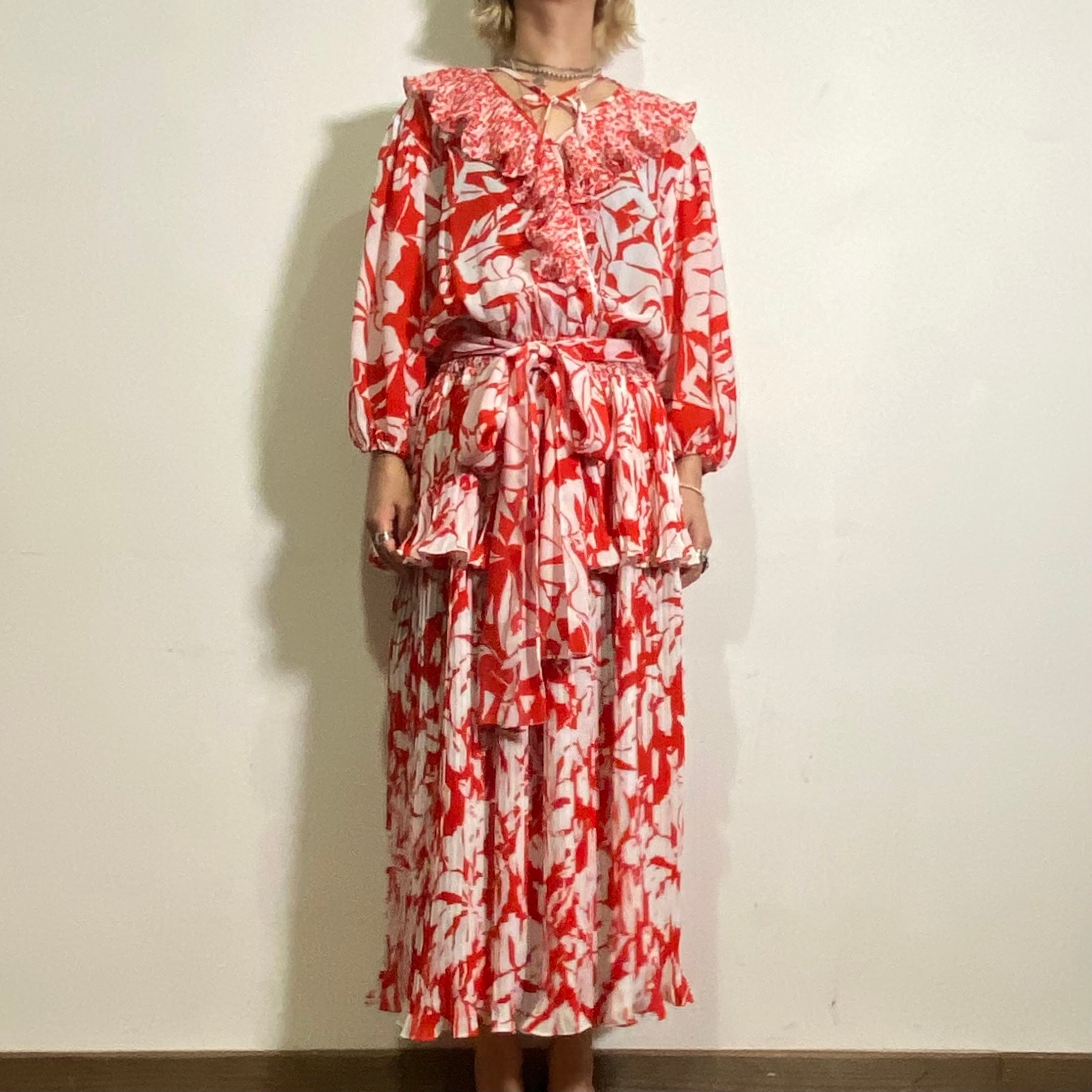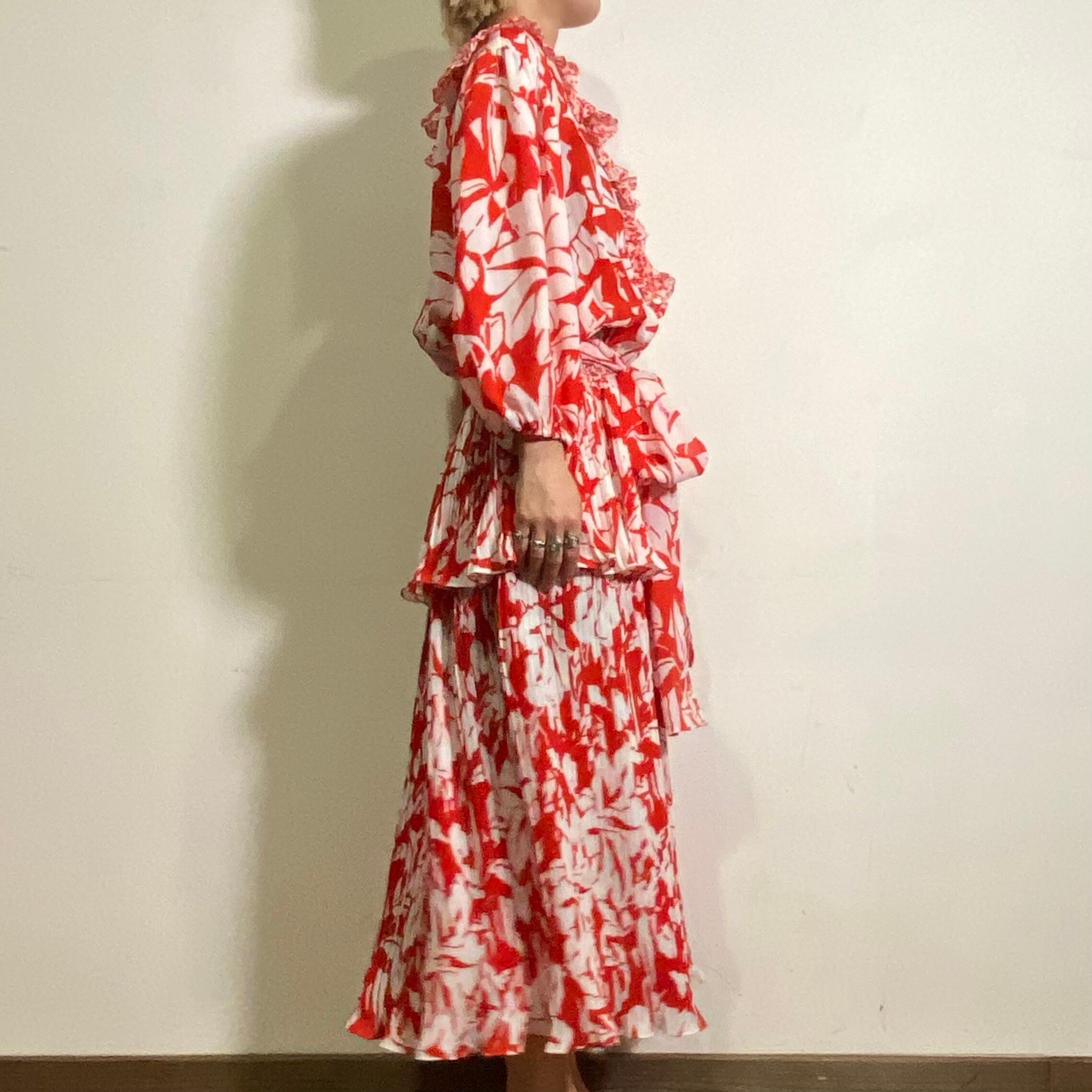 華やかな赤×白の組み合わせが可愛い、80年代の“Susan Freis”のワンピースです。