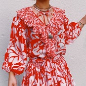 80s “Susan Freis” red and white botanical printed dress