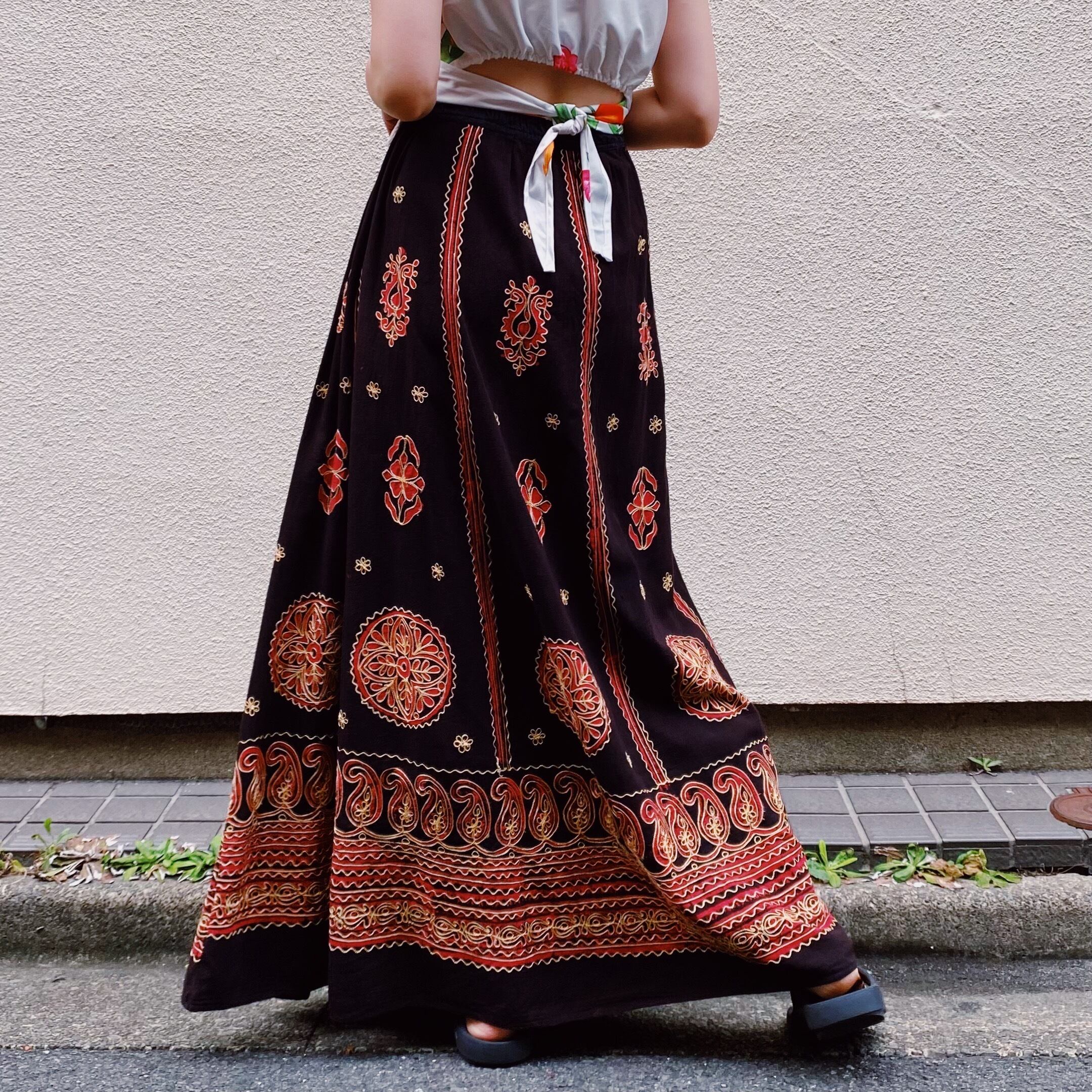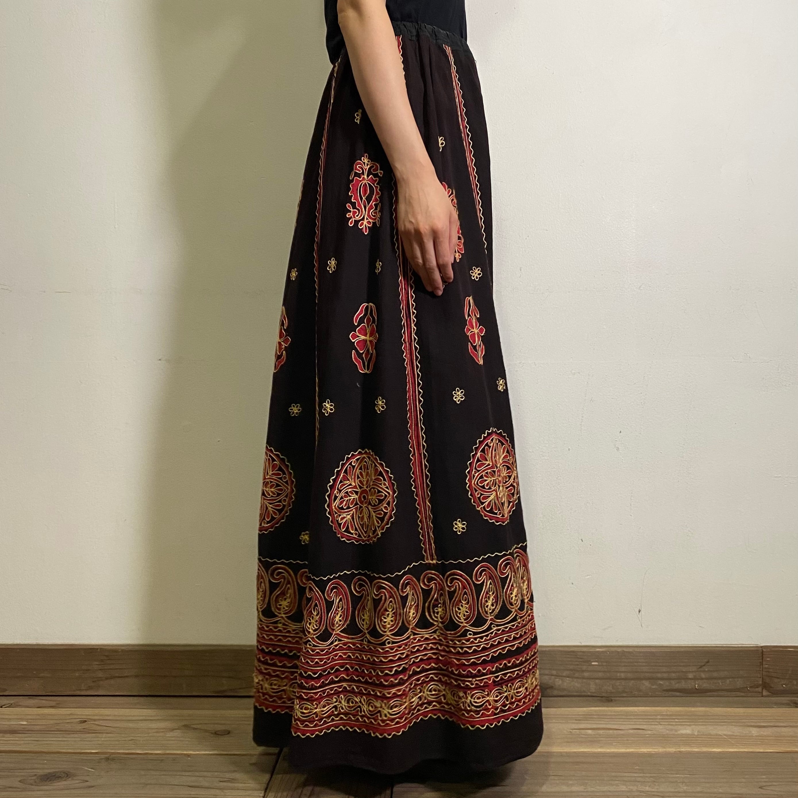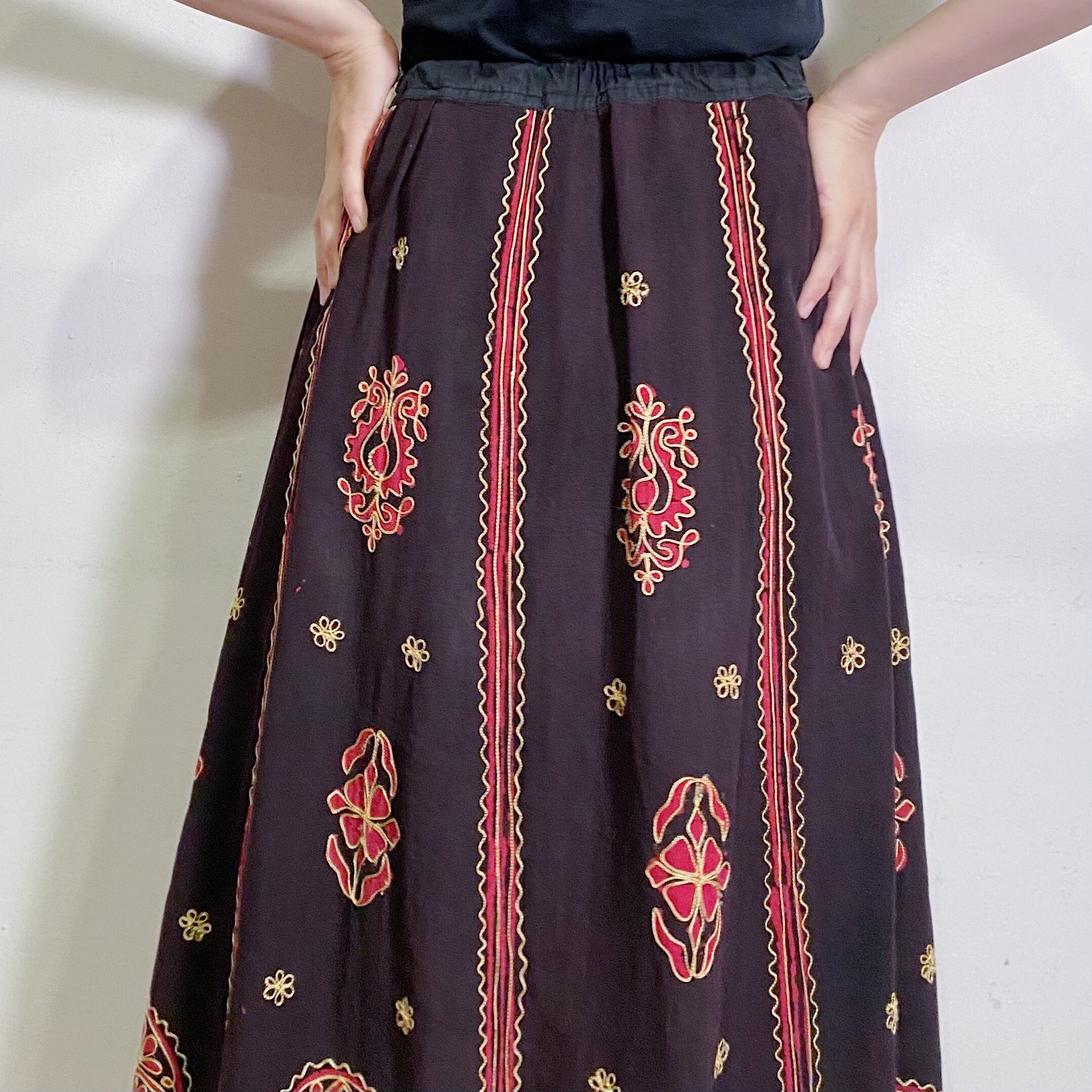 ブラックベースに刺繍が映える、スカートです。
