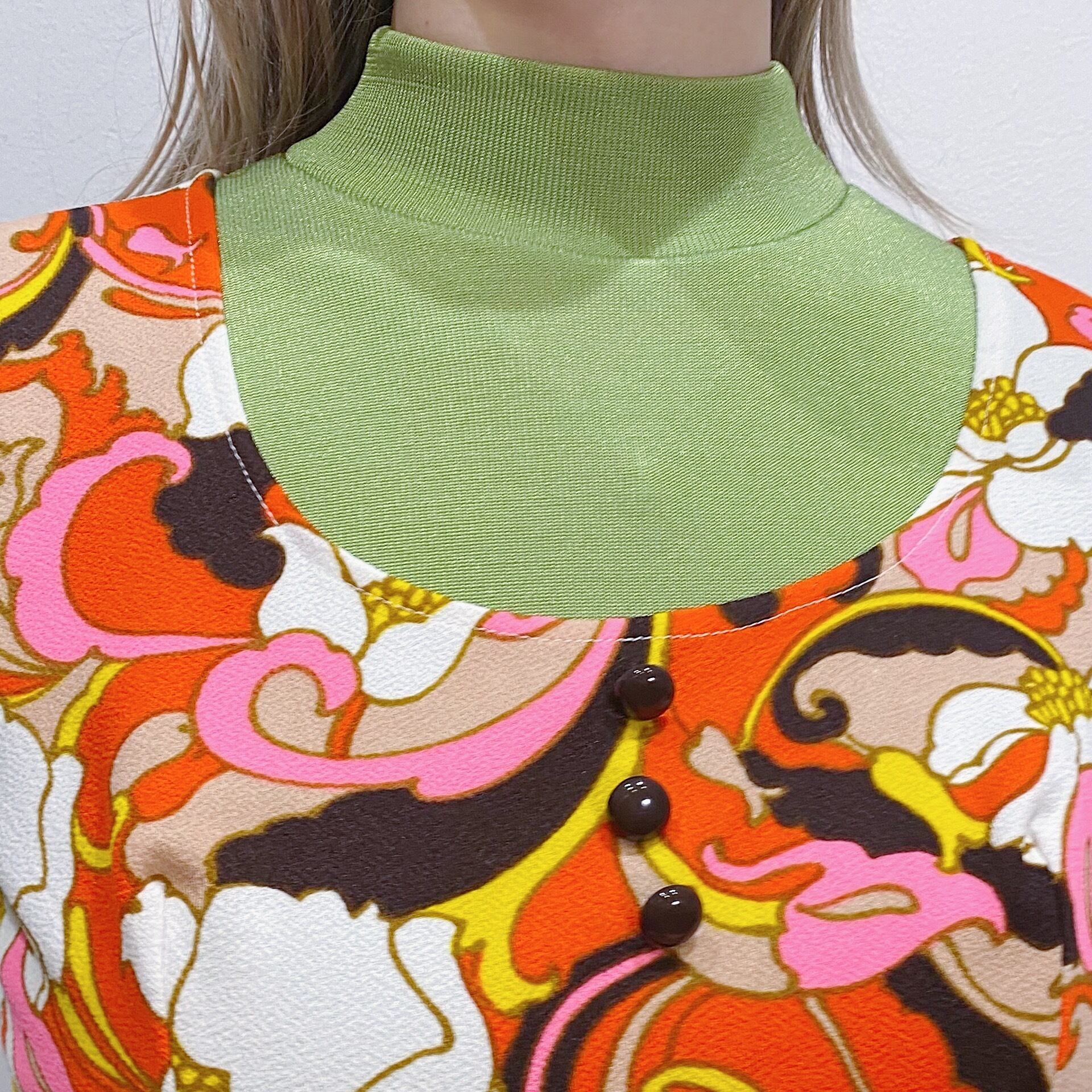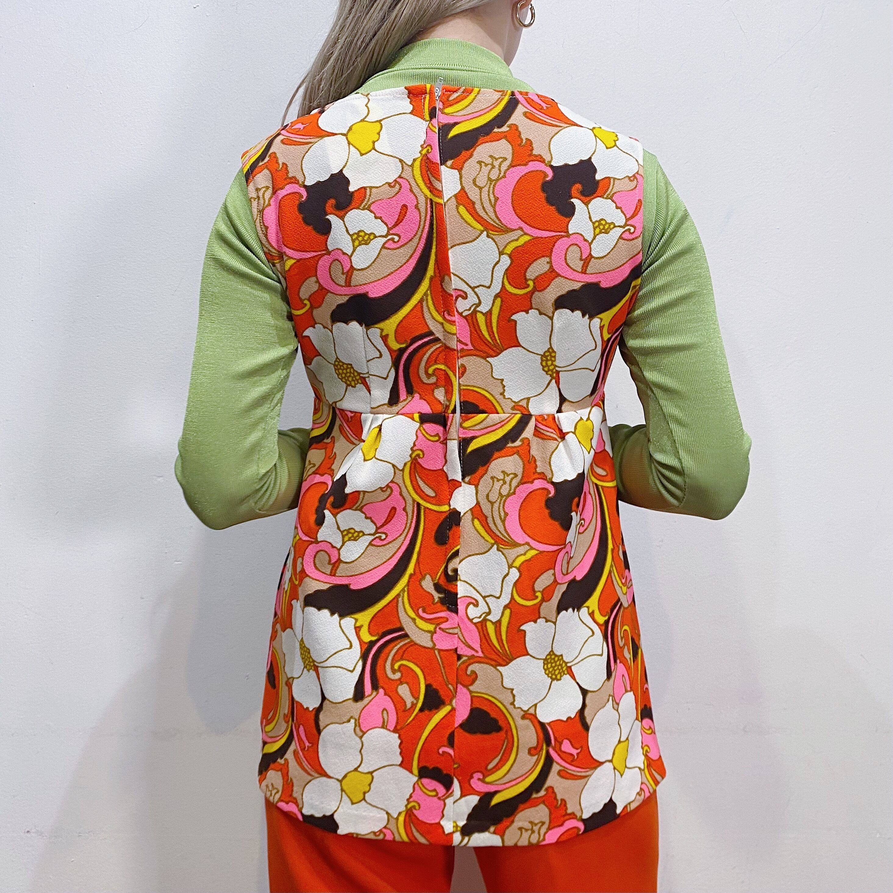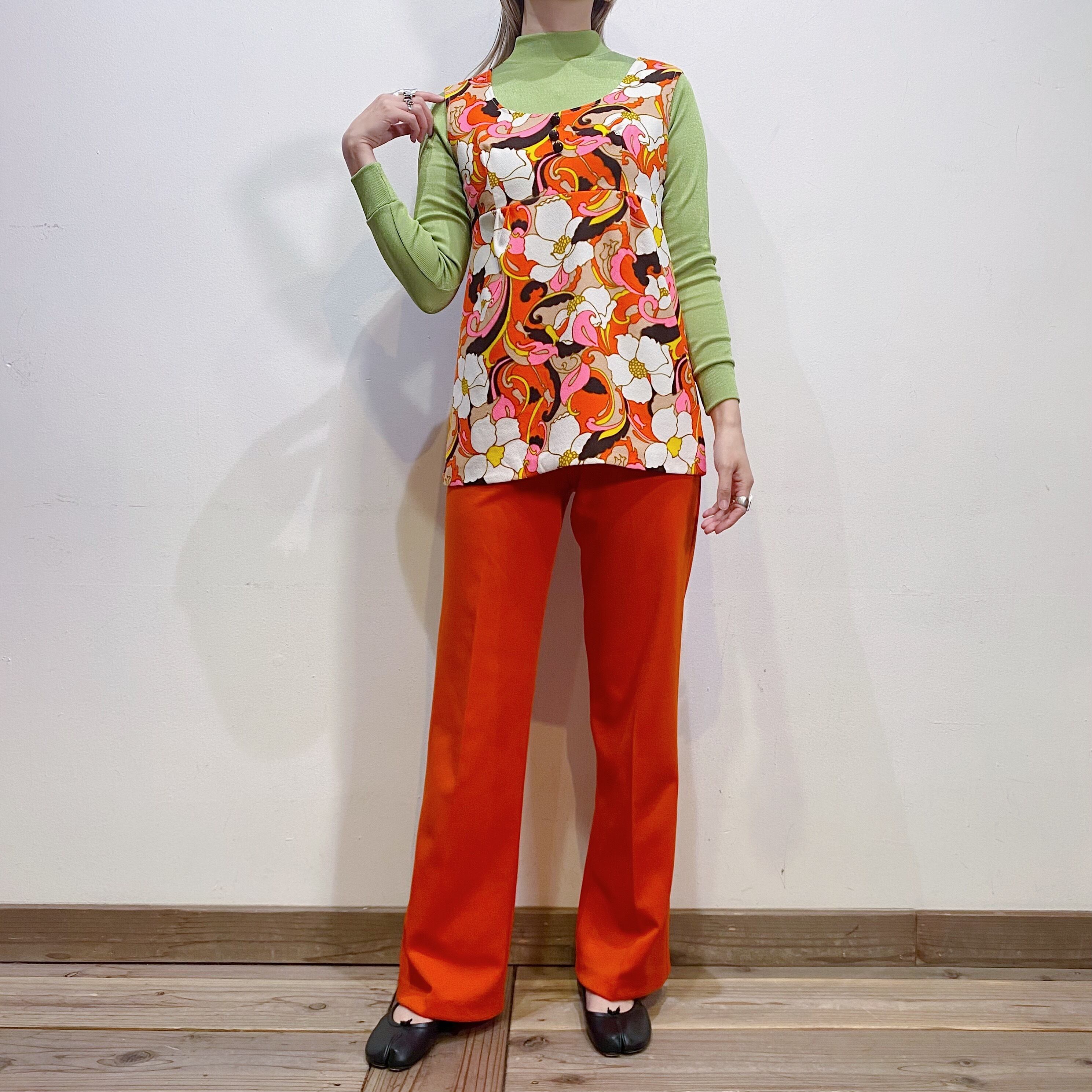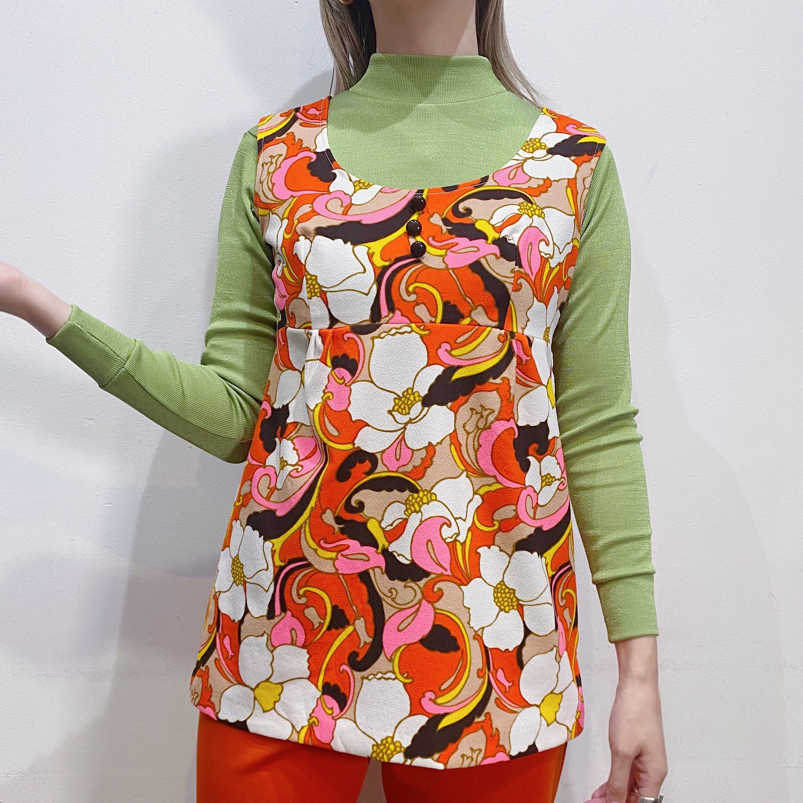 オレンジとピンクベースのプッチ風な柄がとっても可愛い、70年代のベストです。