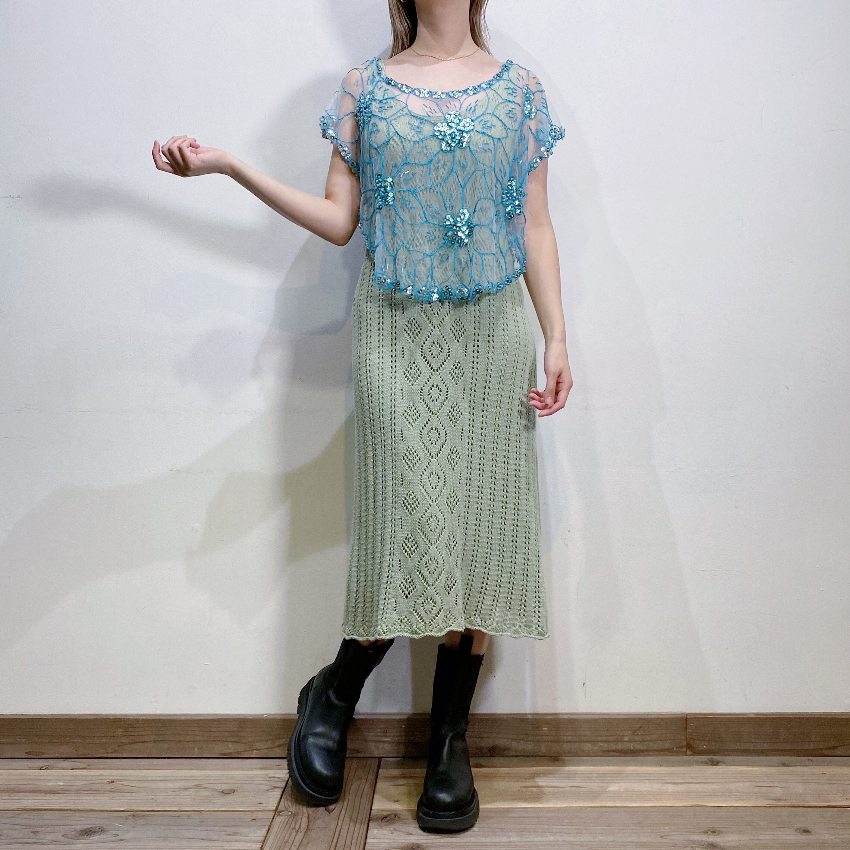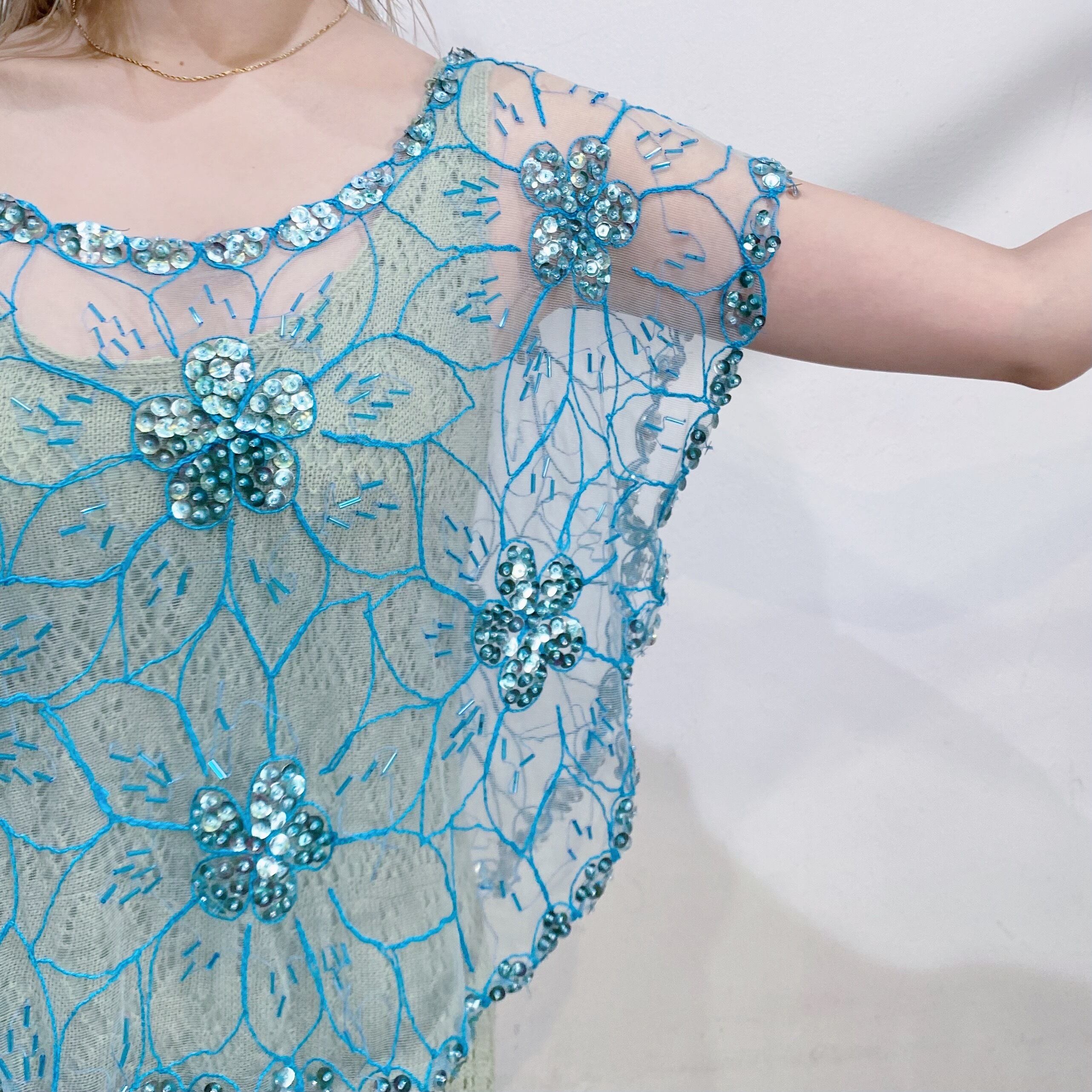 お花の刺繍にビーズとスパンコールの装飾が可愛い、トップスです。