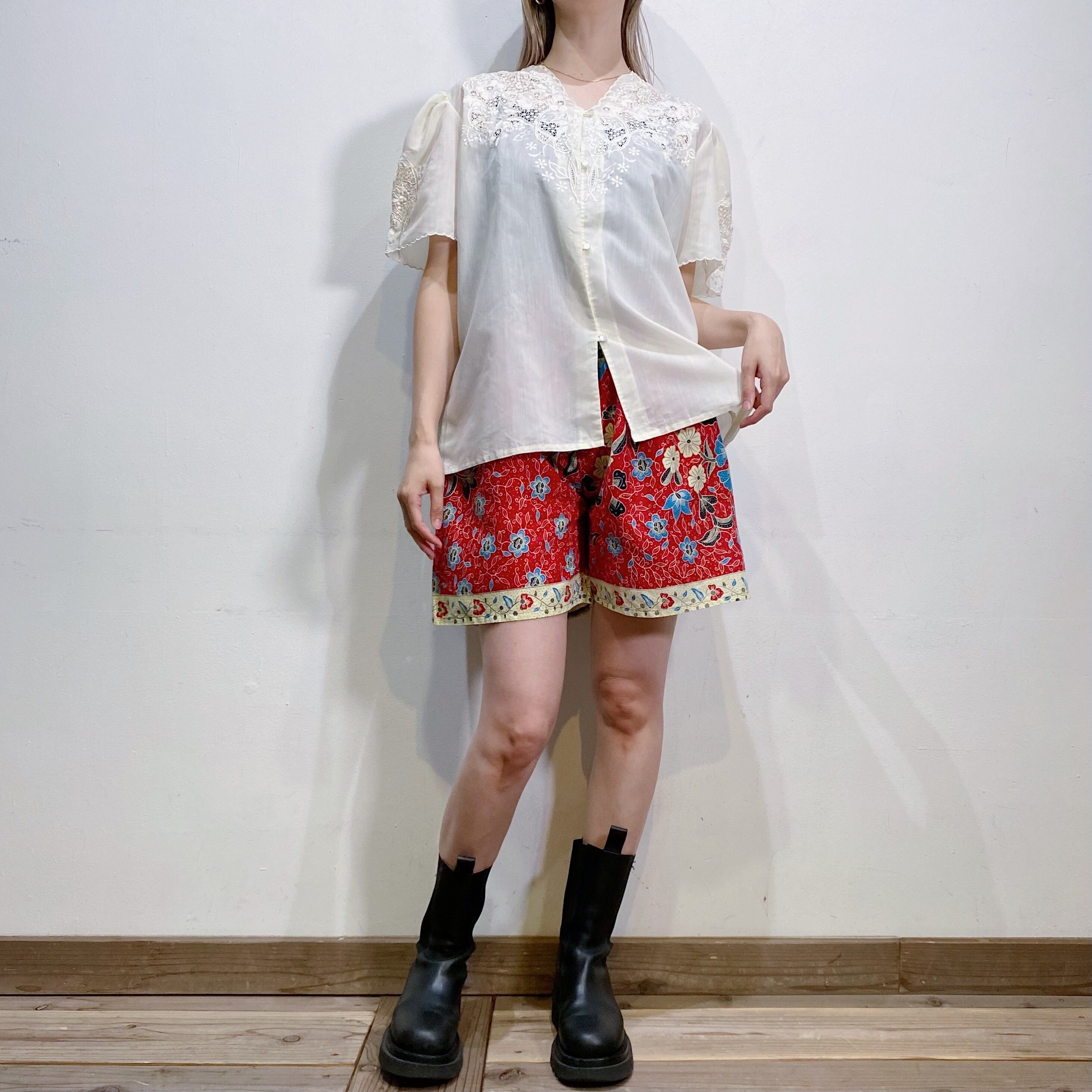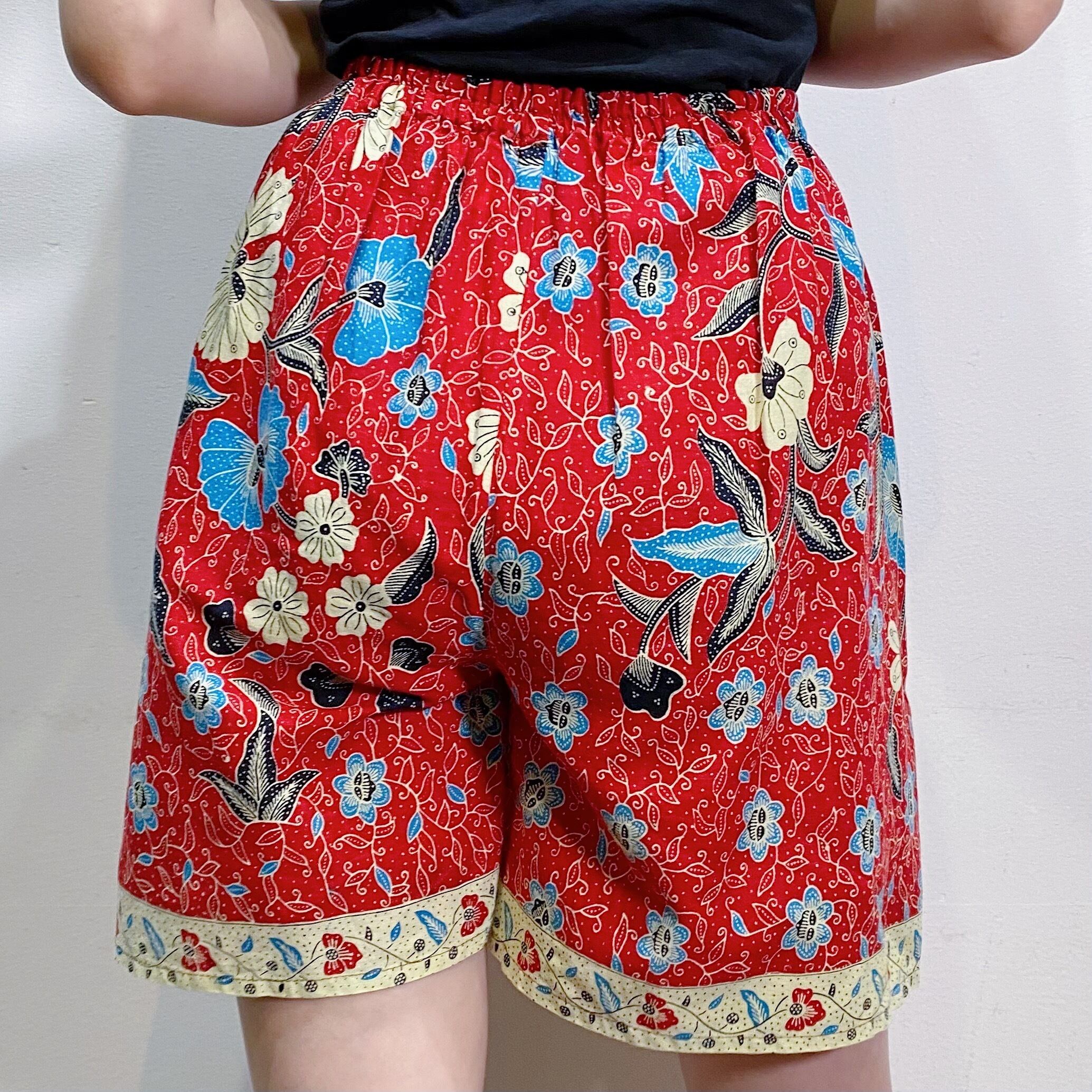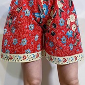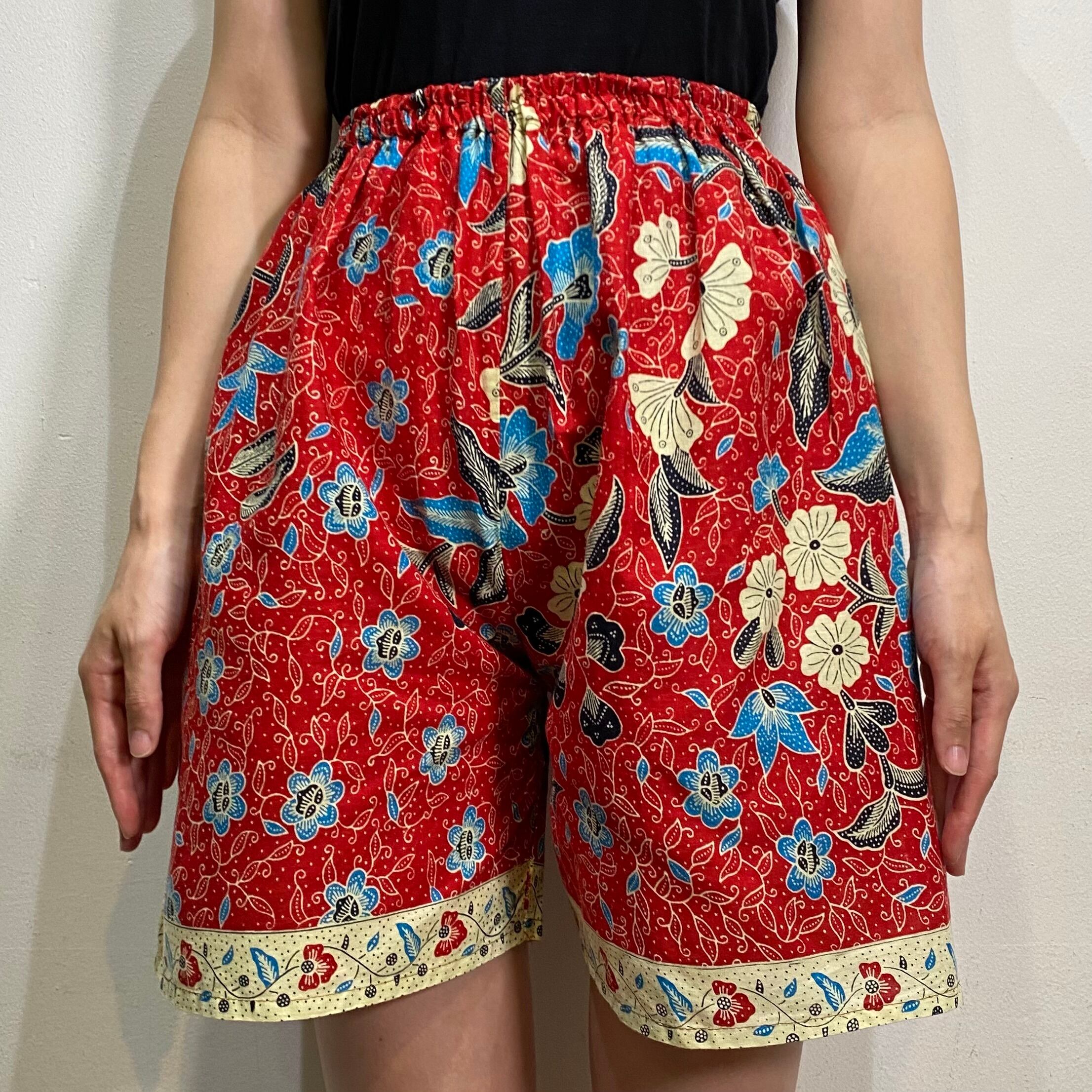 レッドベースにエキゾチックな花柄が可愛い、ショートパンツです。