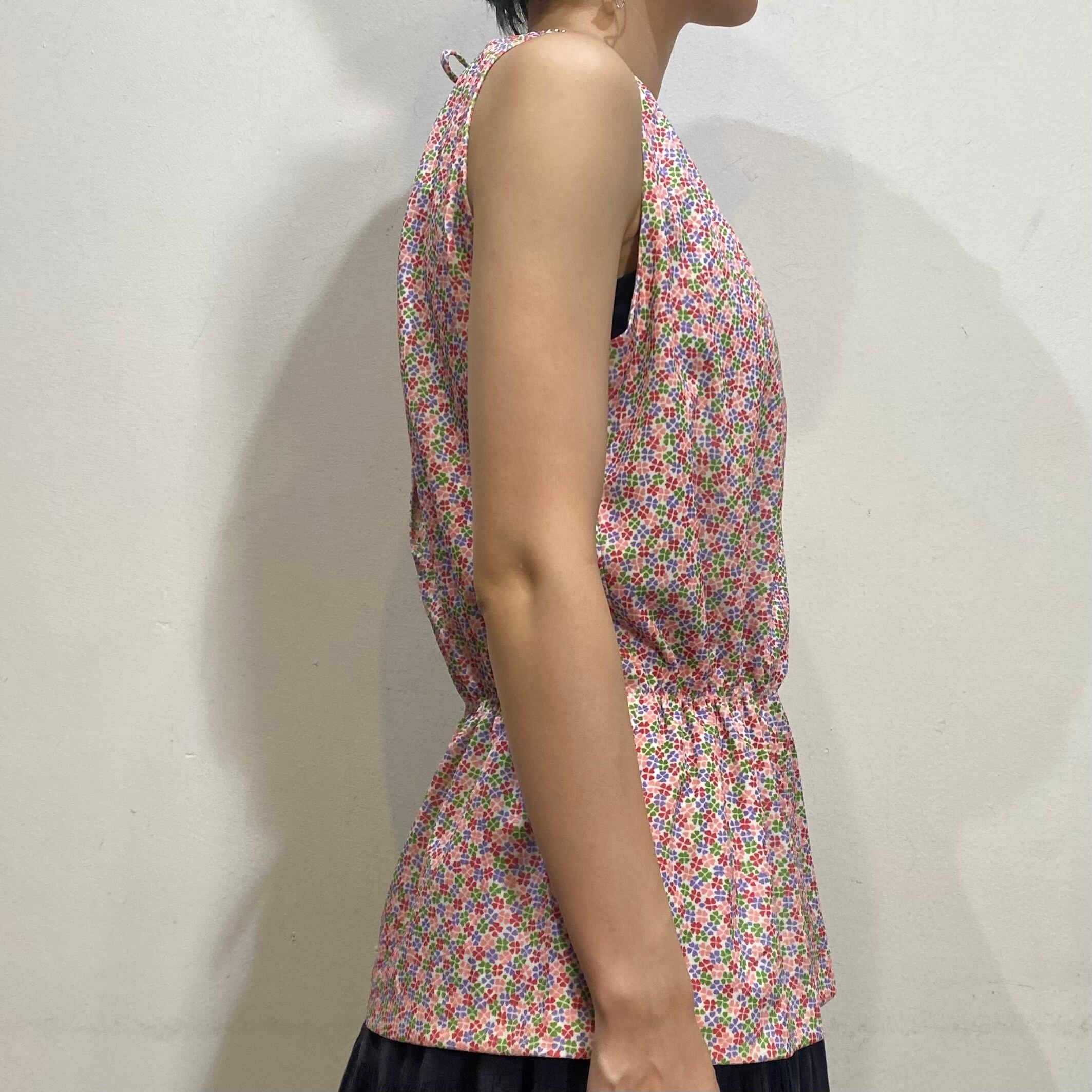 ピンクやグリーン、パープルなどの小花柄が可愛い、70年代のトップスです。