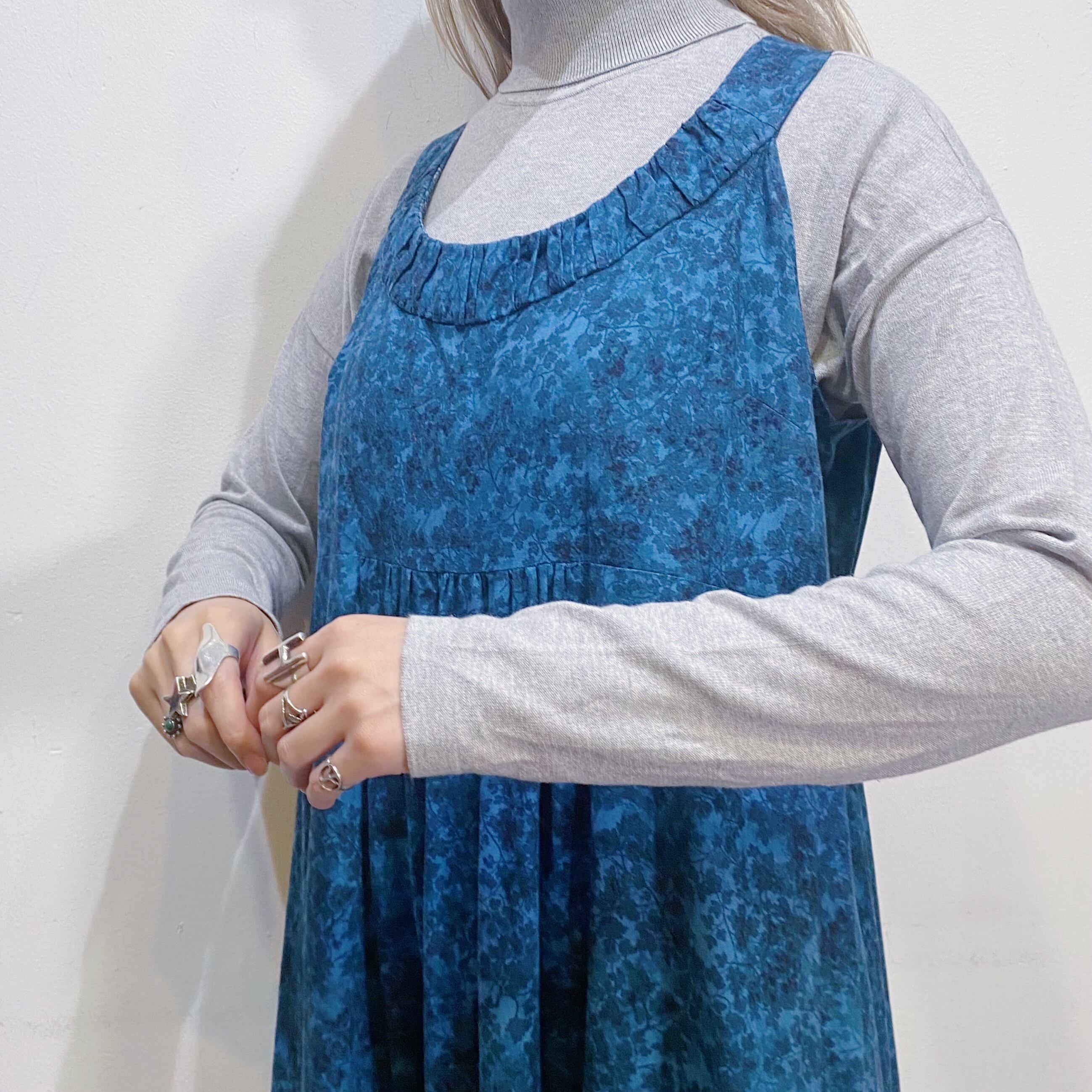 ネイビーカラーで落ち着いた雰囲気の花柄が可愛い、ノースリーブワンピースです。
