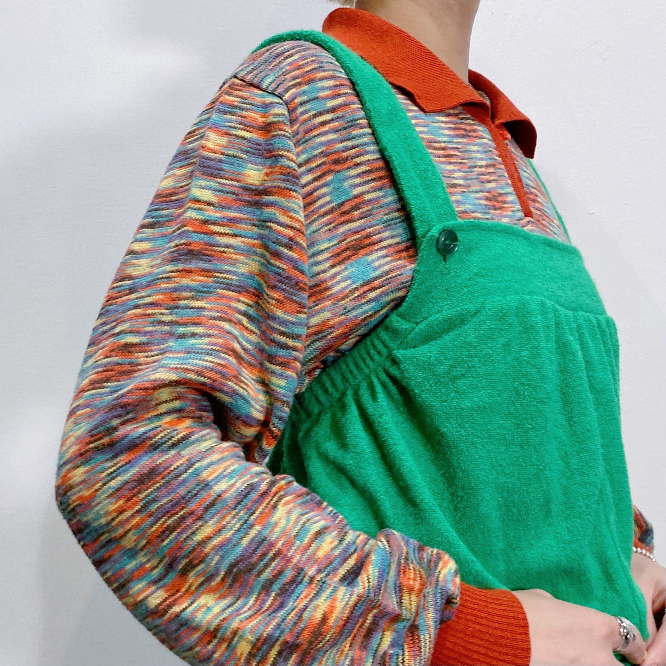 グリーンの色合いが可愛い、70sのショート丈のジャンプスーツです。