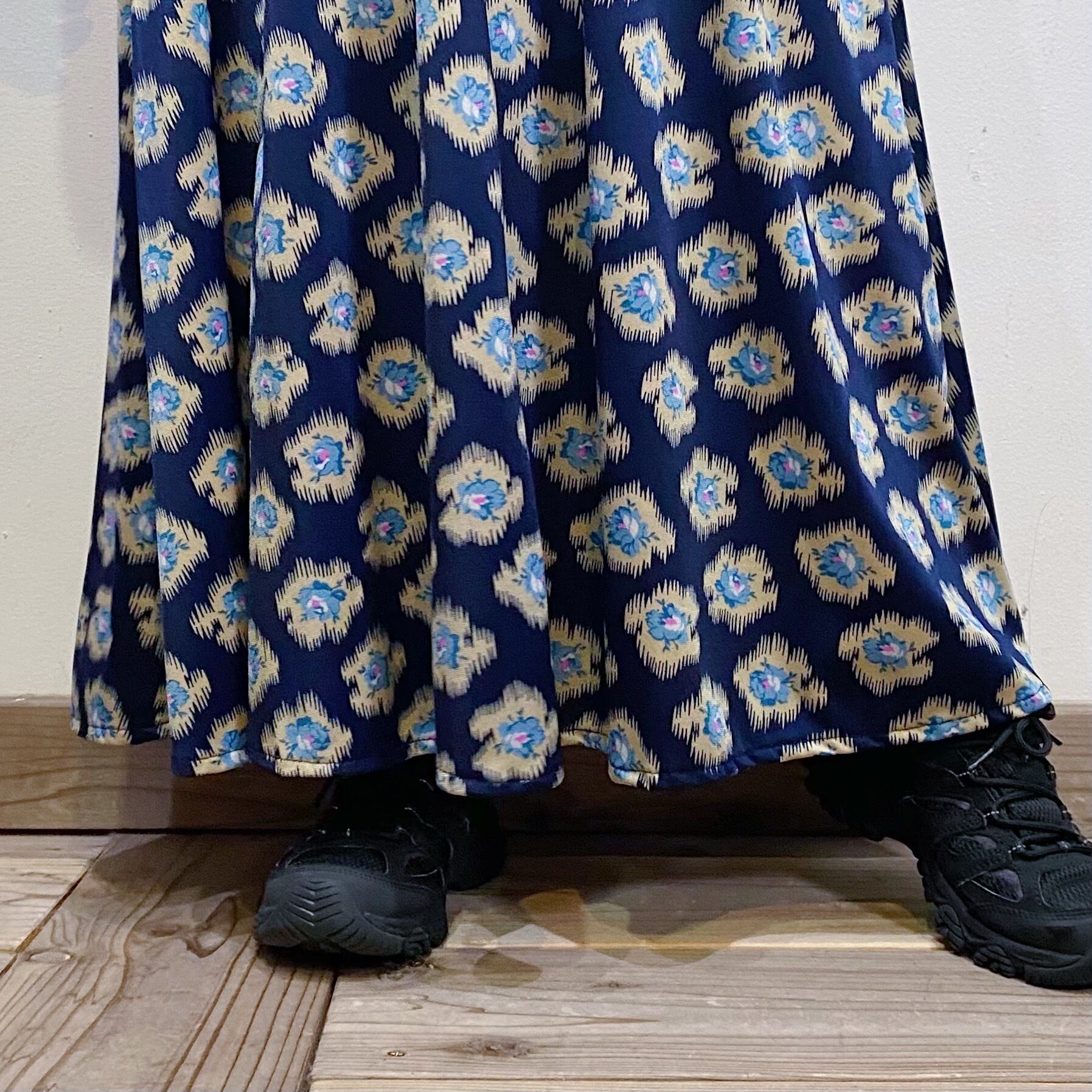ネイビーベースに水色の花柄が可愛い、70年代のノースリーブワンピースです。