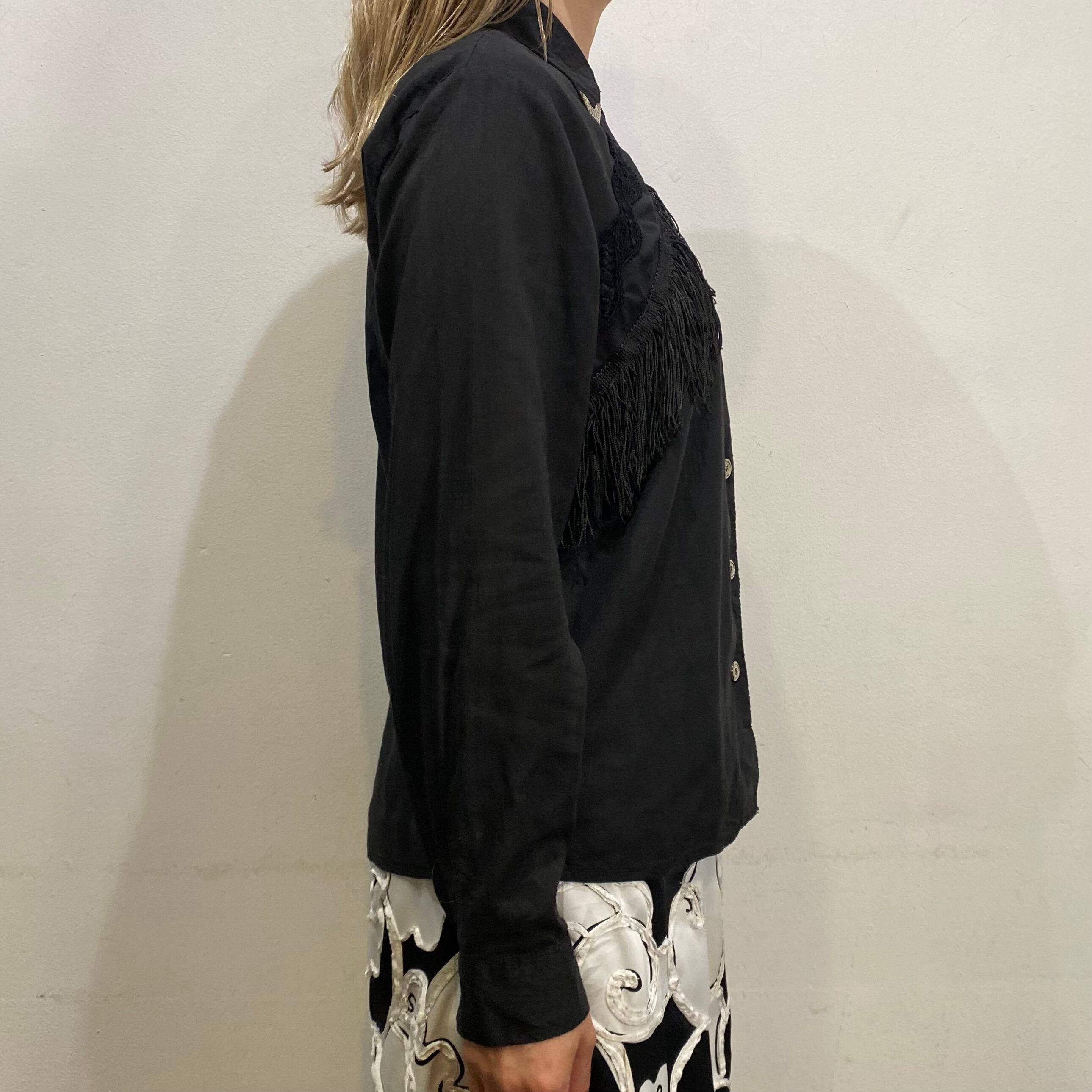 デザイン性は高いですが、ブラックカラーで着こなしやすく、モードな印象もあります。