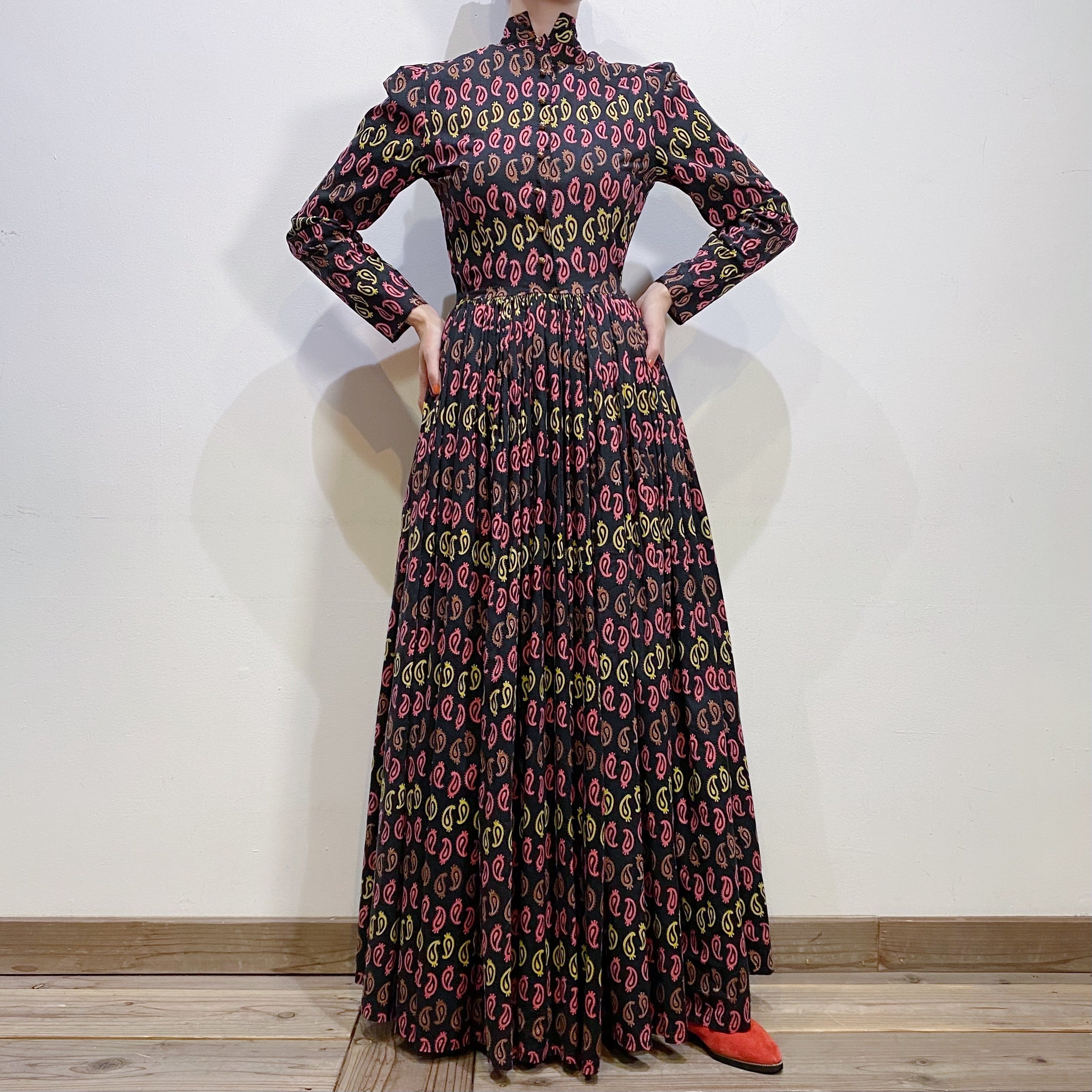ブラックベースにペイズリー柄が可愛い、50年代のワンピースです。