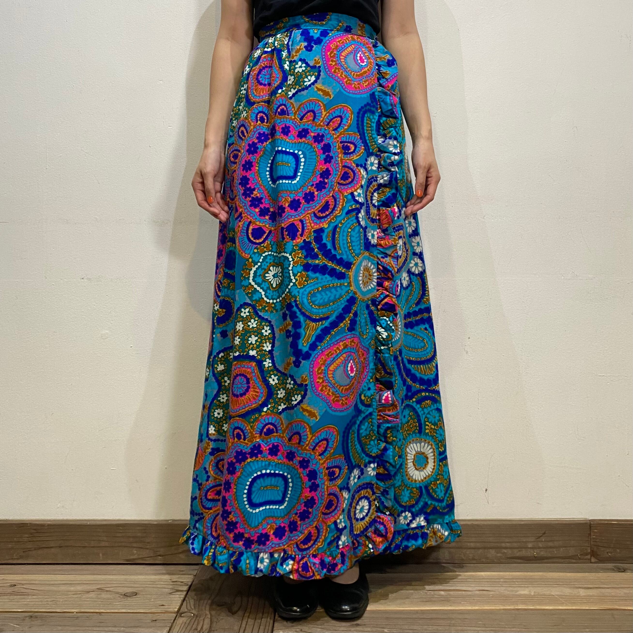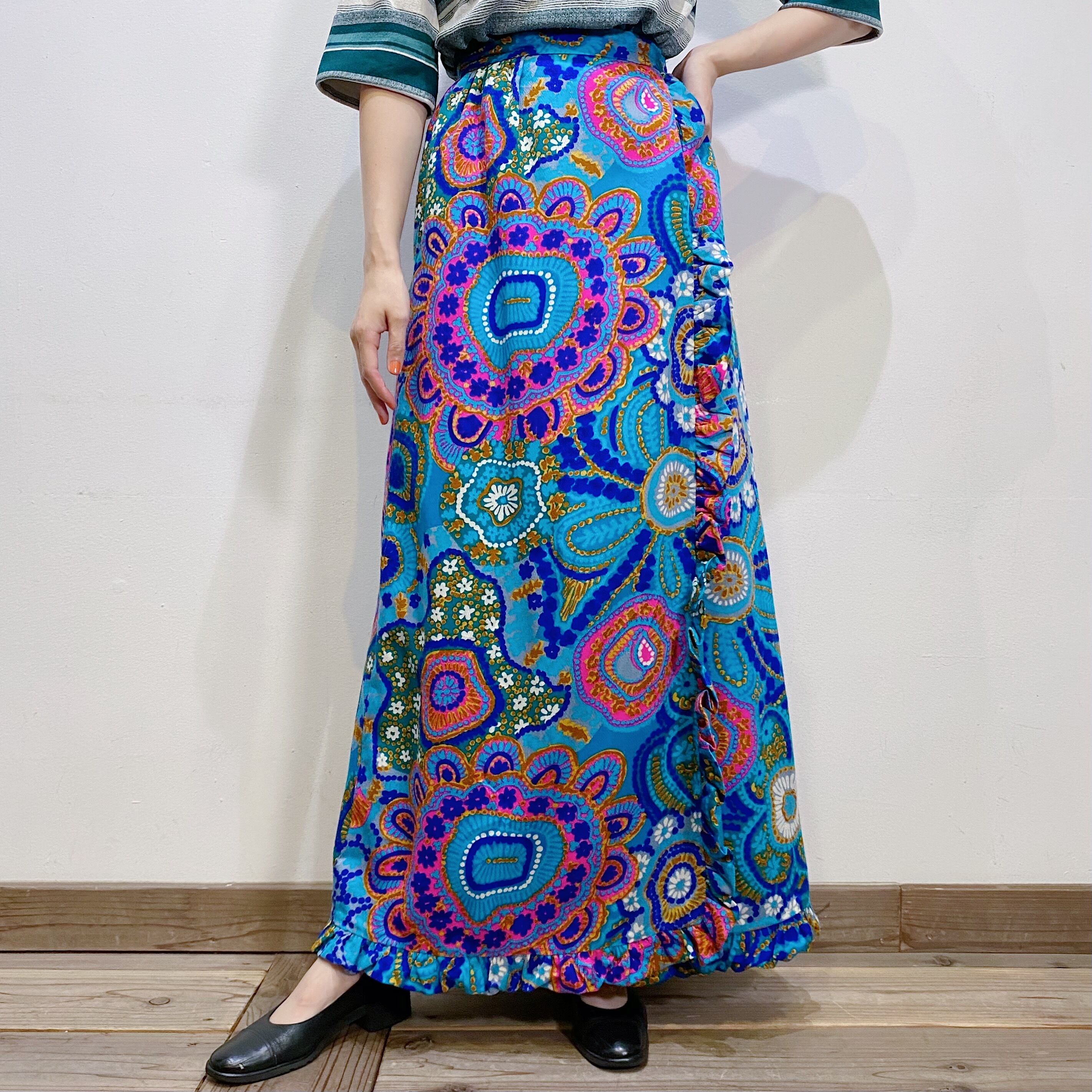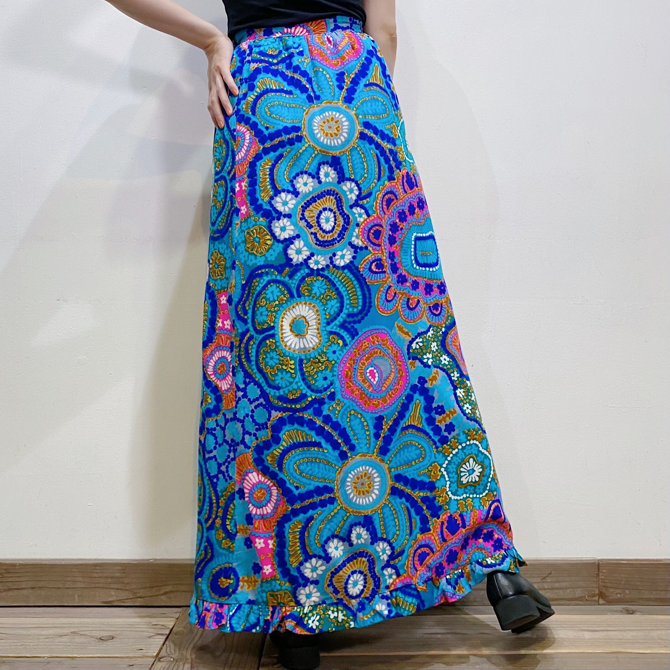 ブルーベースの花柄が可愛い、60~70年代のスカートです。