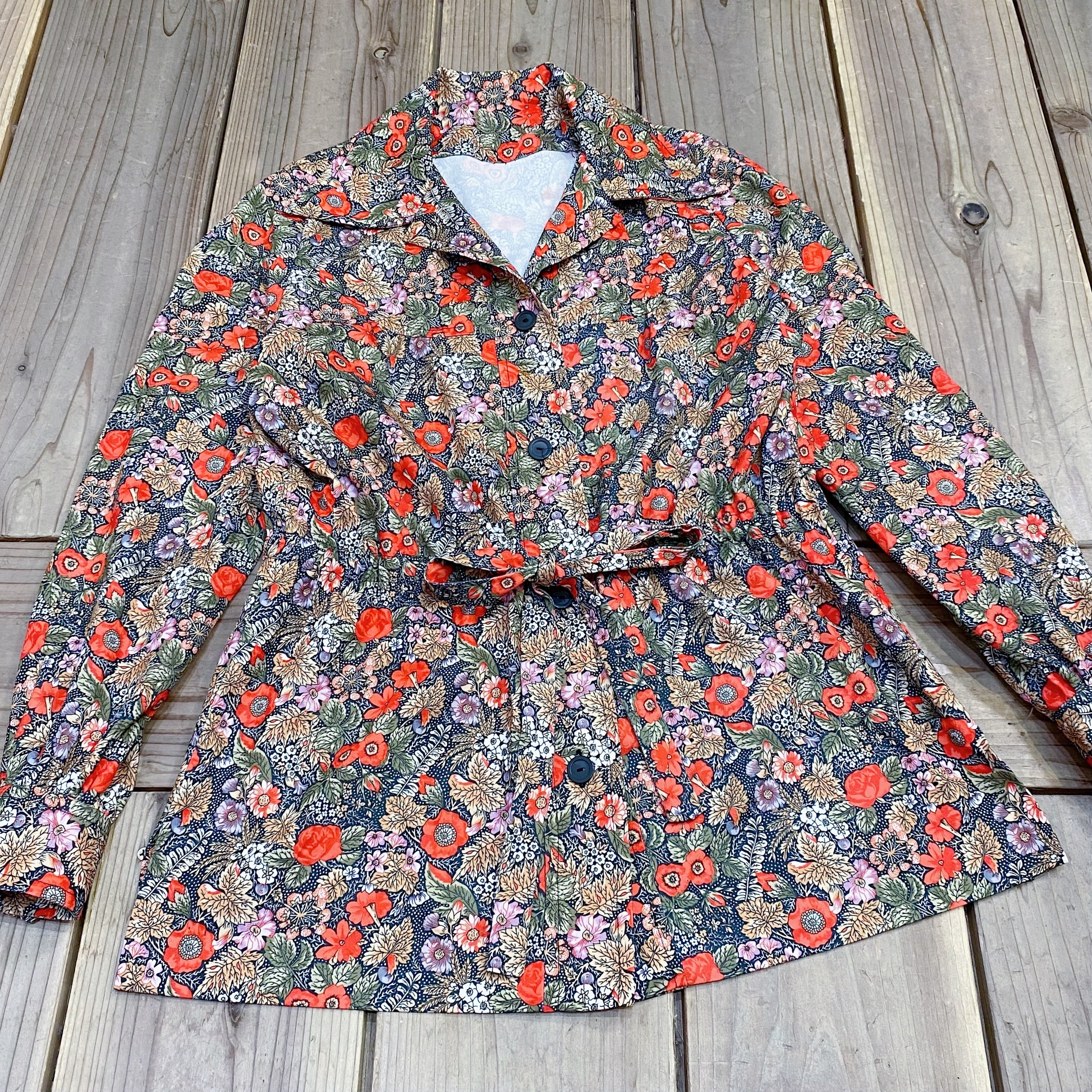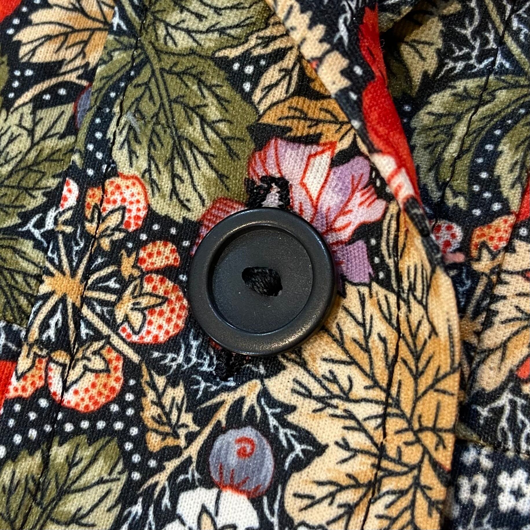 70s black and red flower printed long sleeve shirt