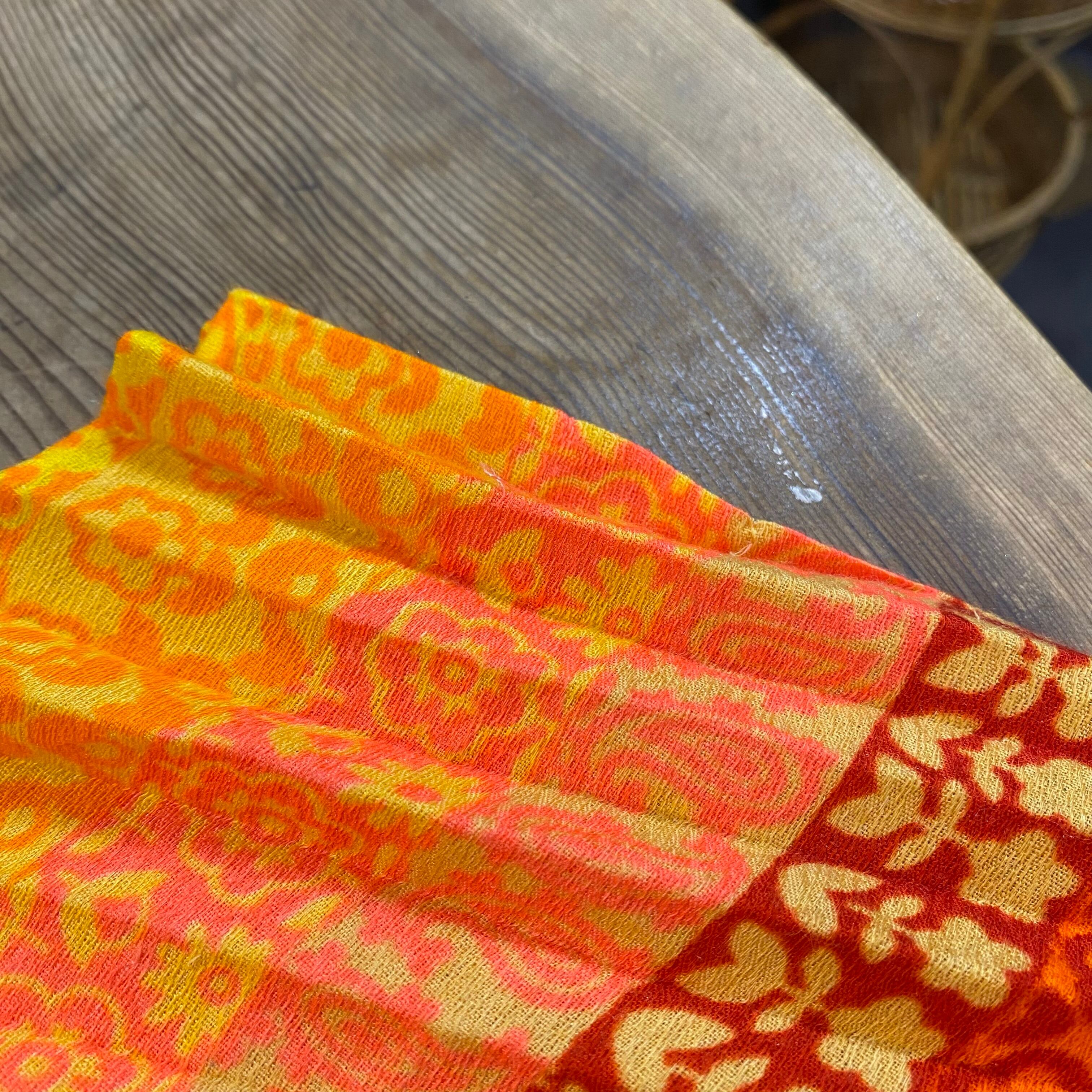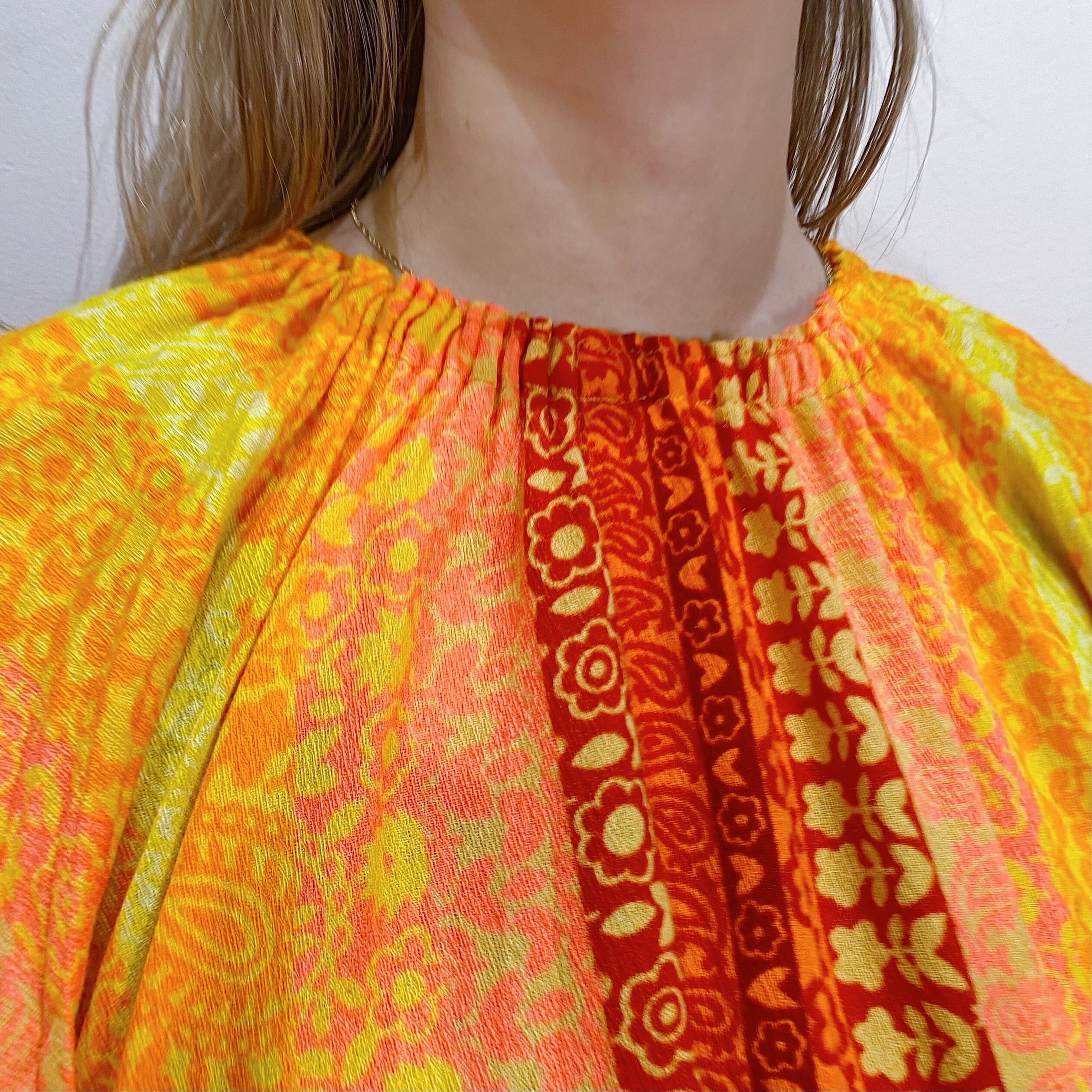オレンジやイエローのハッピーな色合いが可愛い、70年代のチュニックです。
