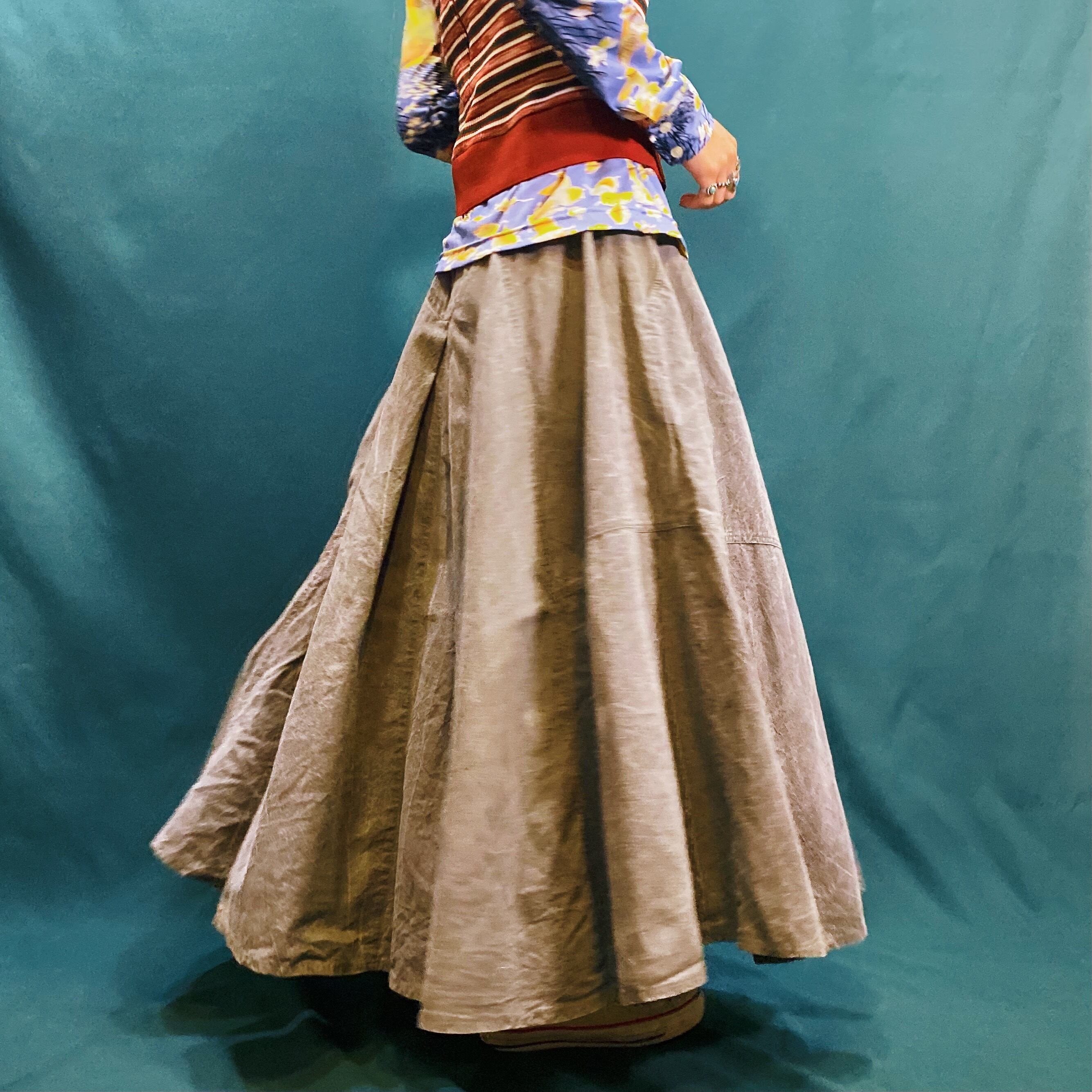 たっぷりの生地を用いて作られており、ボリュームのある綺麗なAラインシルエットが魅力の一枚。