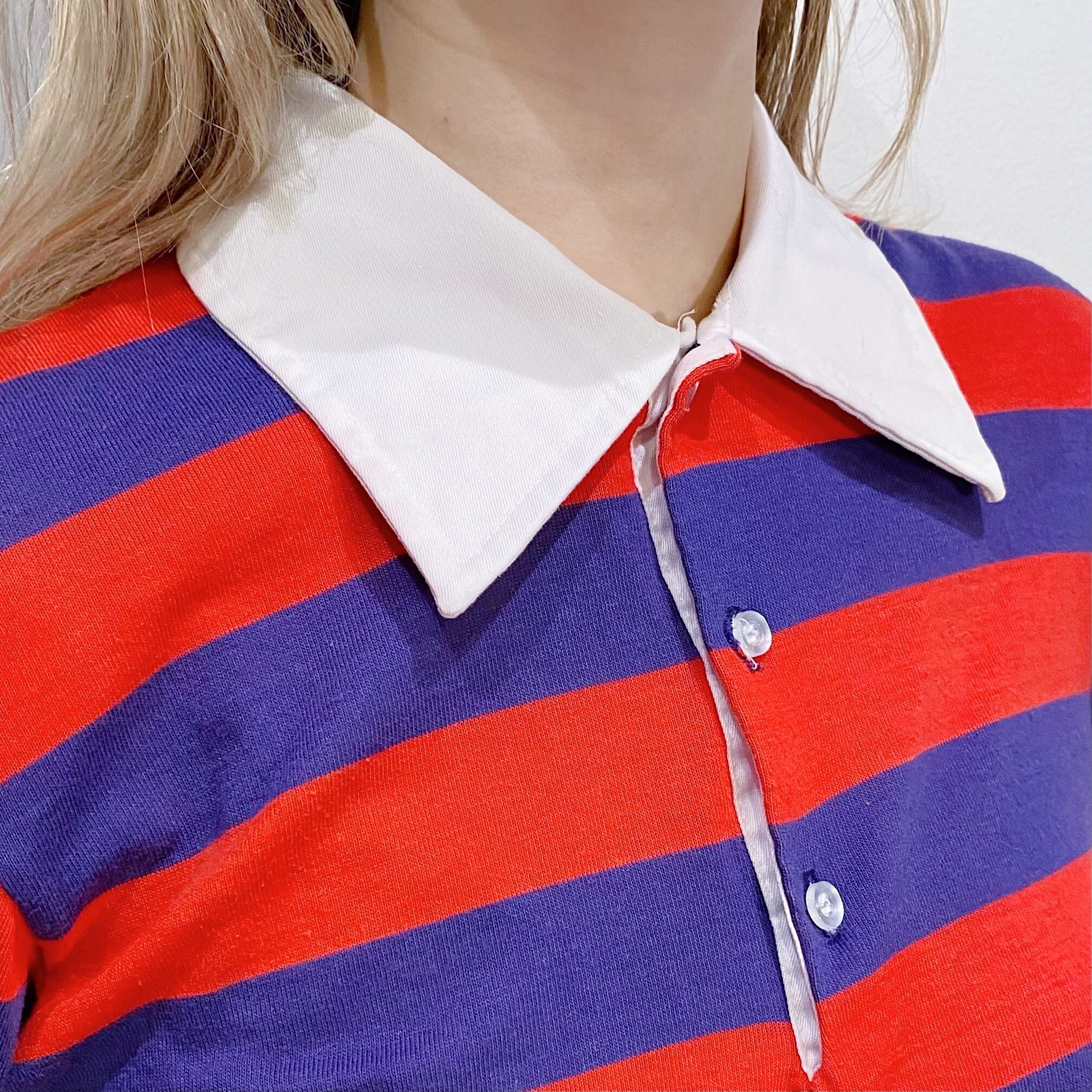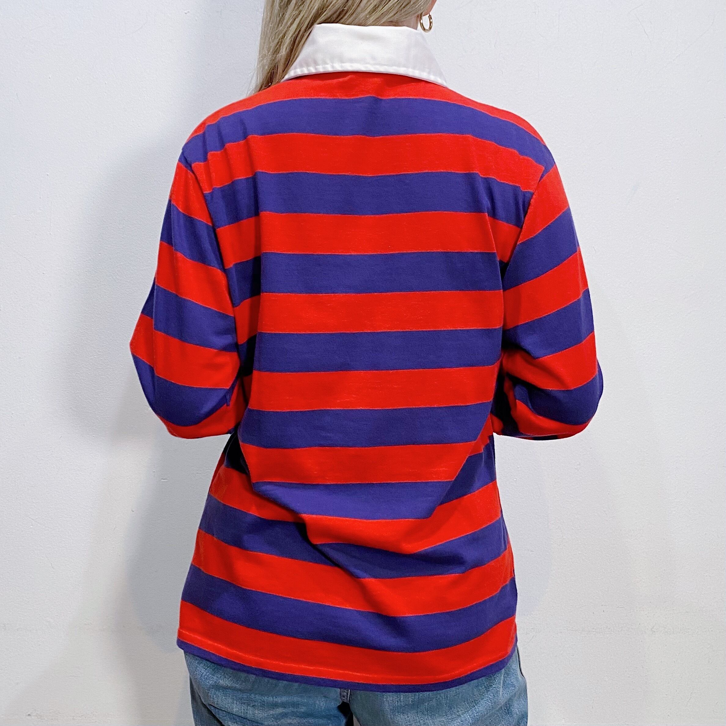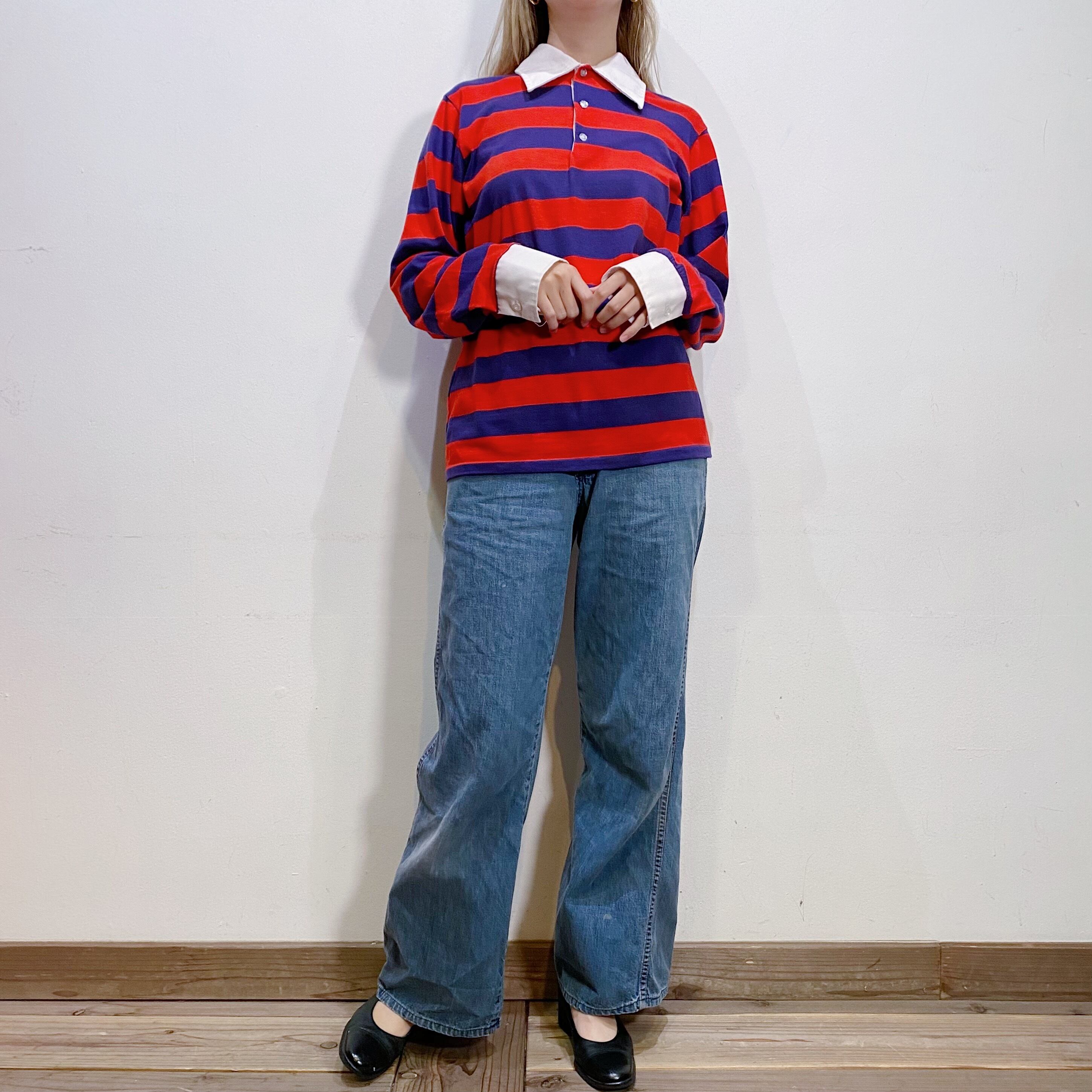 レッド×ネイビーの太めボーダーが可愛い、80年代の長袖シャツです、