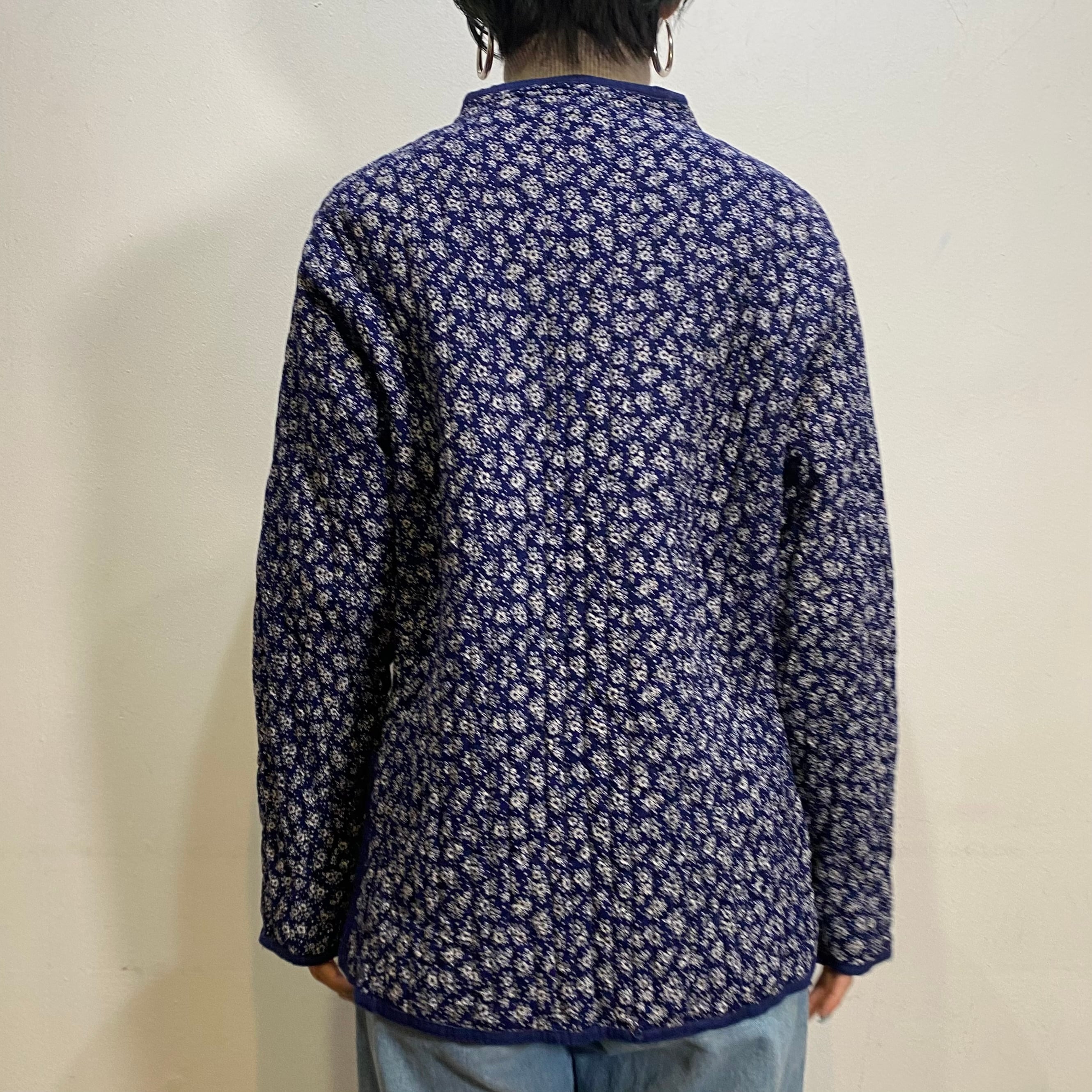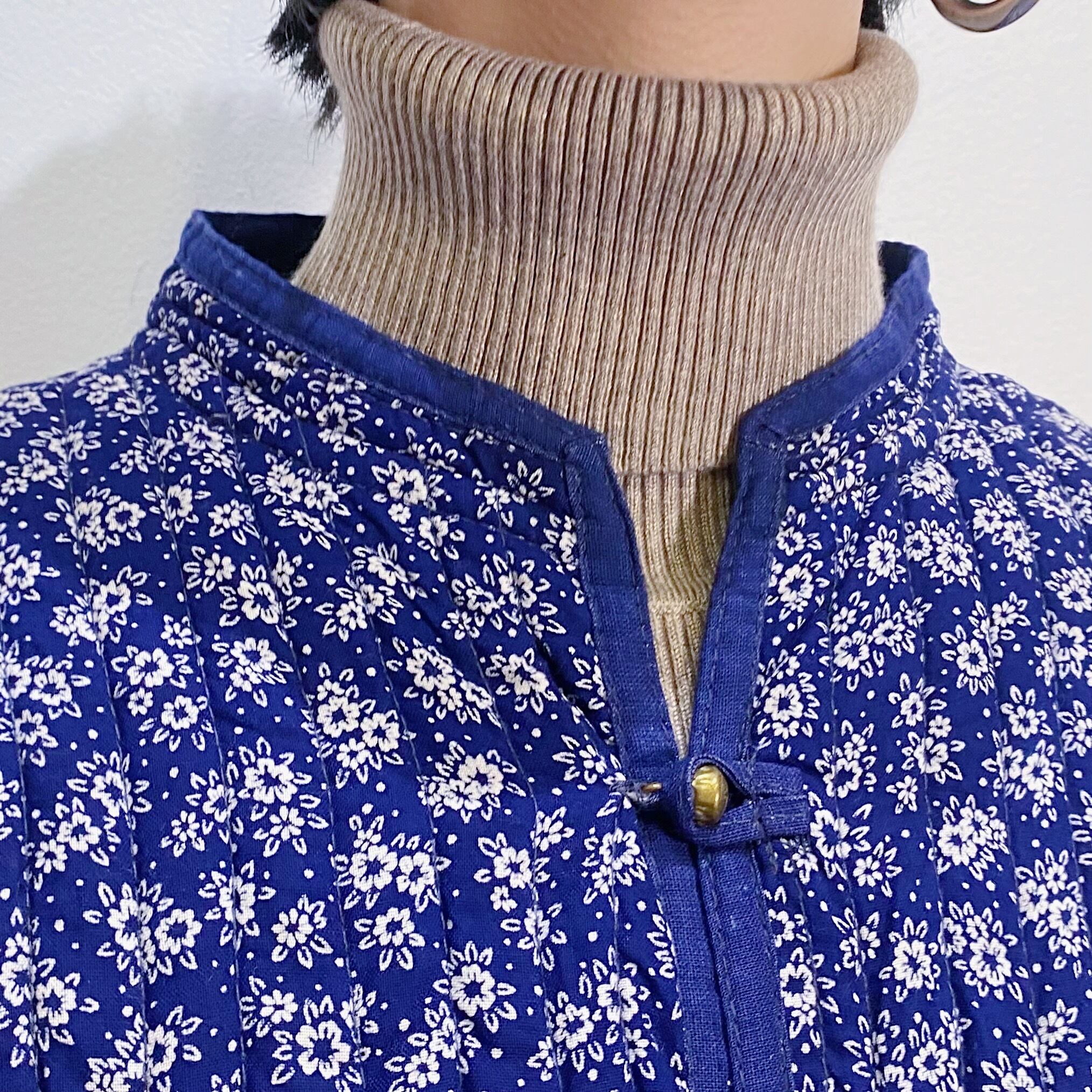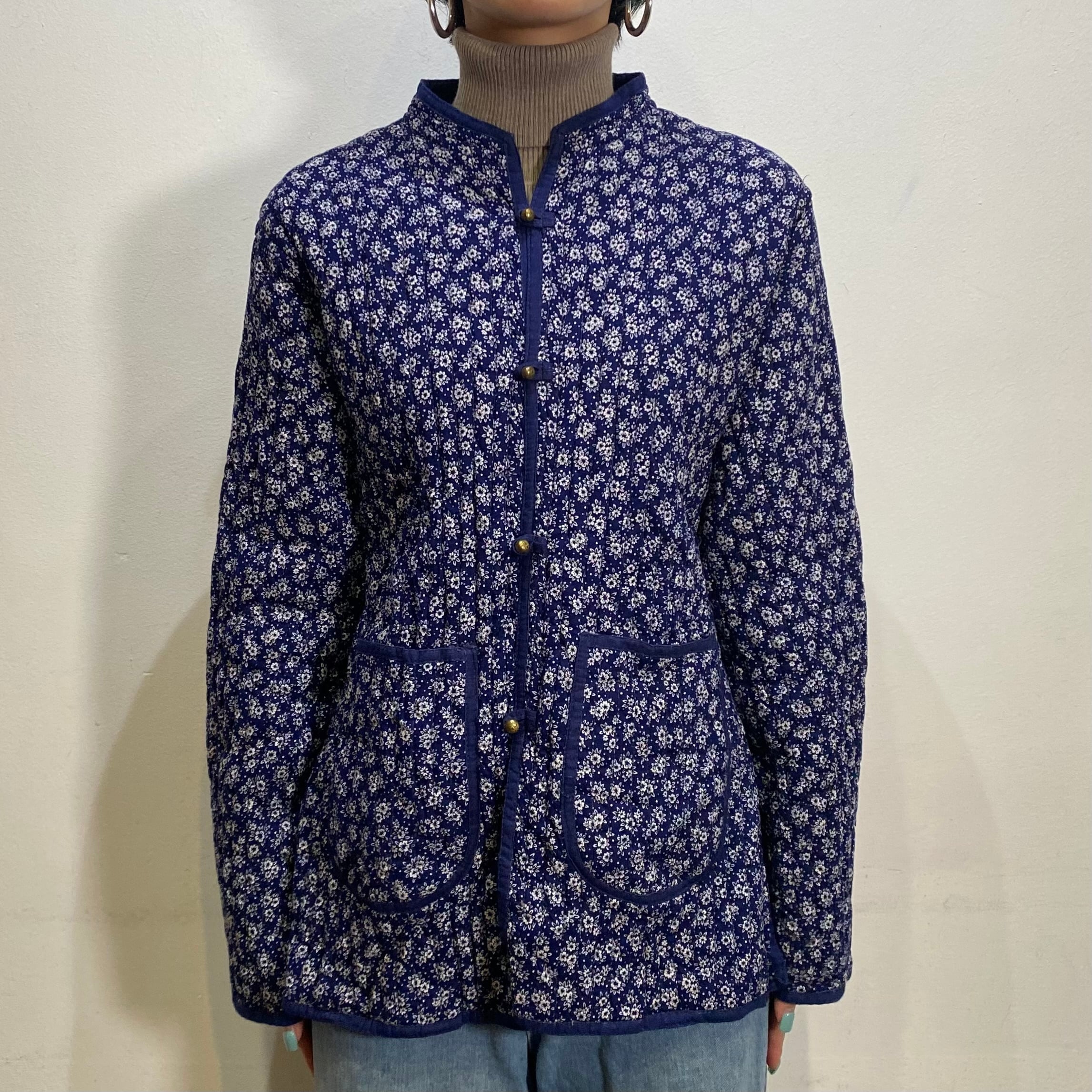 ネイビーベースに白の小花柄が可愛い、キルティングジャケットです。