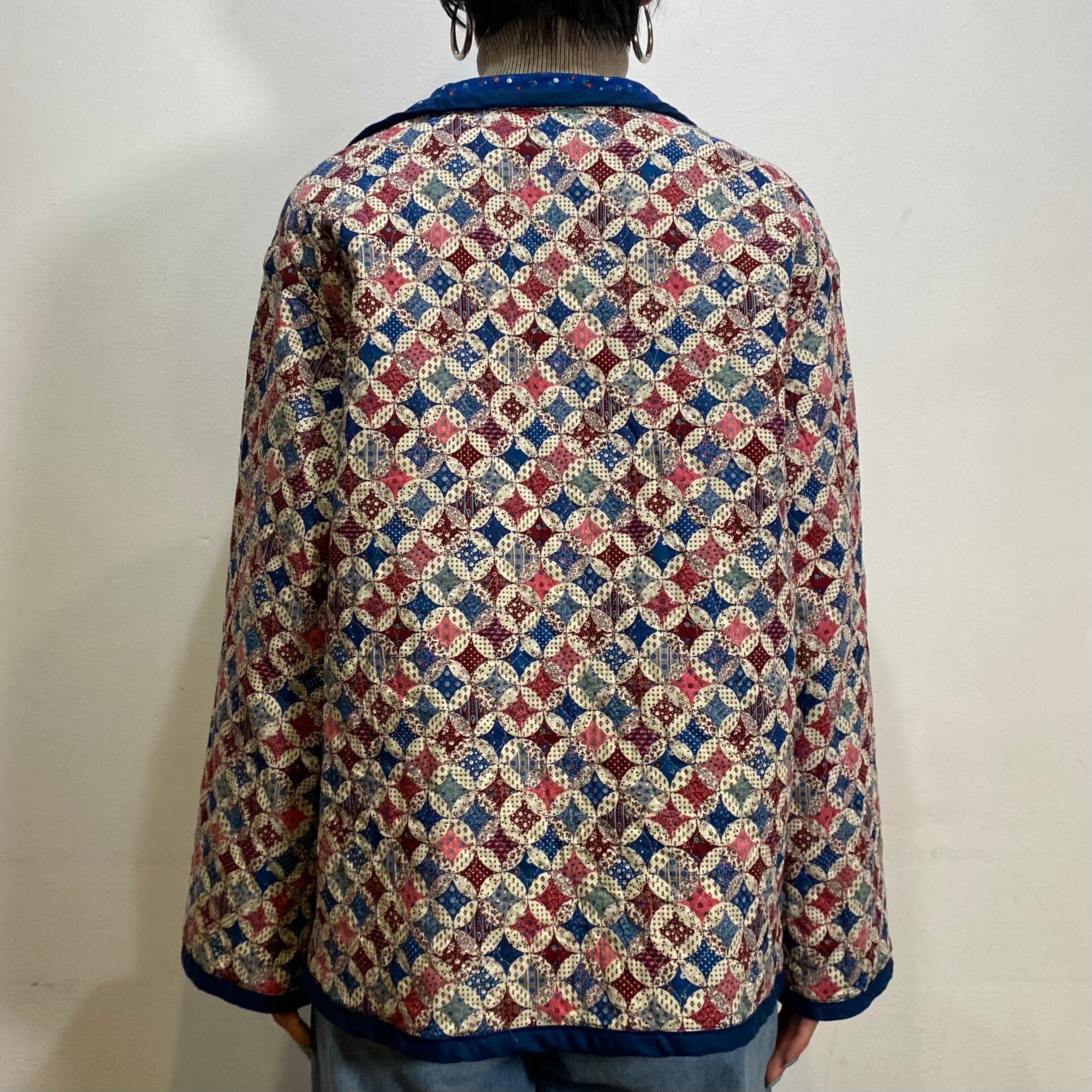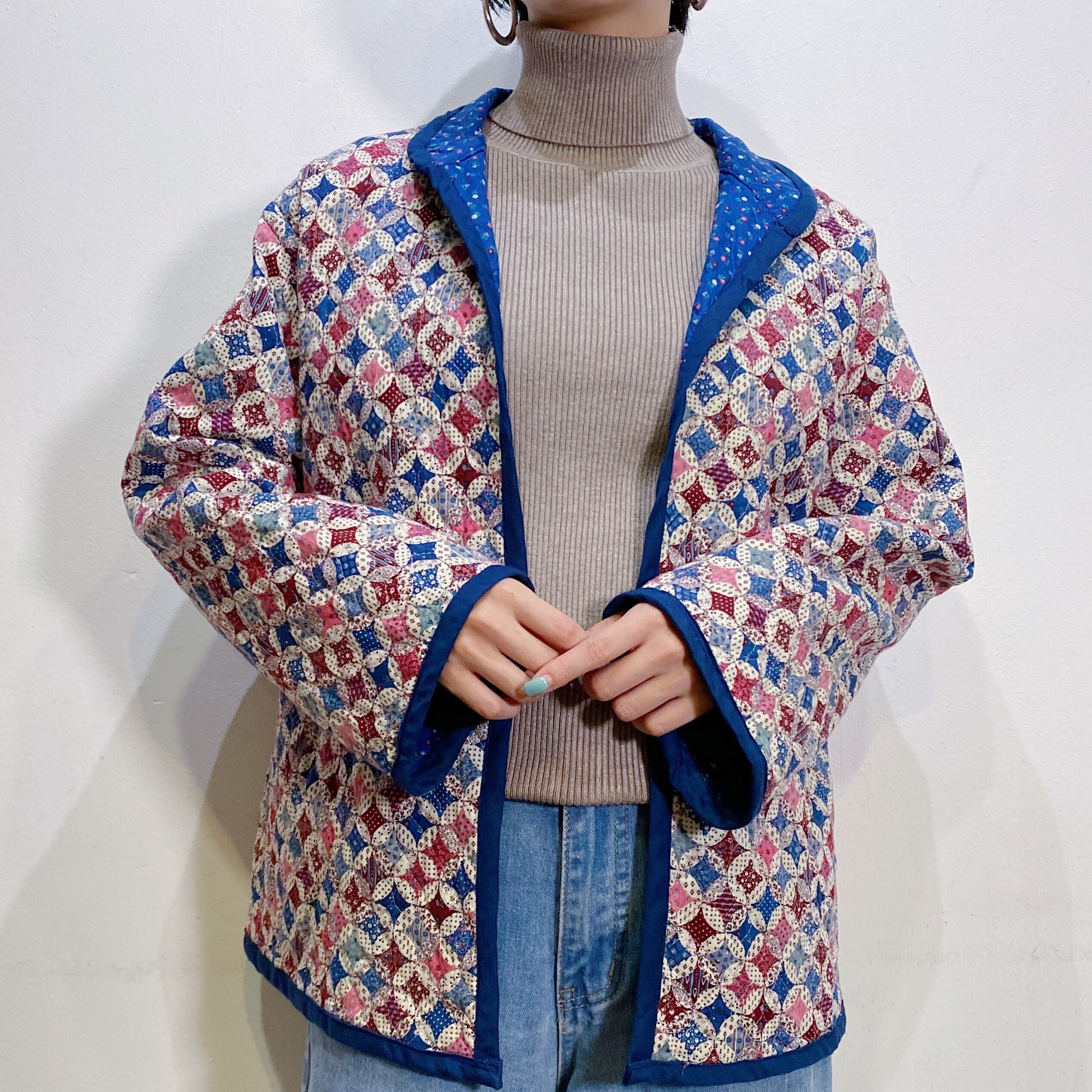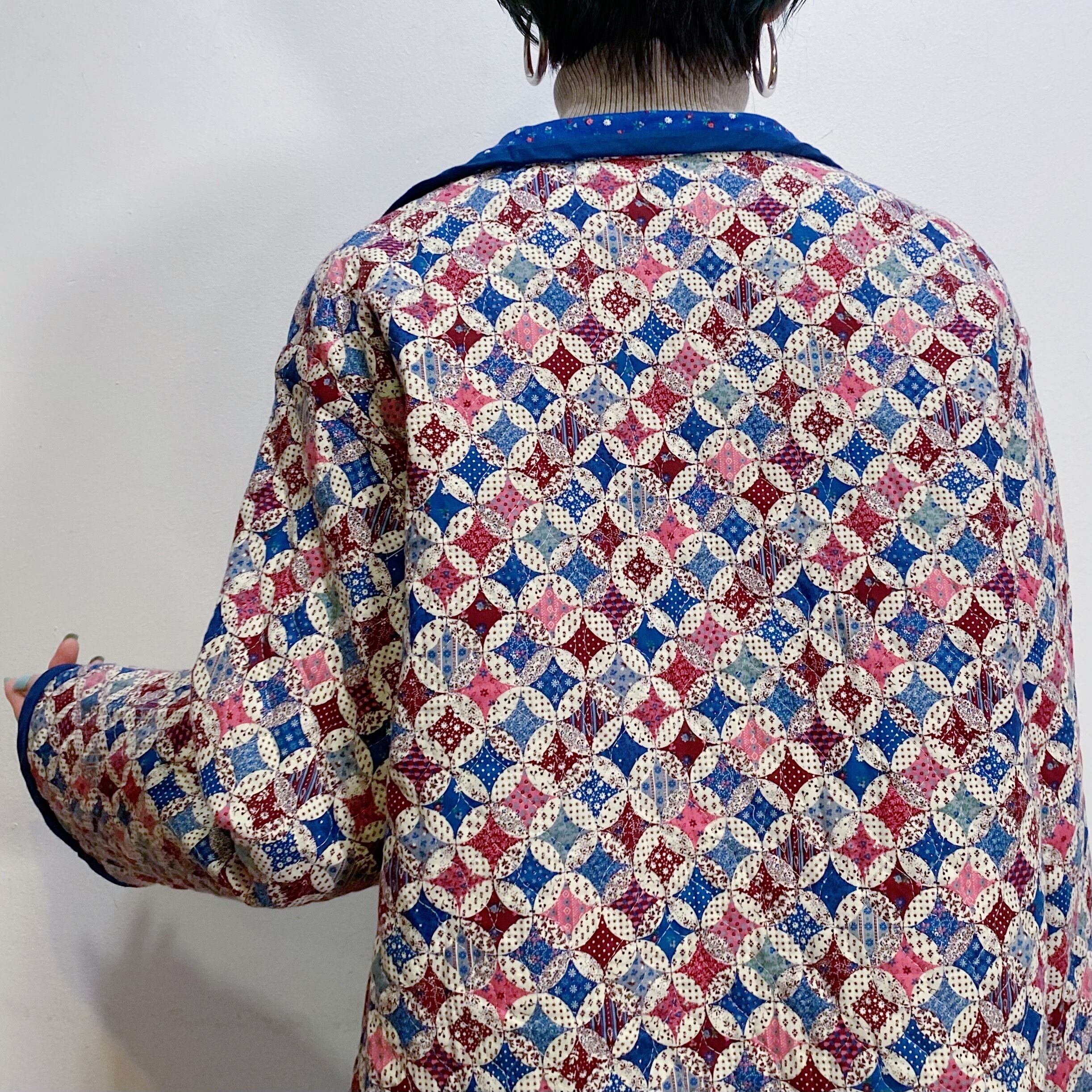タイルのようなテキスタイルが可愛い、キルティングジャケットです。